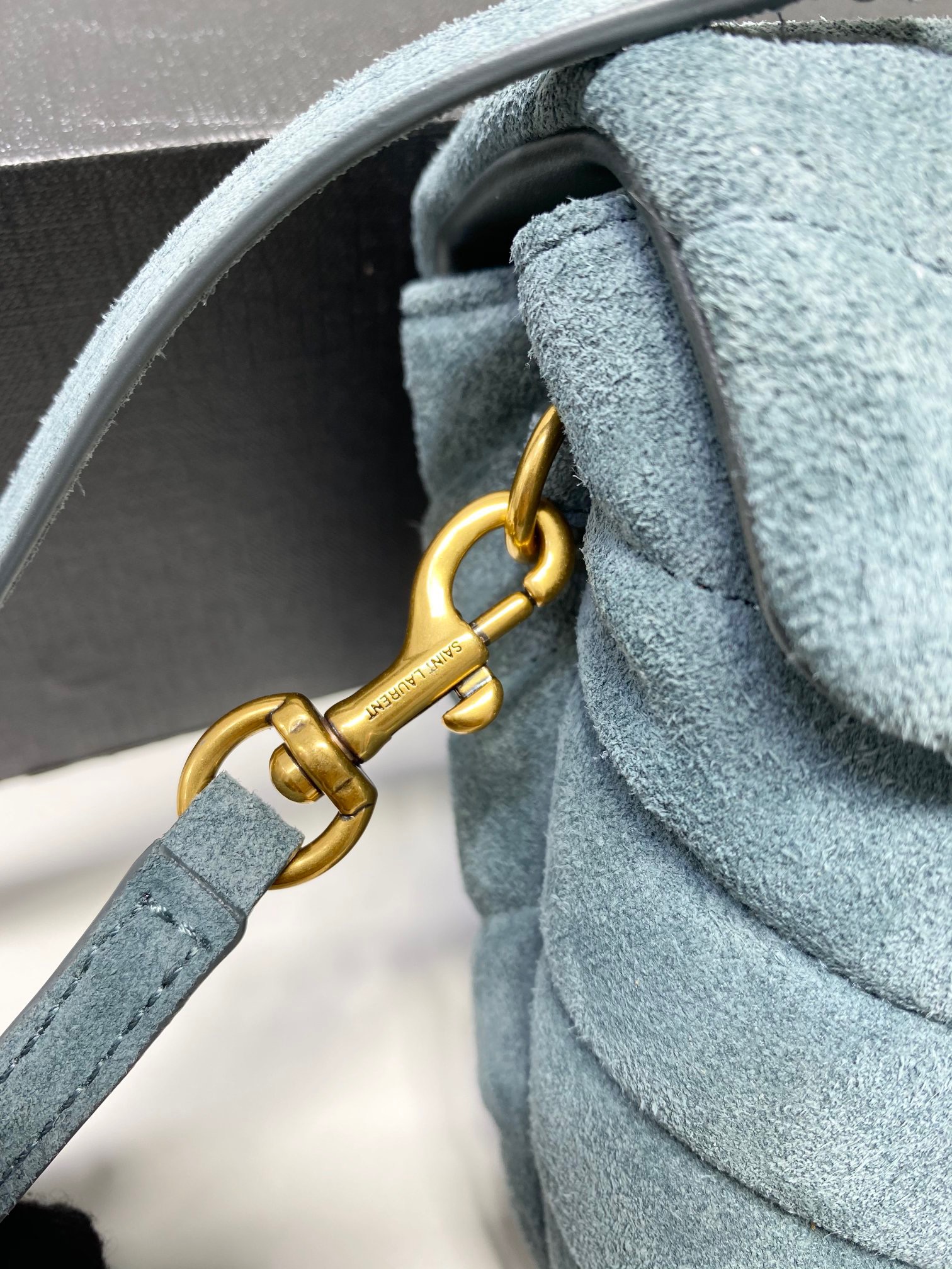 loulou y形挎包 经典麂皮小号,可调节长短的皮肩带替代了复古的链条,很迷你的尺寸放基本的手机没有问题不管大小,适合夏天一点不累赘没有链子的分量,背起来很清爽,推荐款。尺寸20x7x15cm编码392255