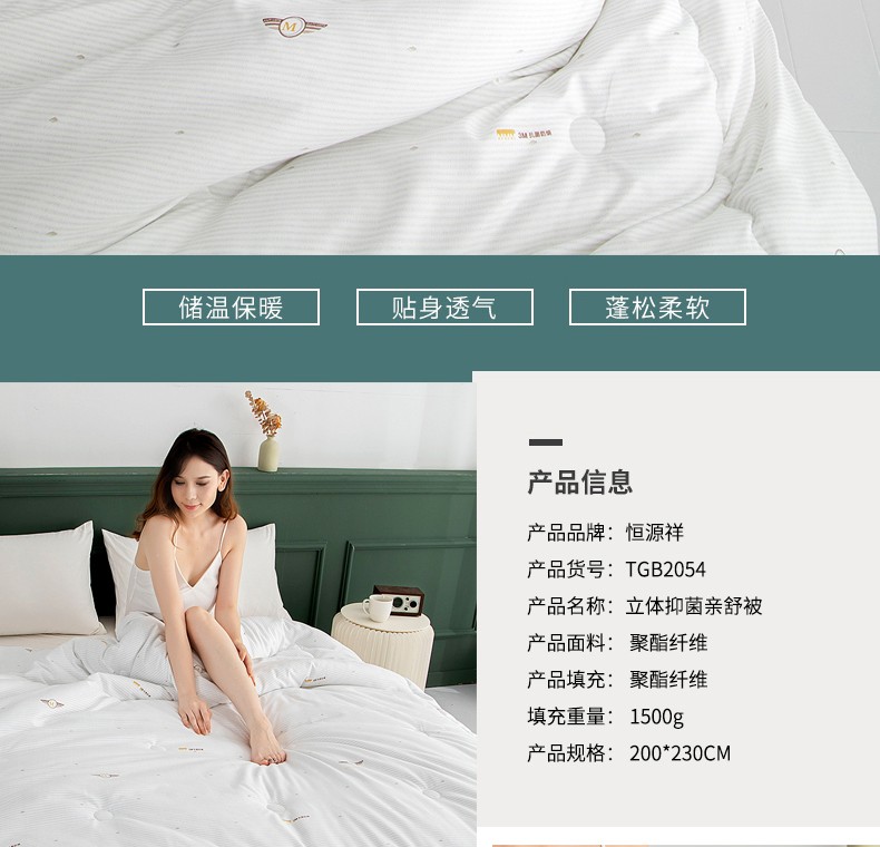 恒源祥(HYX) 恒源祥礼业TGB2054立体抑菌亲舒被春秋加厚被子 200*230cm
