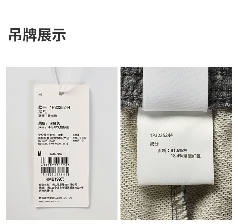 【门店同款】马恩MAXNEW2025秋冬新款高腰工装裙子中长款半身裙女