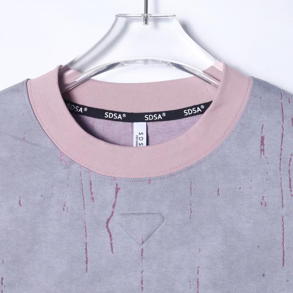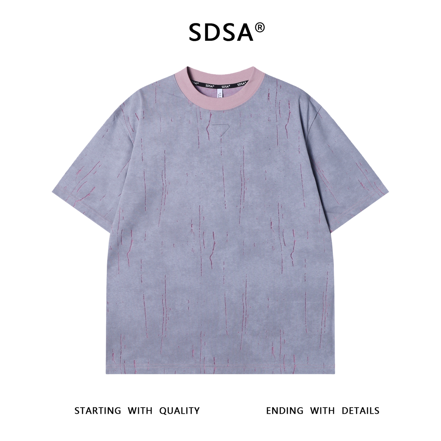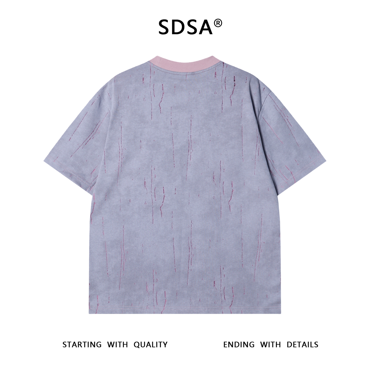 夏季高级感新款男士美式磨破倒三角圆领短袖T恤宽松潮流宽松上衣