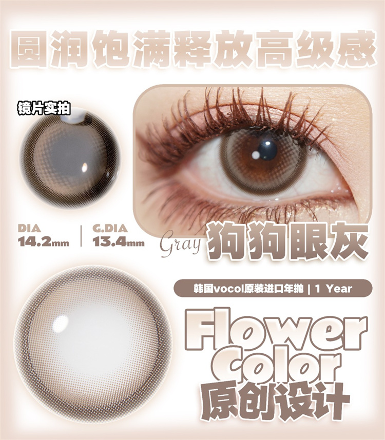 Flower Color 狗狗眼灰 年抛直径14.2mm日常美瞳 灰色