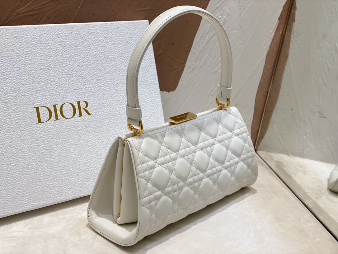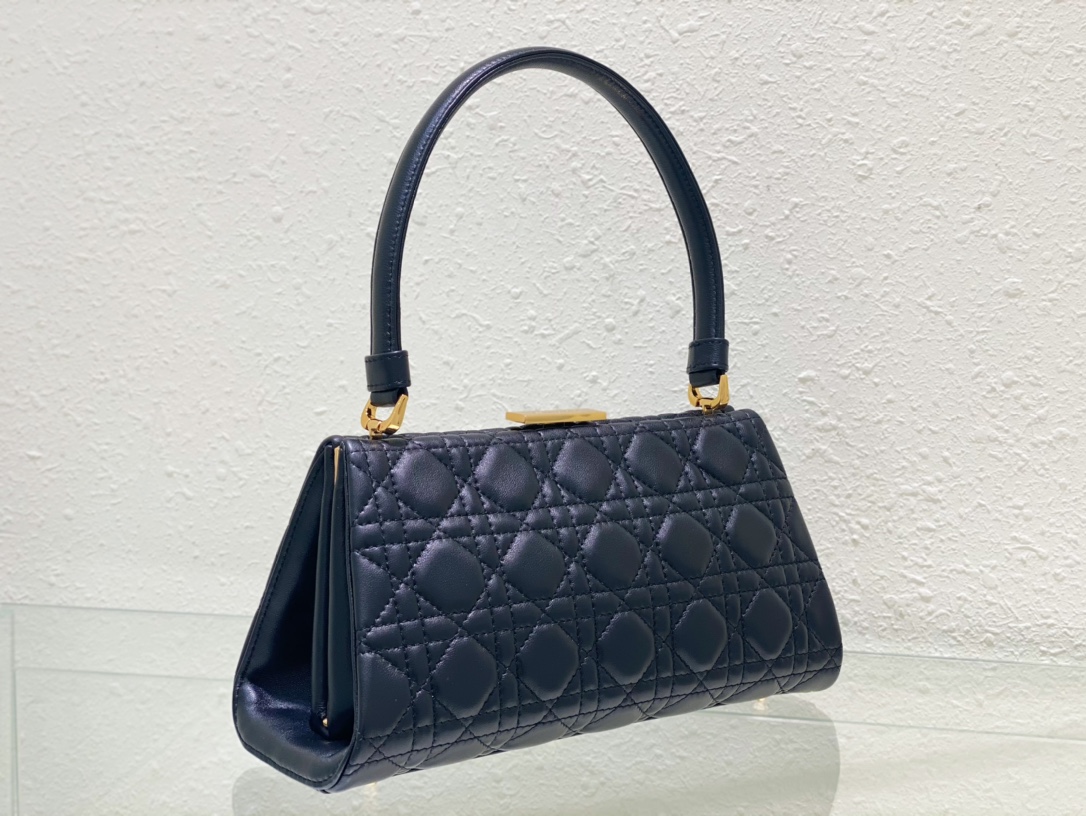 这款手提包是二零二三秋季新品,搭配顶部手柄,彰显高雅复古的魅力。采用黑色羊皮革精心制作,饰以藤格纹。大号隔层设有贴袋,可整齐收纳各种日常用品,设有别致的 Christian Dior Paris 标志开合提升格调,搭配皮革手柄,可手提或肩背。