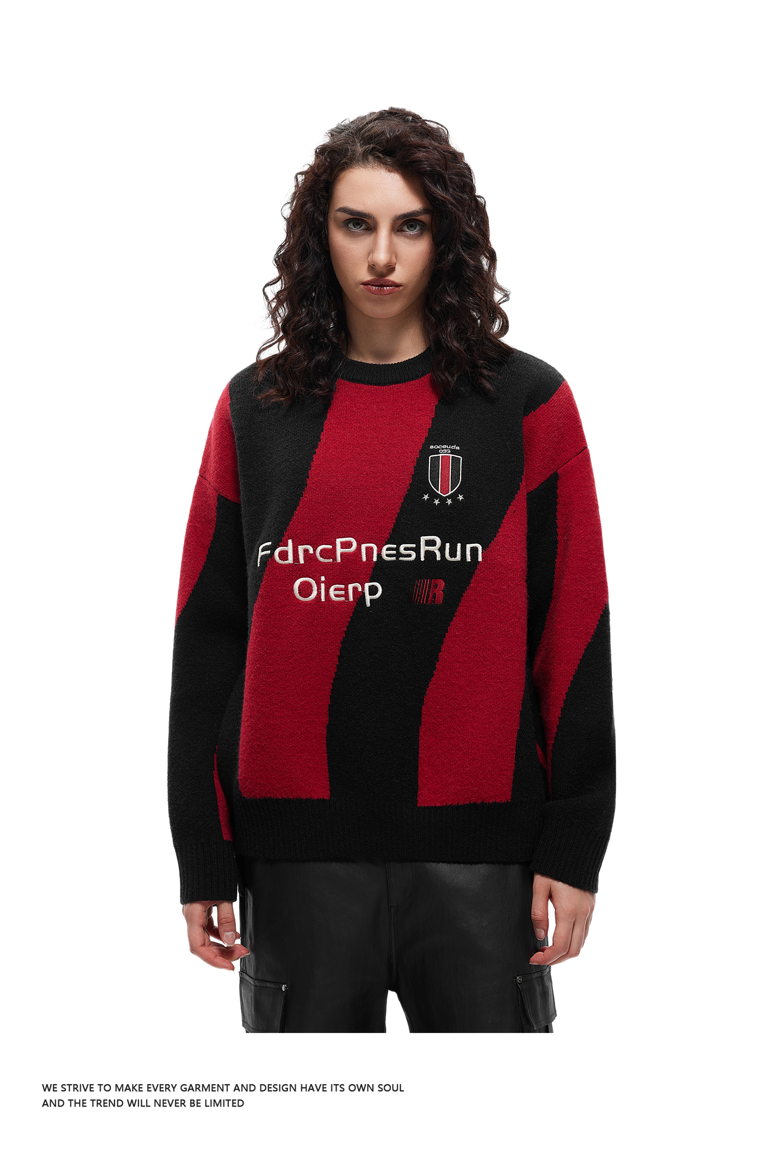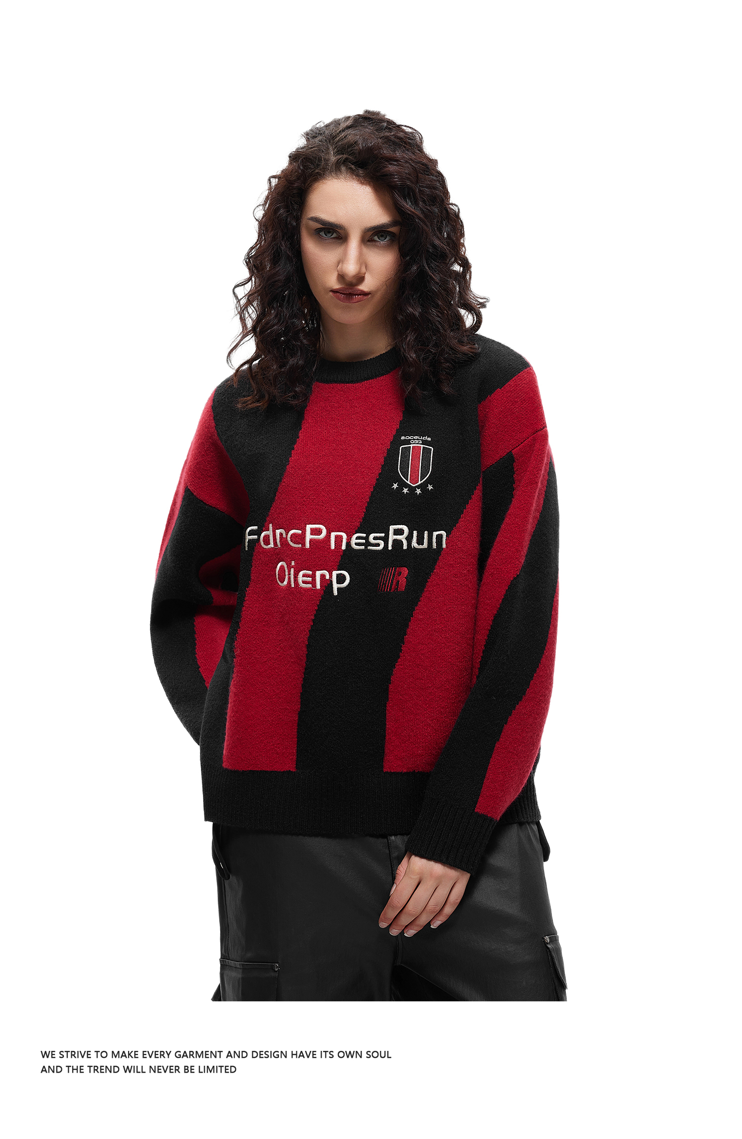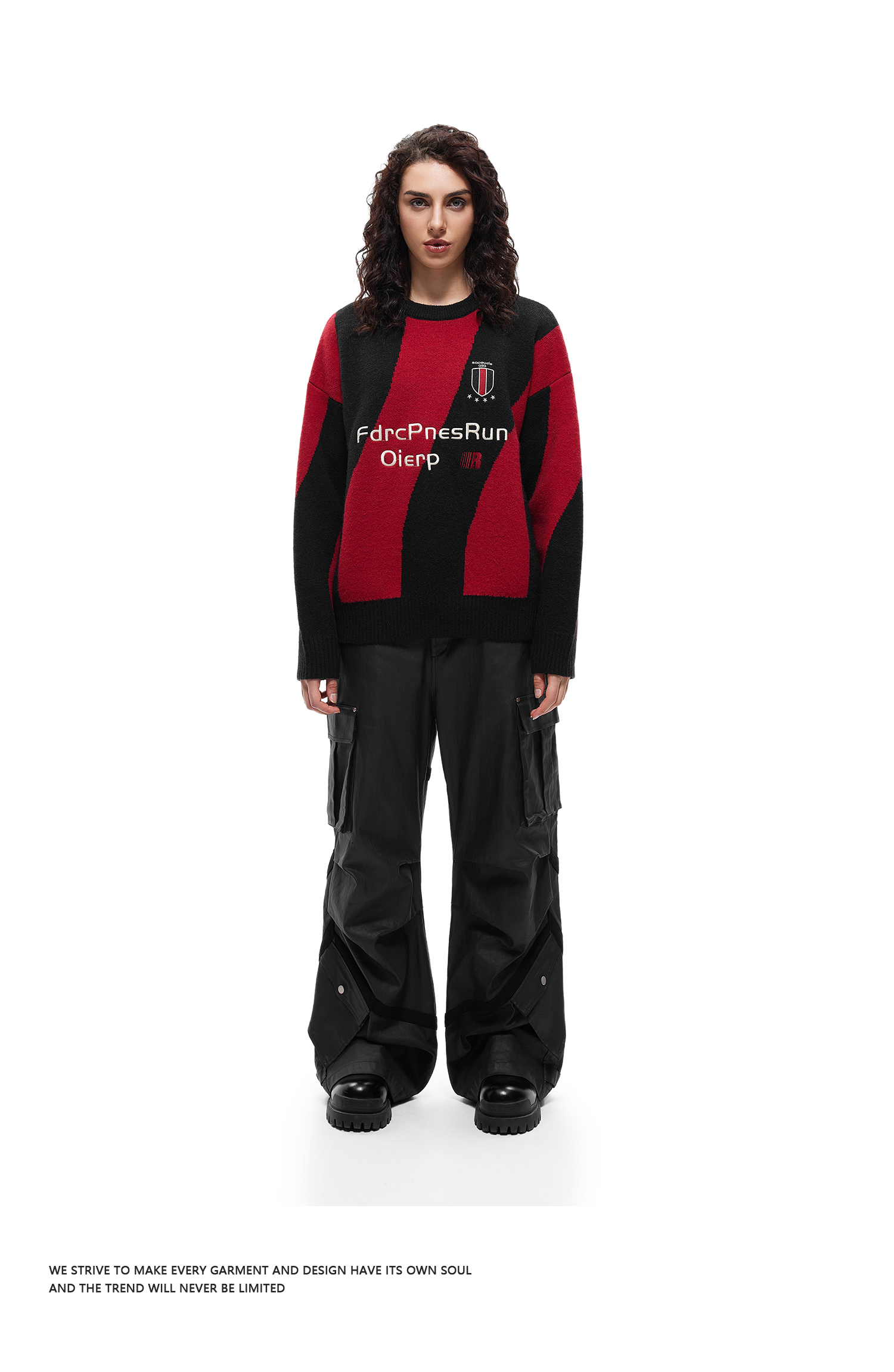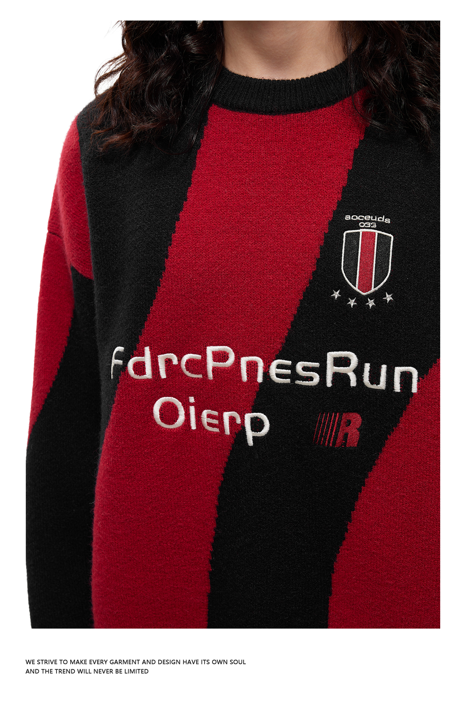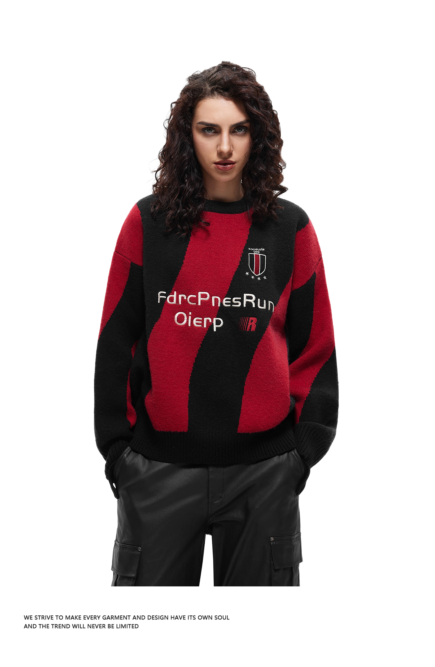 【积分超值购】FDR官方店 徽章撞色曲线条纹毛衣男女秋冬季美式街头宽松情侣上衣