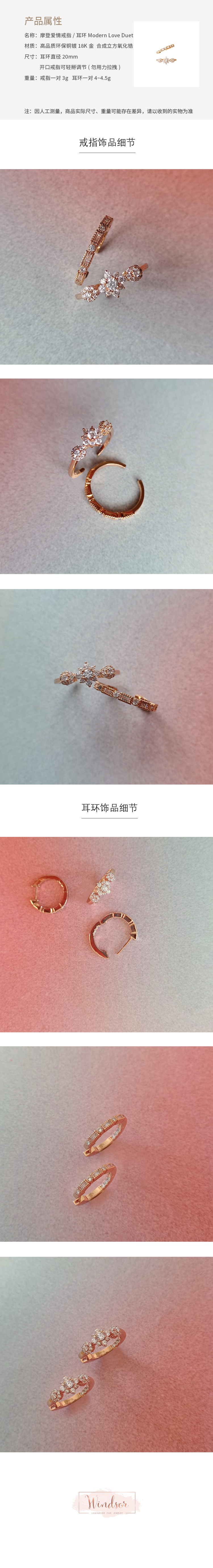 LHWINDSO 温莎珠宝 摩登爱情戒指/耳环