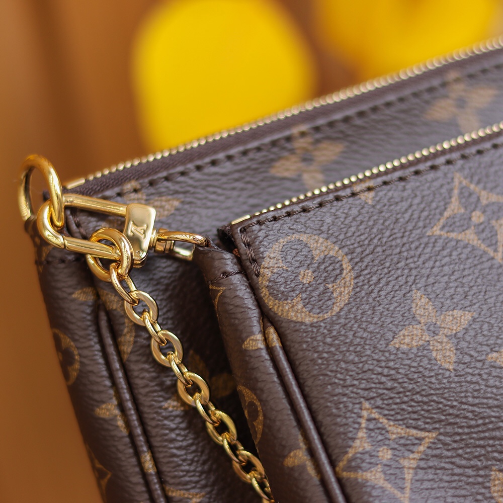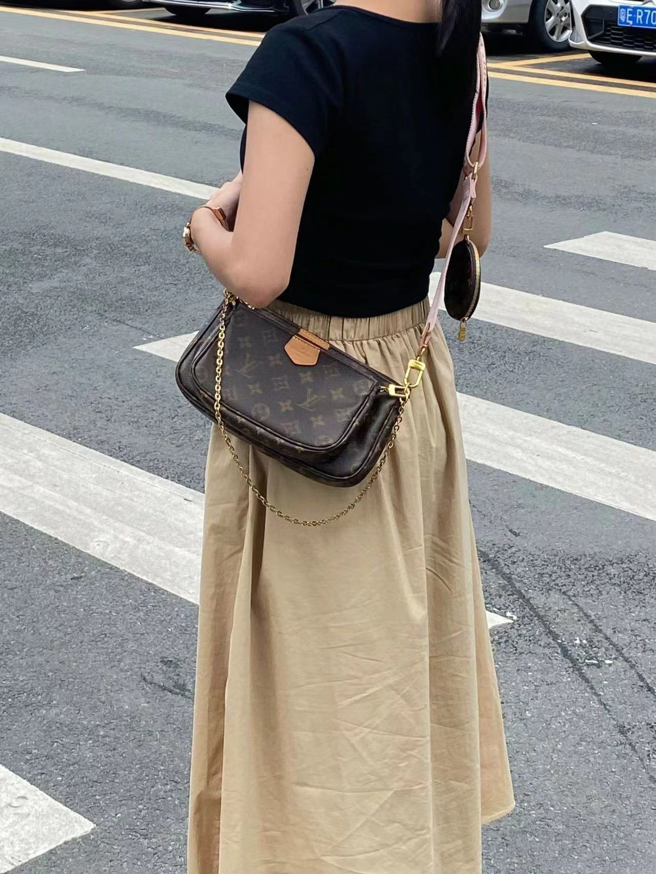 五合一M44813 法国原厂料/原厂皮/全钢五金 经典标志性?老花材质搭配变色皮,多个隔层设计,被称为“五合一”一包可以多种使用方式,更是给人凹造型神器,链条拆卸下来可以当小包使用,我们采用原厂皮的原料,无论是从哪个角度都透出满屏ZP视觉感!