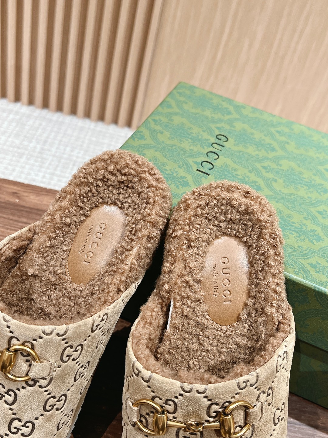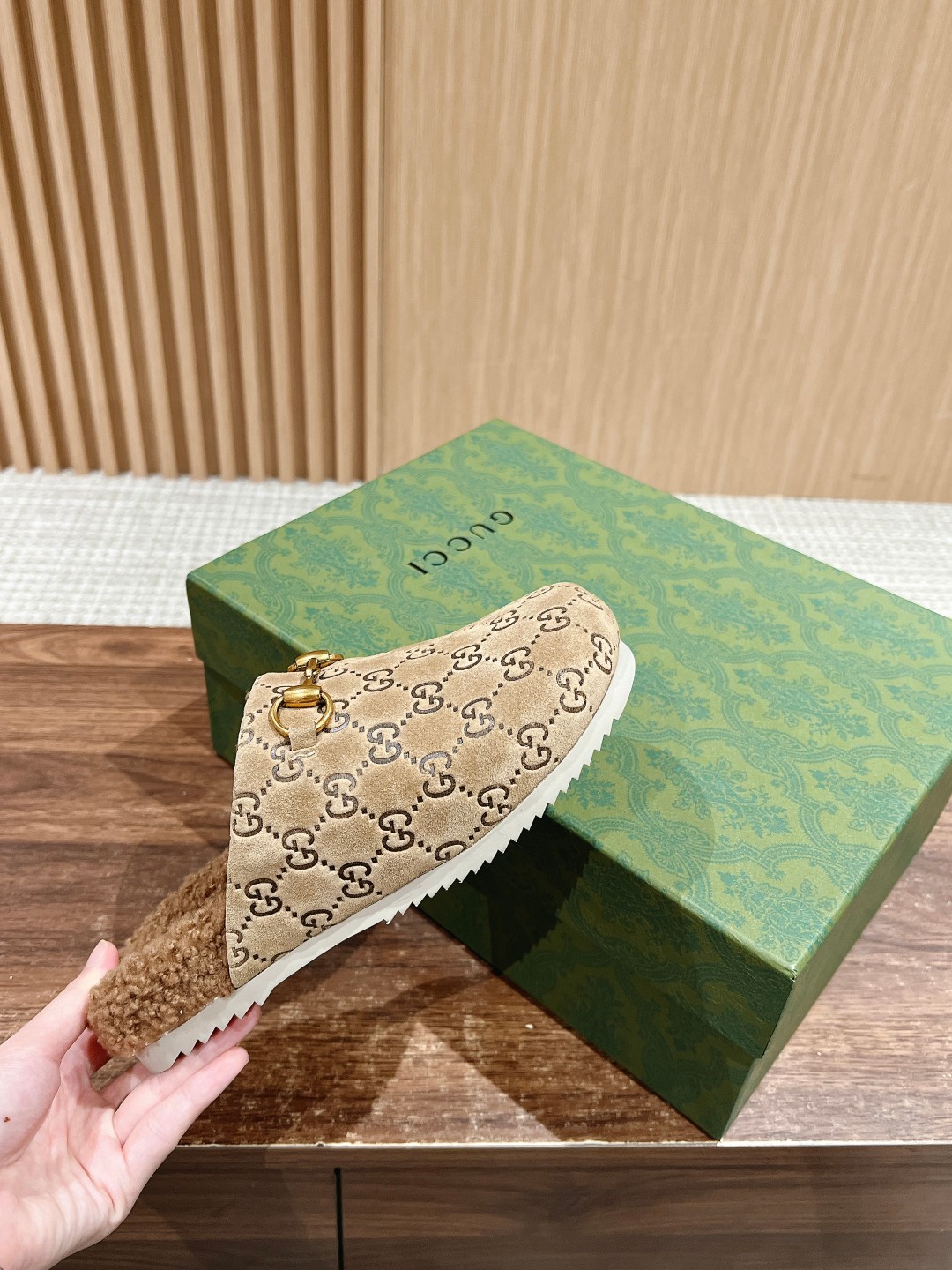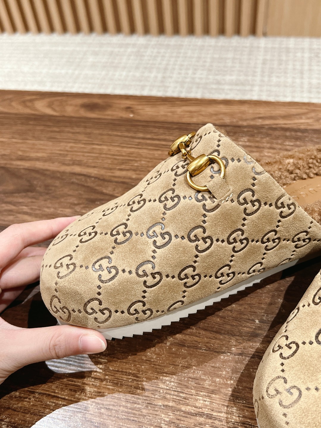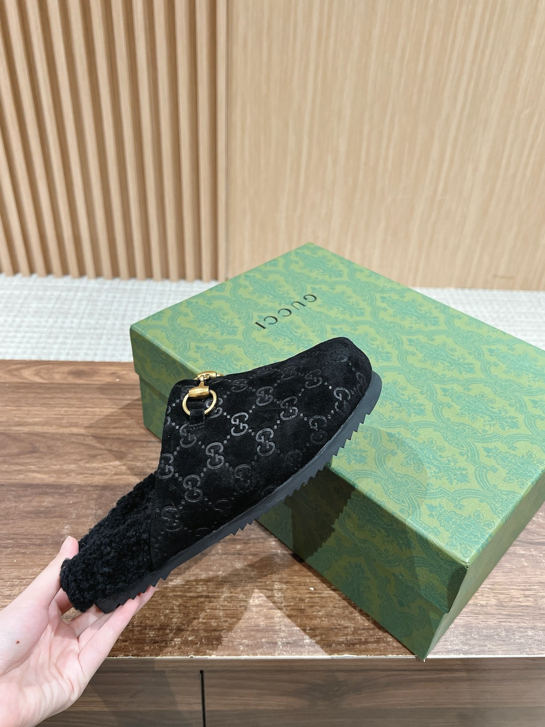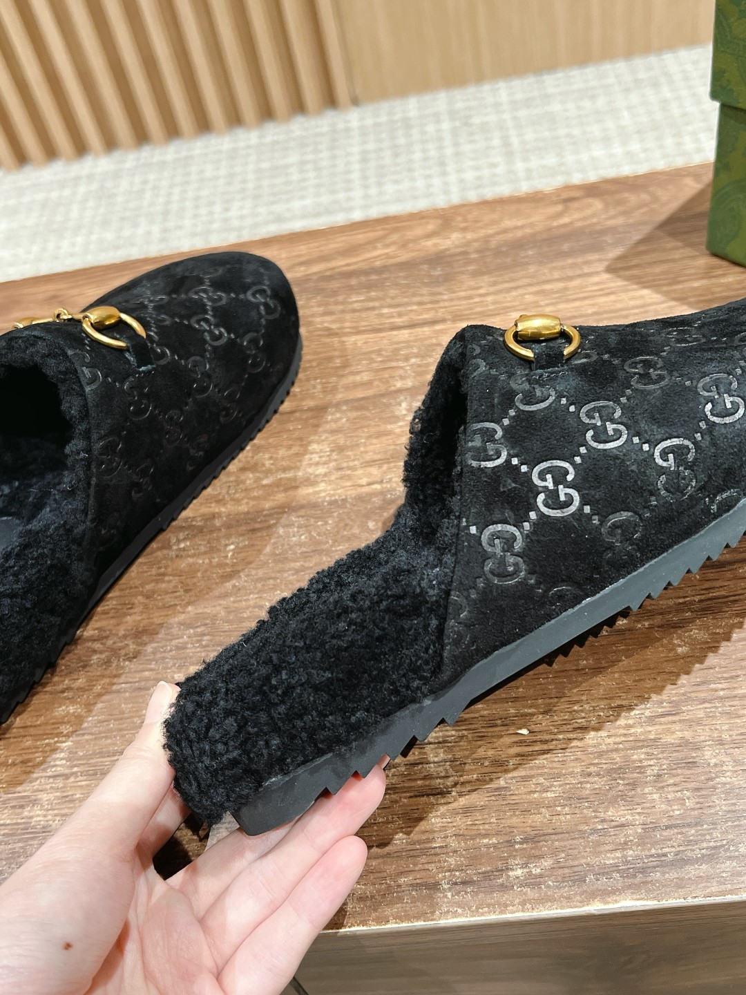 𝐆𝐔𝐂𝐂𝐈#古驰秋冬新款羊毛运动半拖 鞋面麂皮压印迷你 老花logo,拼接小牛皮,细节丰富,精致高级 皮毛一体羔羊毛,软软糯糯超舒服 原版开模胶天然橡胶鞋底