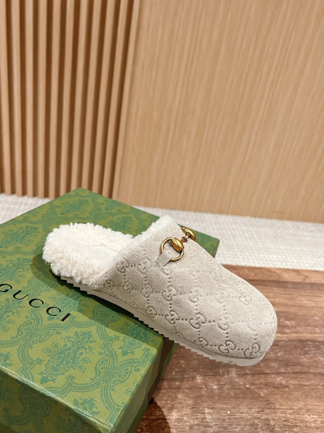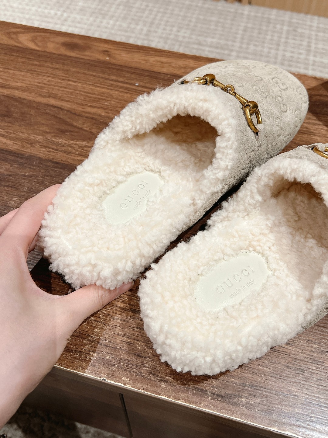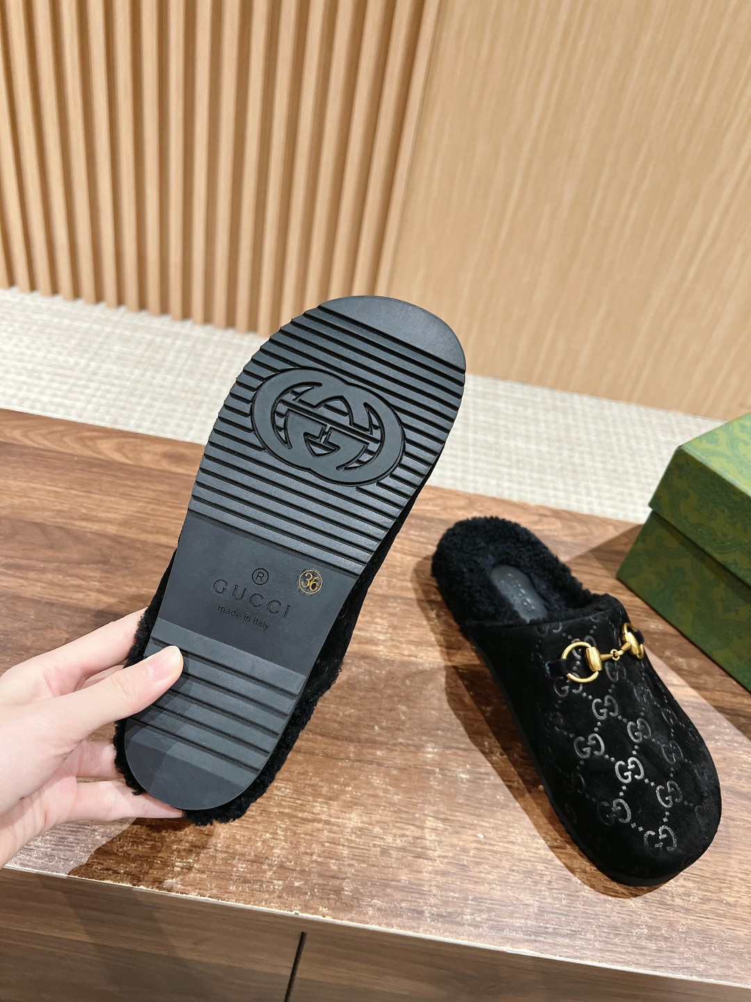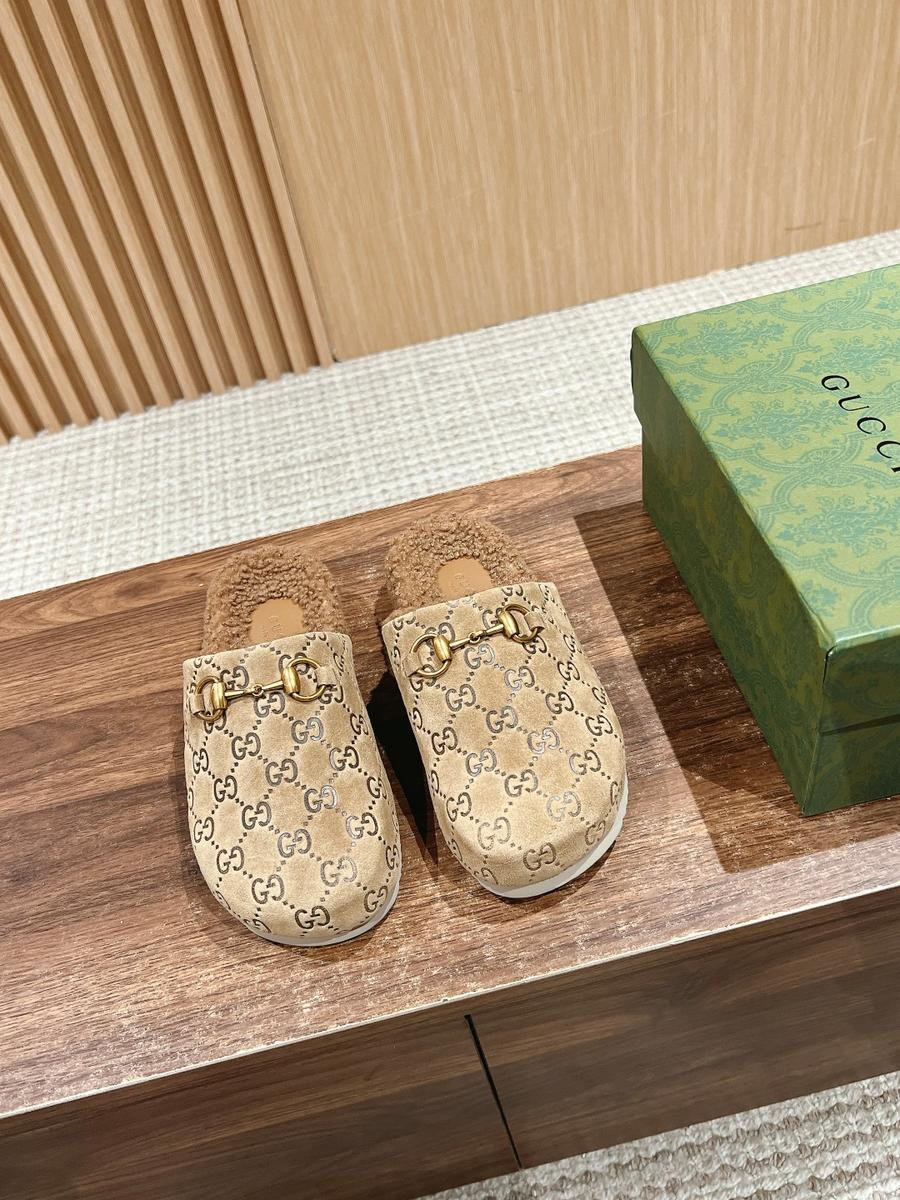𝐆𝐔𝐂𝐂𝐈#古驰秋冬新款羊毛运动半拖 鞋面麂皮压印迷你 老花logo,拼接小牛皮,细节丰富,精致高级 皮毛一体羔羊毛,软软糯糯超舒服 原版开模胶天然橡胶鞋底