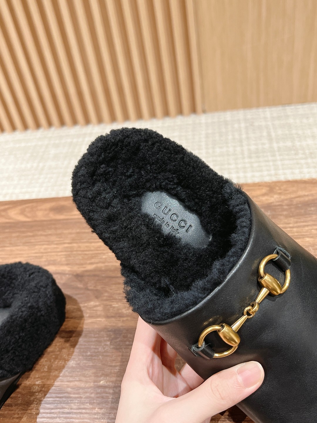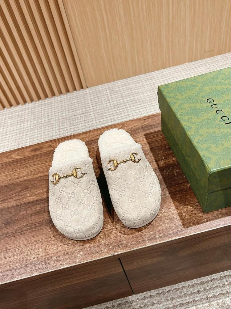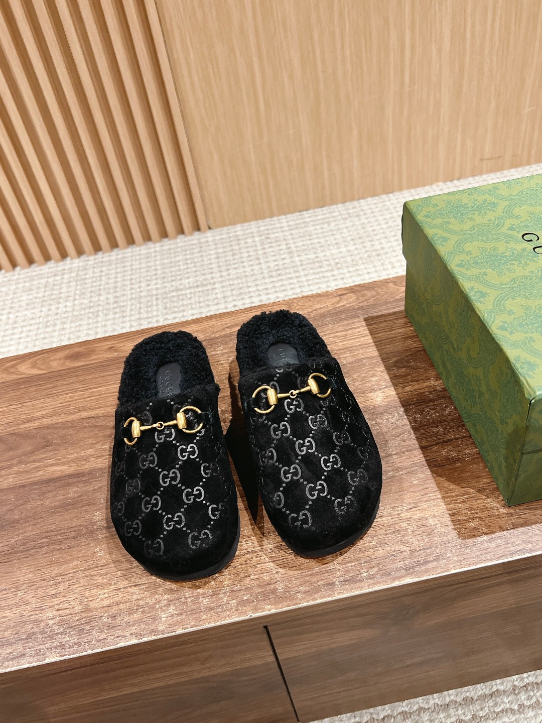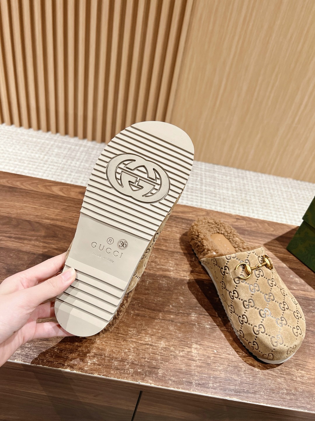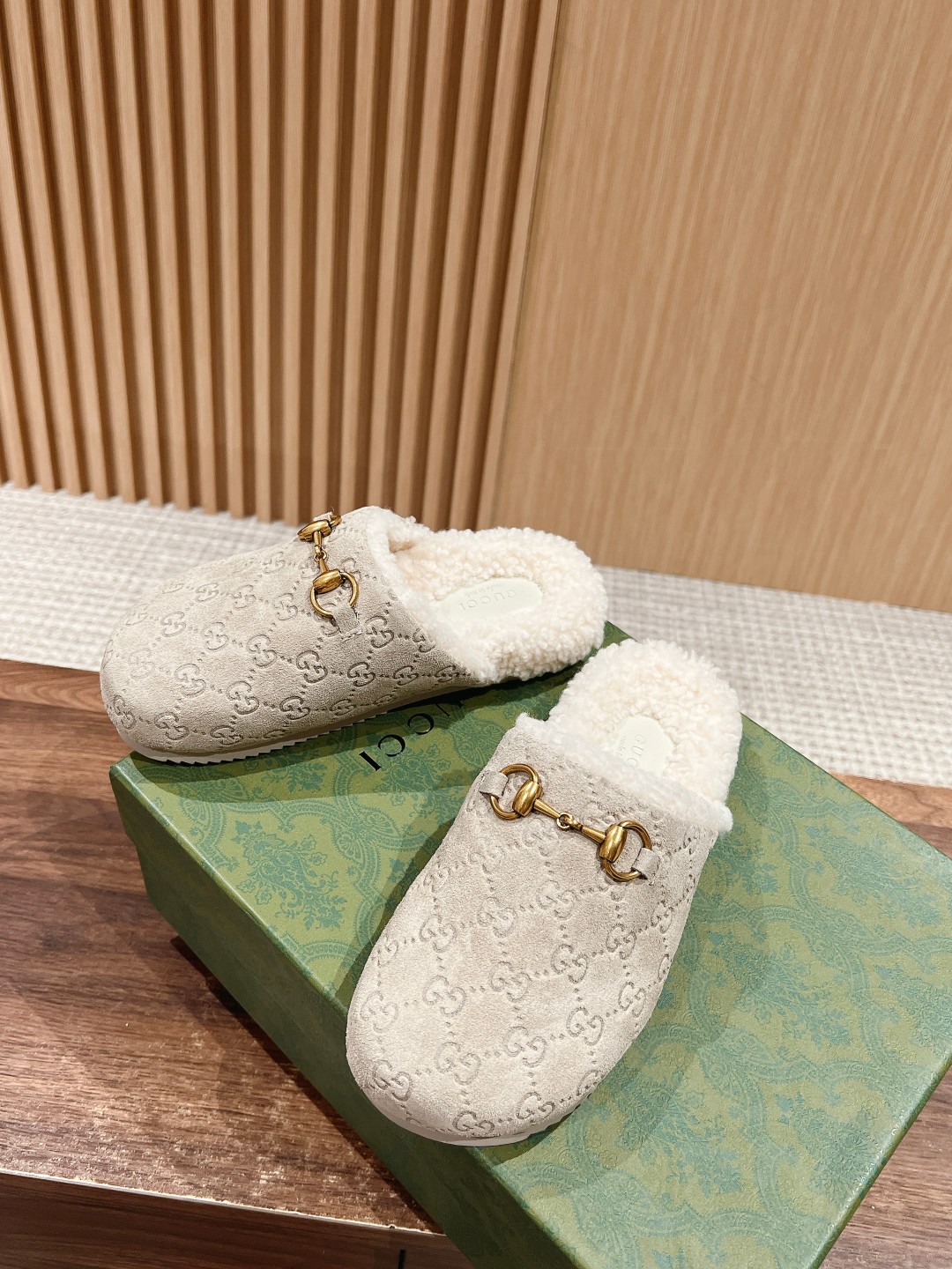 𝐆𝐔𝐂𝐂𝐈#古驰秋冬新款羊毛运动半拖 鞋面麂皮压印迷你 老花logo,拼接小牛皮,细节丰富,精致高级 皮毛一体羔羊毛,软软糯糯超舒服 原版开模胶天然橡胶鞋底