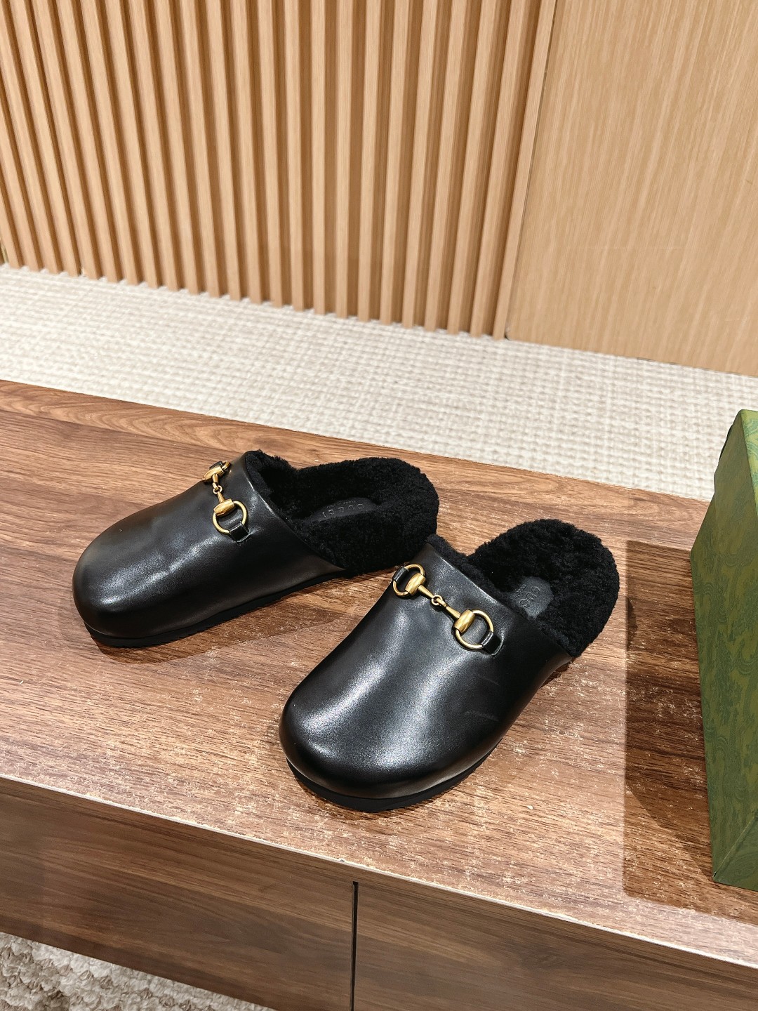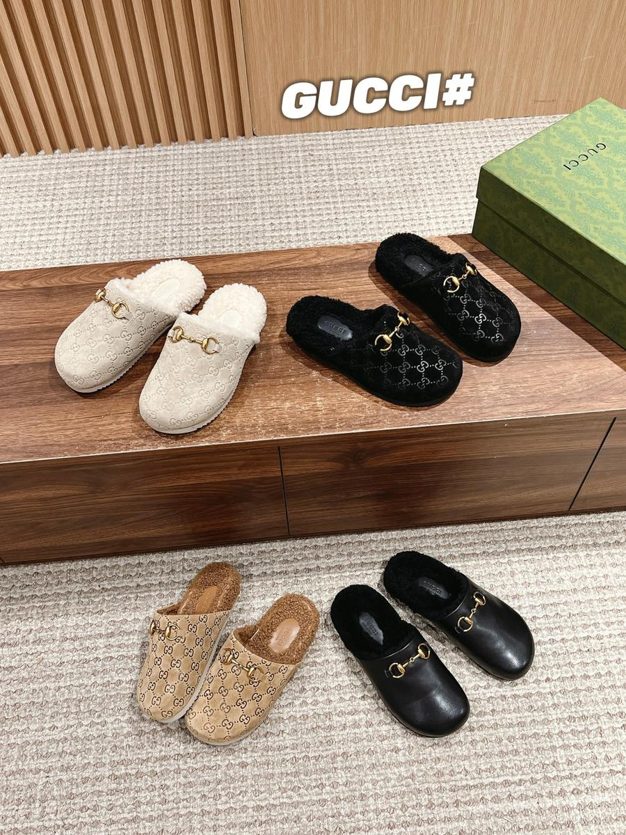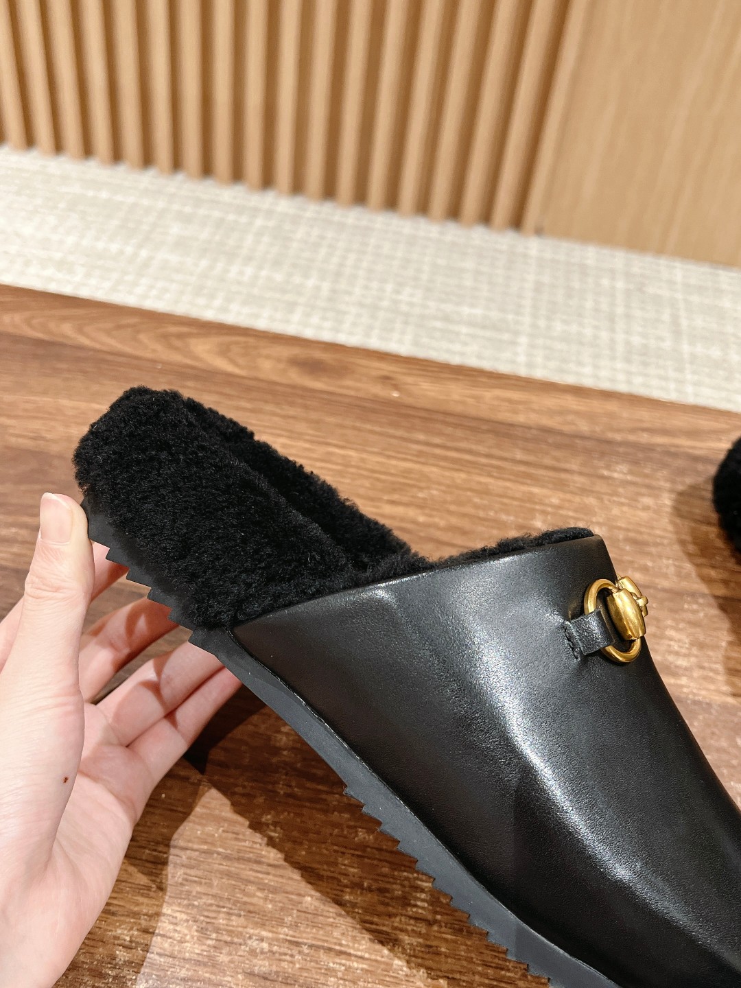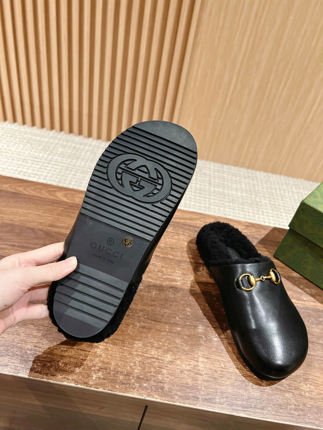 𝐆𝐔𝐂𝐂𝐈#古驰秋冬新款羊毛运动半拖 鞋面麂皮压印迷你 老花logo,拼接小牛皮,细节丰富,精致高级 皮毛一体羔羊毛,软软糯糯超舒服 原版开模胶天然橡胶鞋底