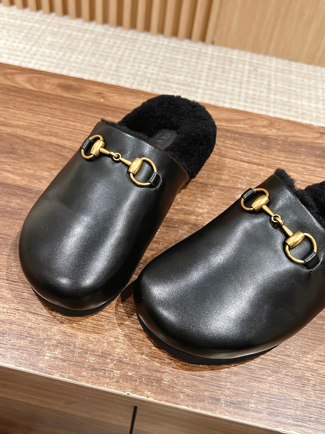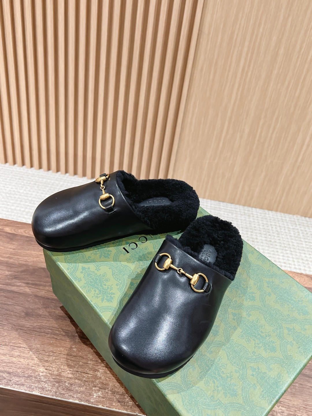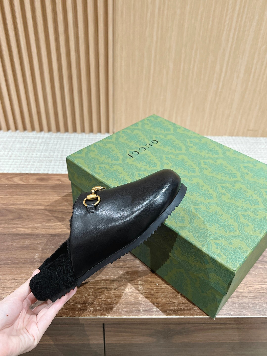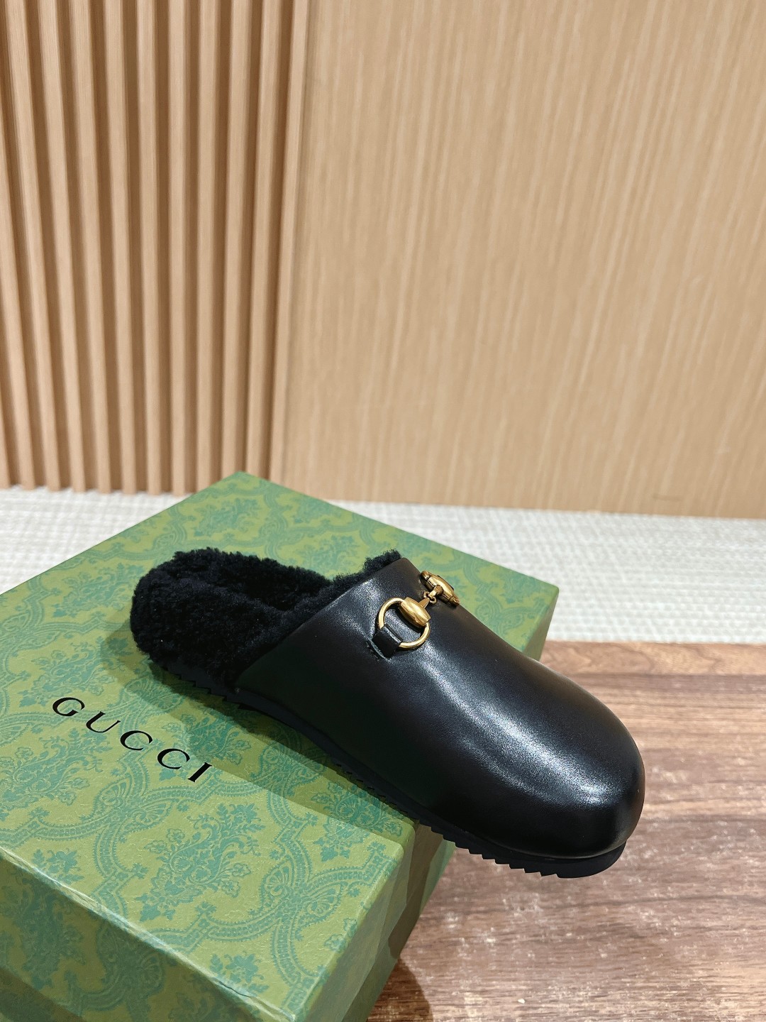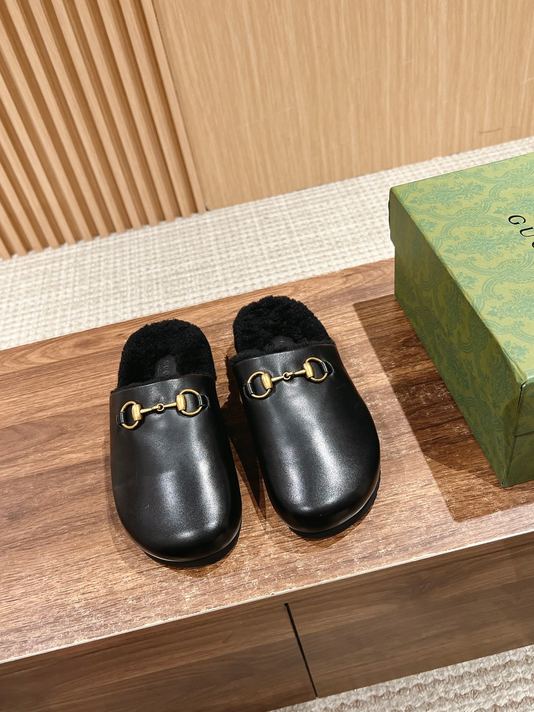 𝐆𝐔𝐂𝐂𝐈#古驰秋冬新款羊毛运动半拖 鞋面麂皮压印迷你 老花logo,拼接小牛皮,细节丰富,精致高级 皮毛一体羔羊毛,软软糯糯超舒服 原版开模胶天然橡胶鞋底