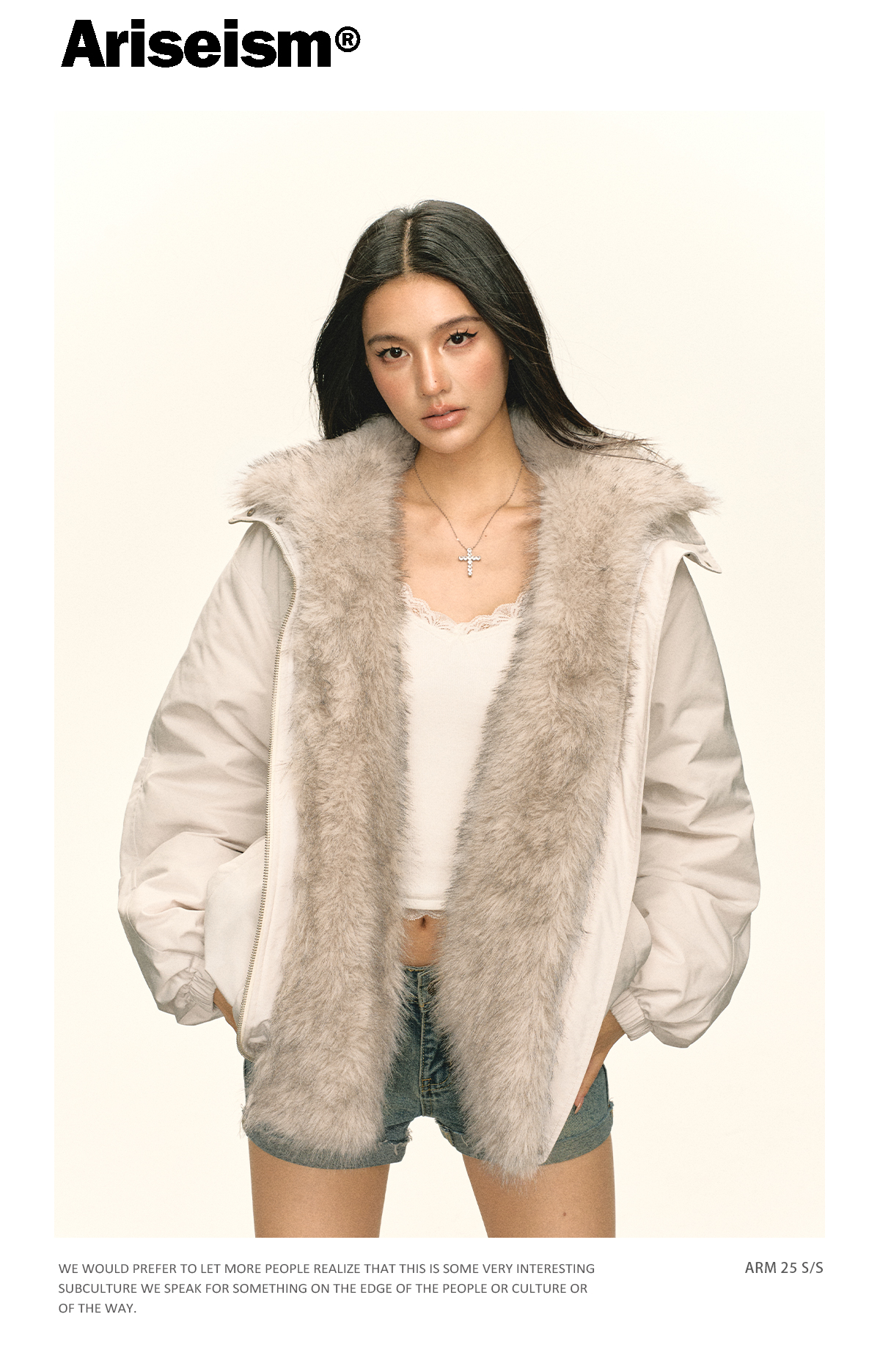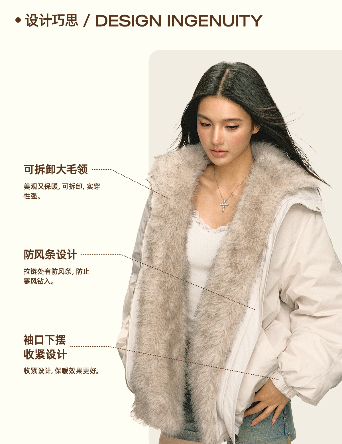 Ariseism 美式复古可拆卸毛毛羽绒服女冬季新款加厚保暖外套