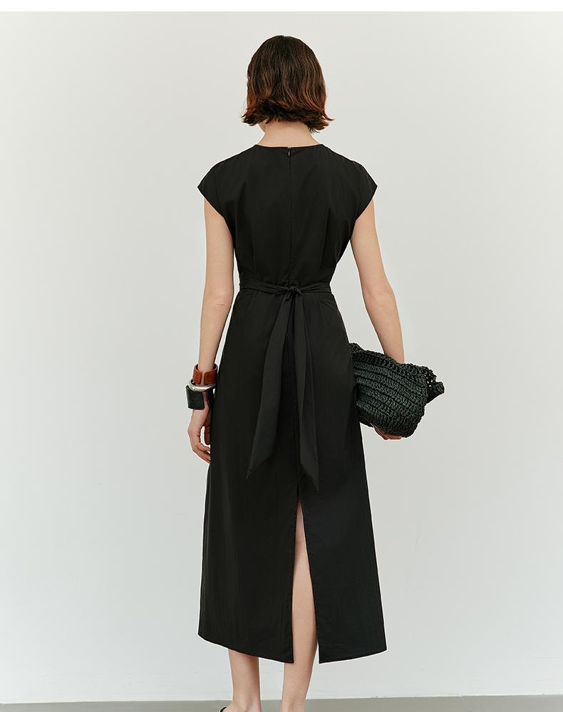 N°28 法式设计小飞袖轻薄连衣裙女 夏季绑带收腰裙子显瘦垂感长裙885251L582
