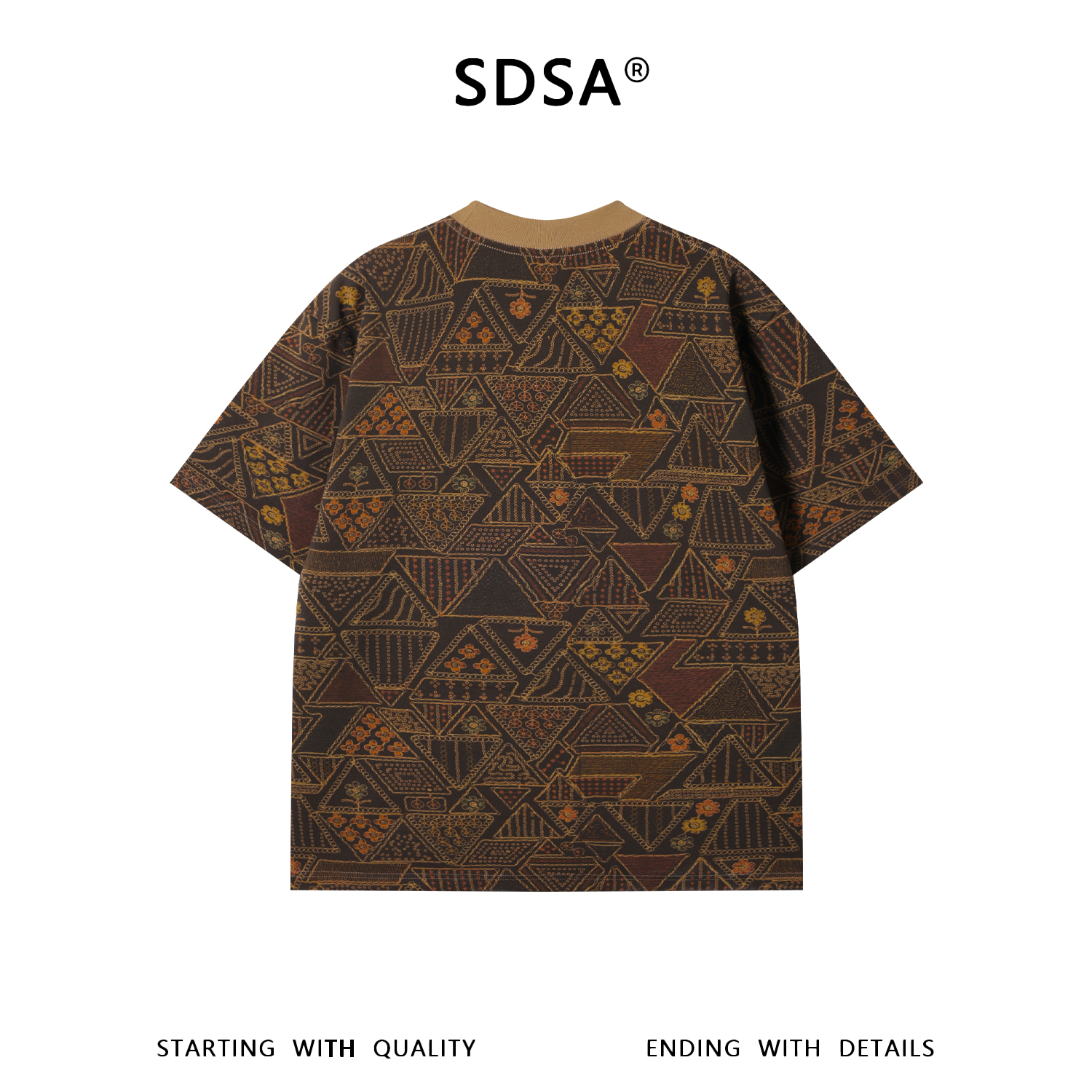 26T215SDSA男装2026新款高贵轻奢民族风三角形图案设计圆领短袖T恤百搭
