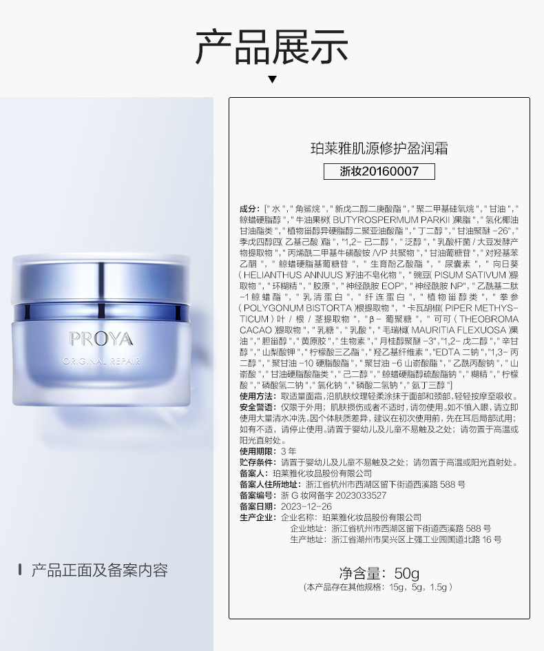 珀莱雅 源力面霜肌源修护补水抗皱保湿面霜50g(盈润霜) 商品图5