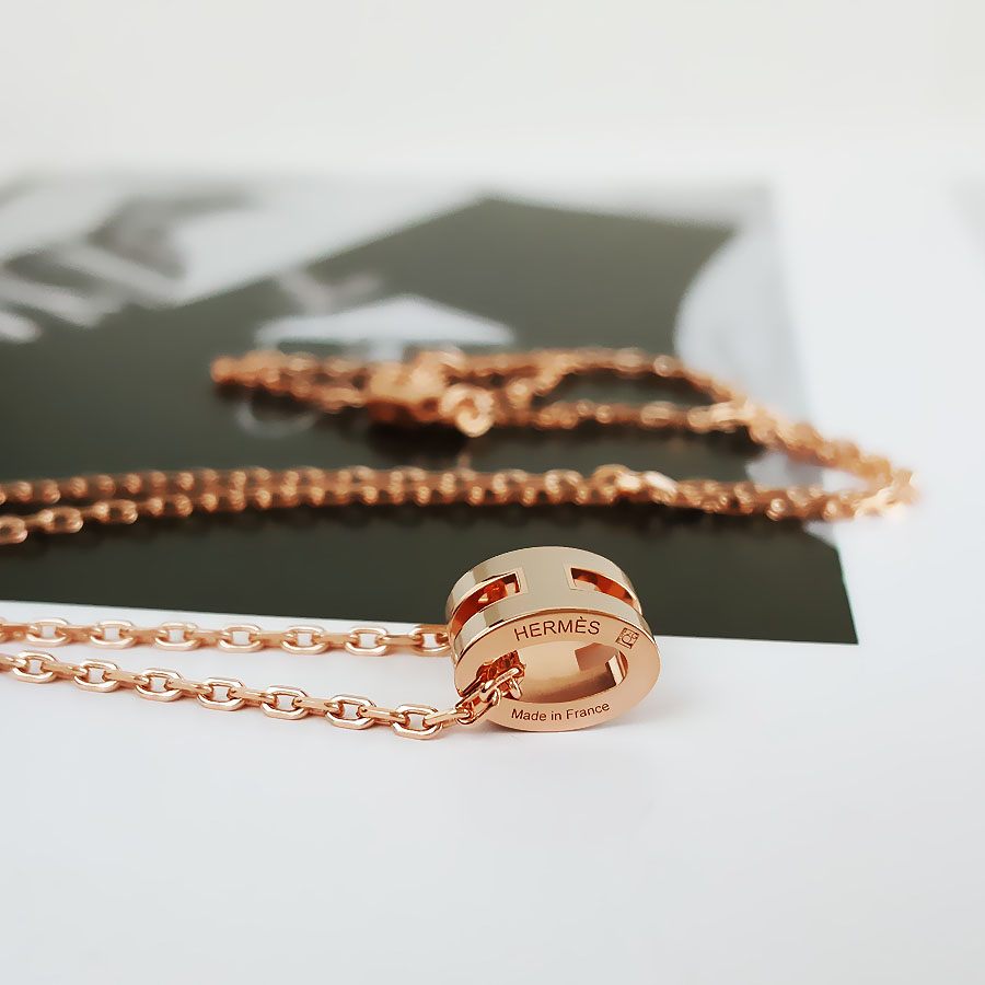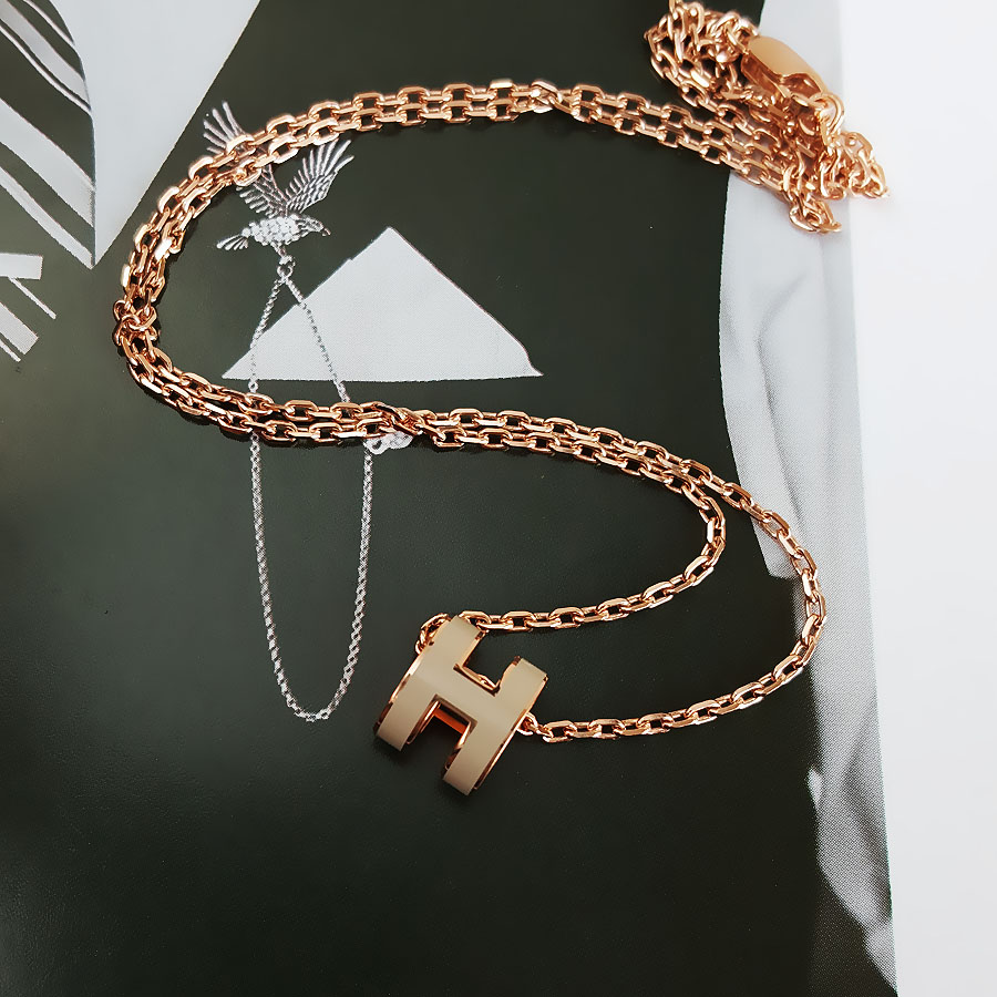 【全新】Hermes爱马仕H147992FO55玫瑰金奶茶色Mini Pop H项链链长约40cm女士 060126HS17