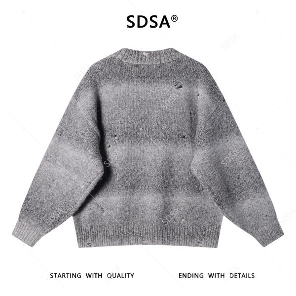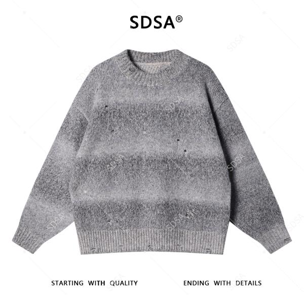 8818SDSA男士秋冬新款痞帅男装简约渐变条纹勾破圆领毛衣休闲百搭上衣