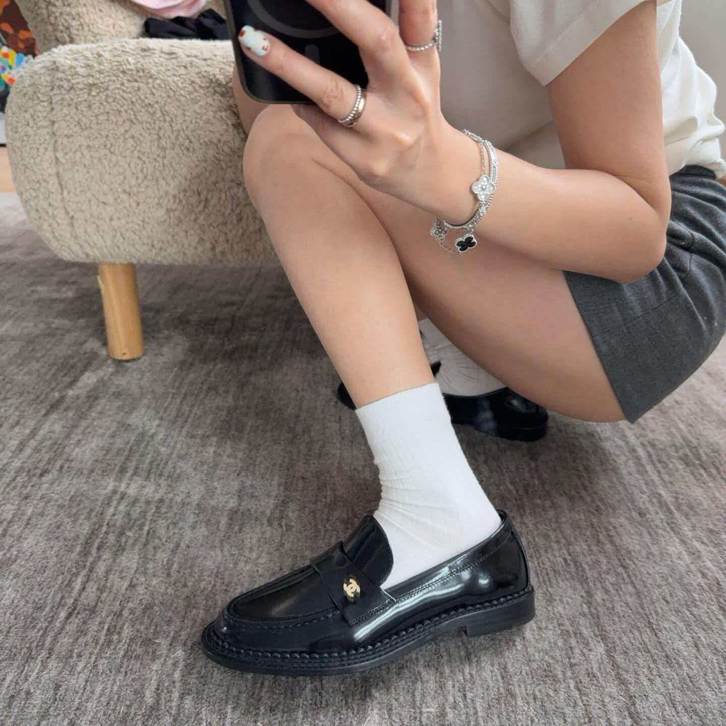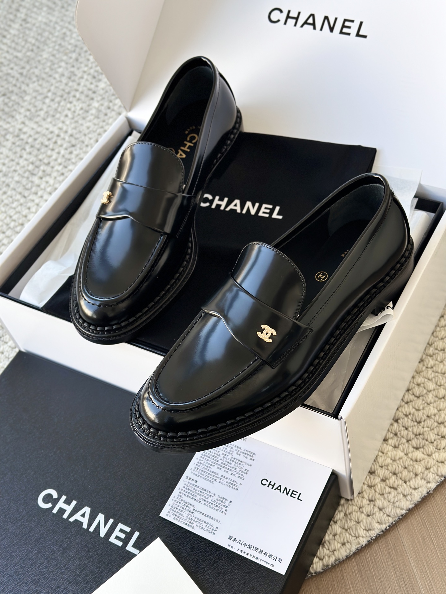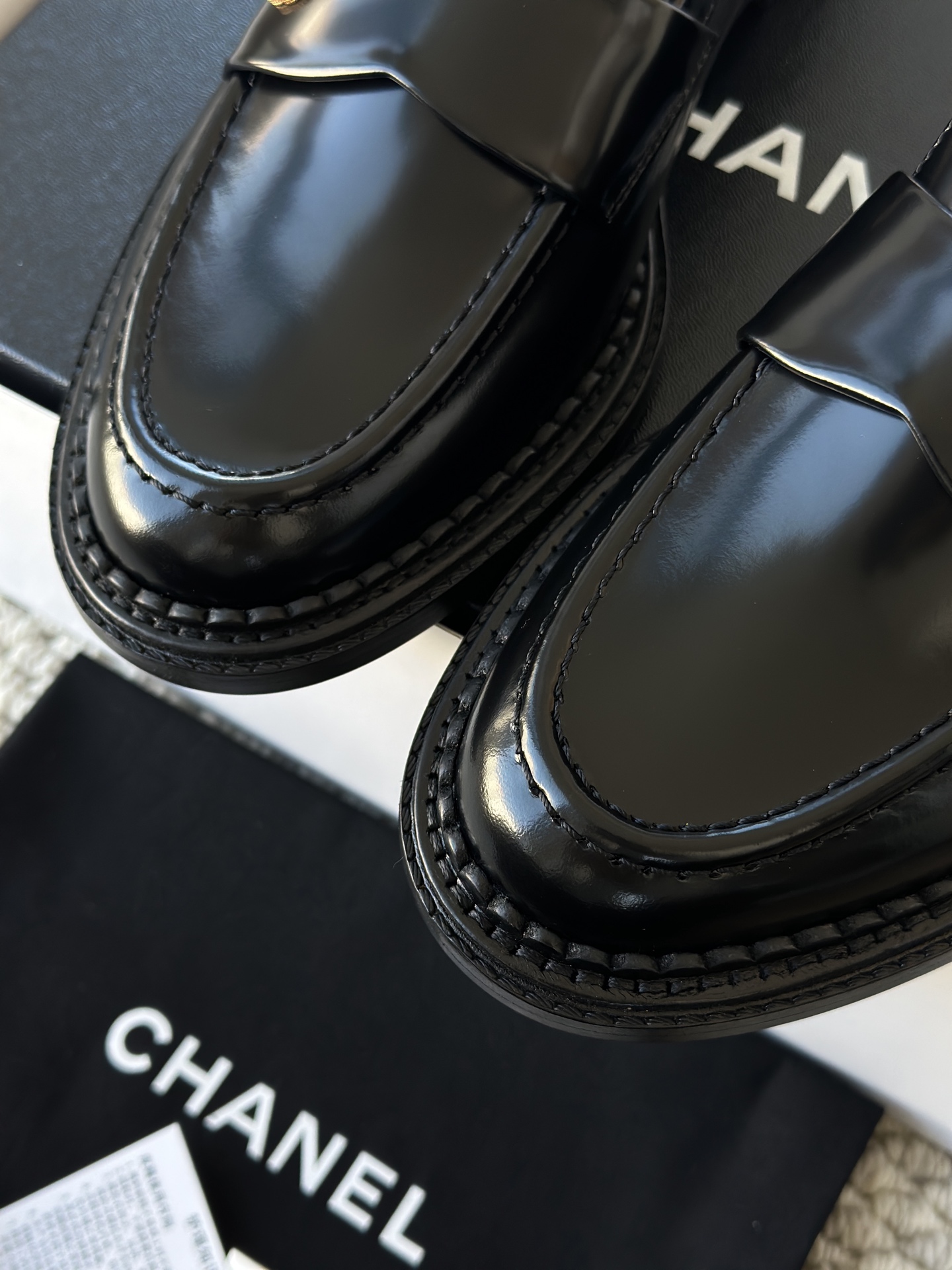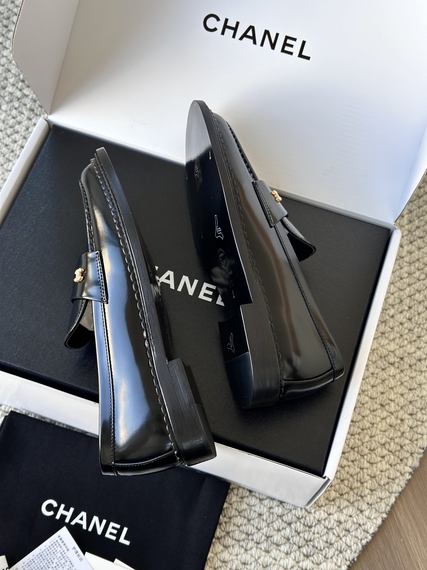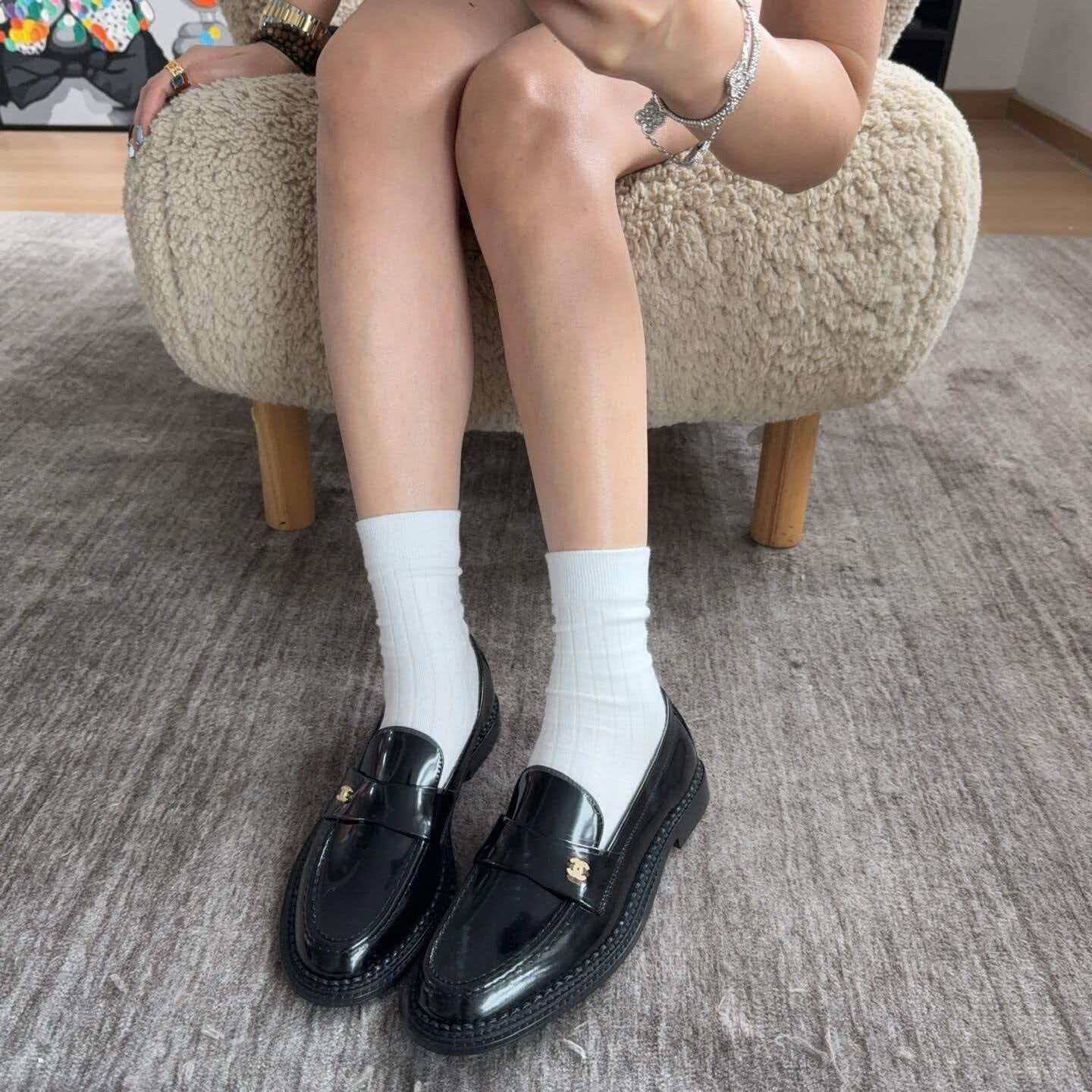 鞋面双c小香金属珍珠扣装饰❗️ 镀厚金搭配珍珠点缀其中!高级又优雅有格调!!小香的乐福您放一万个心去穿!绝对是最好看最好穿的存在