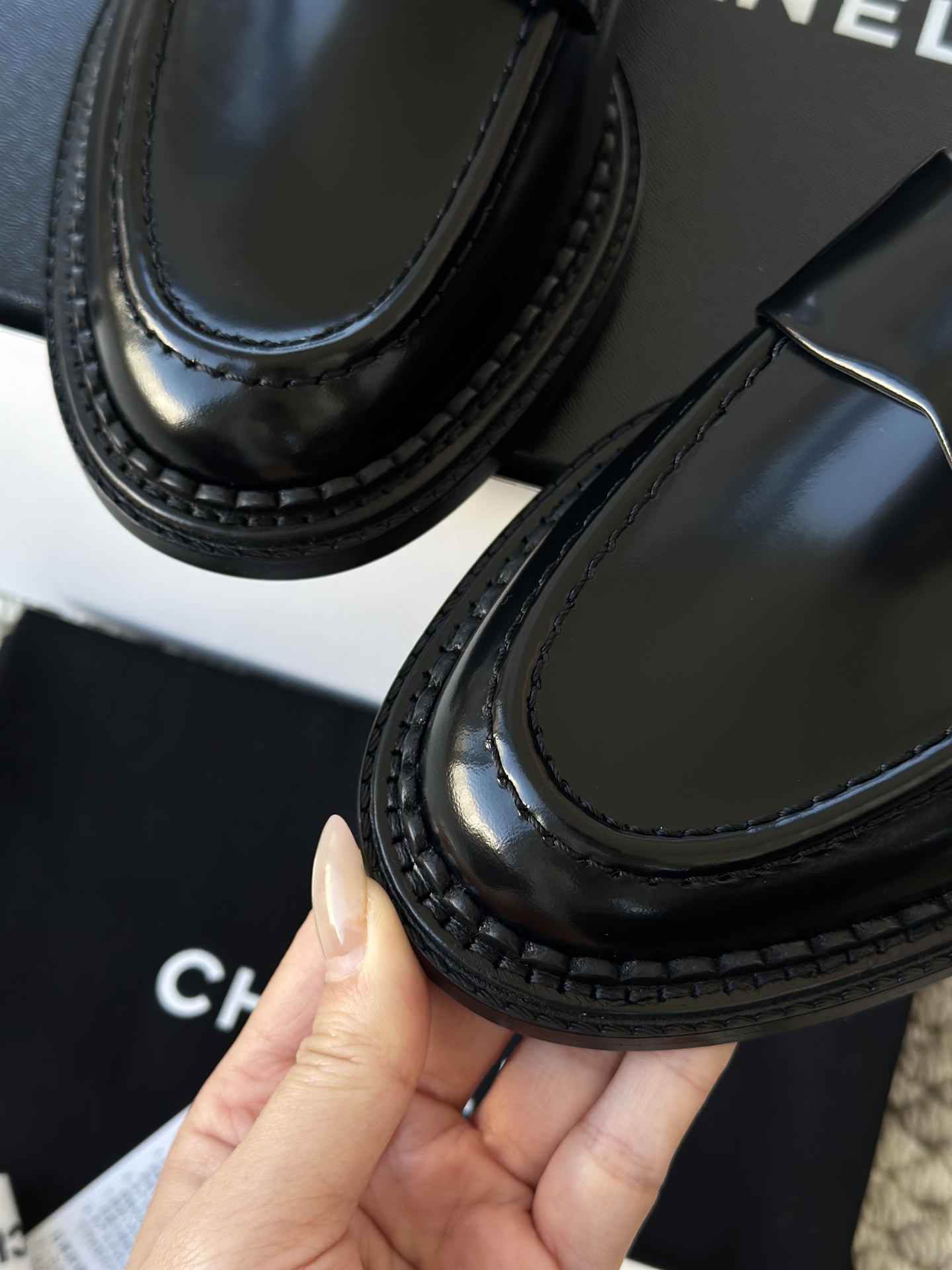 工艺上更是处处见真章,鞋身针脚细密得如同机器精雕,金属双C饰扣镶嵌得严丝合缝,就连鞋帮边缘的真皮银条都做了无缝贴合处理。