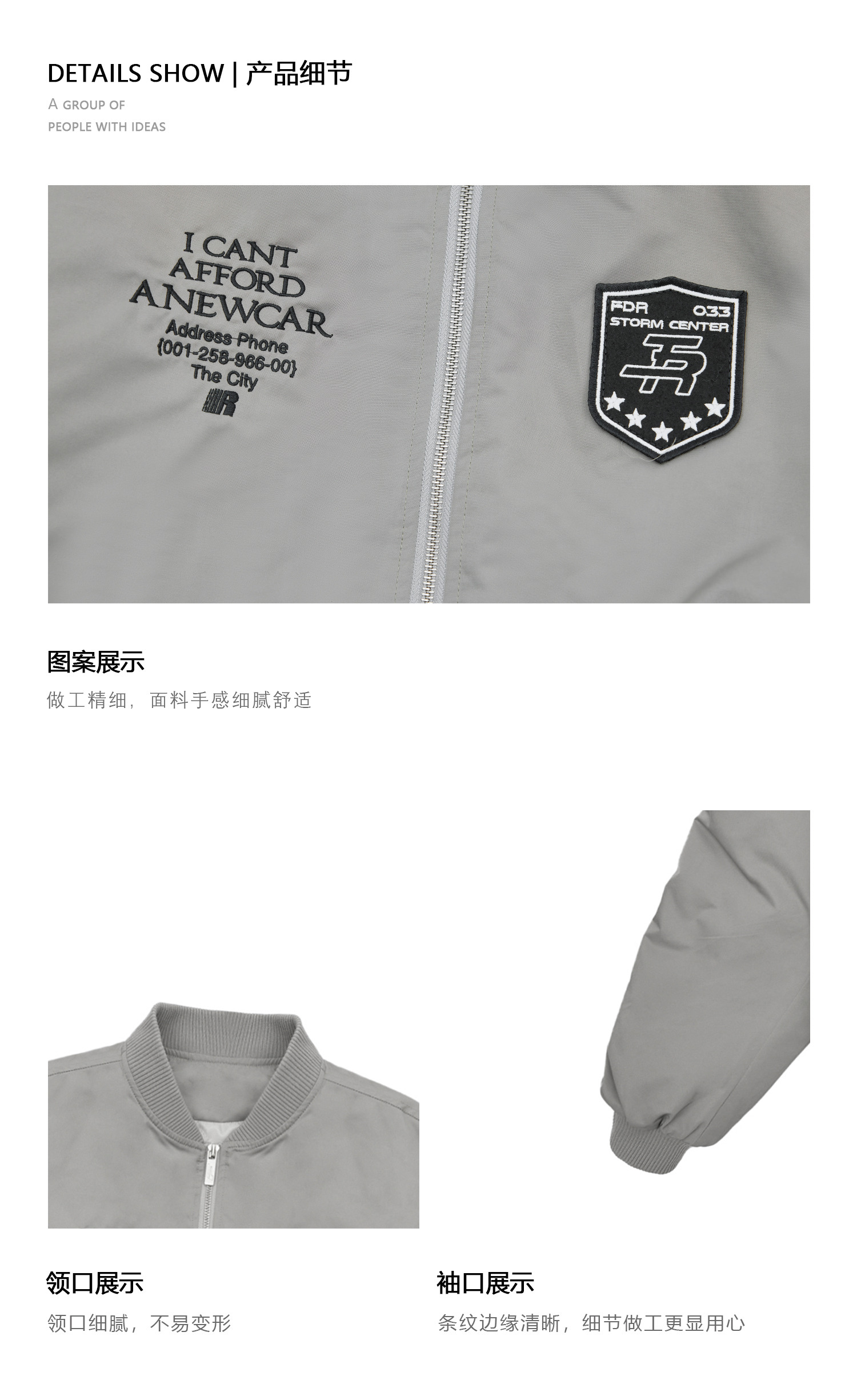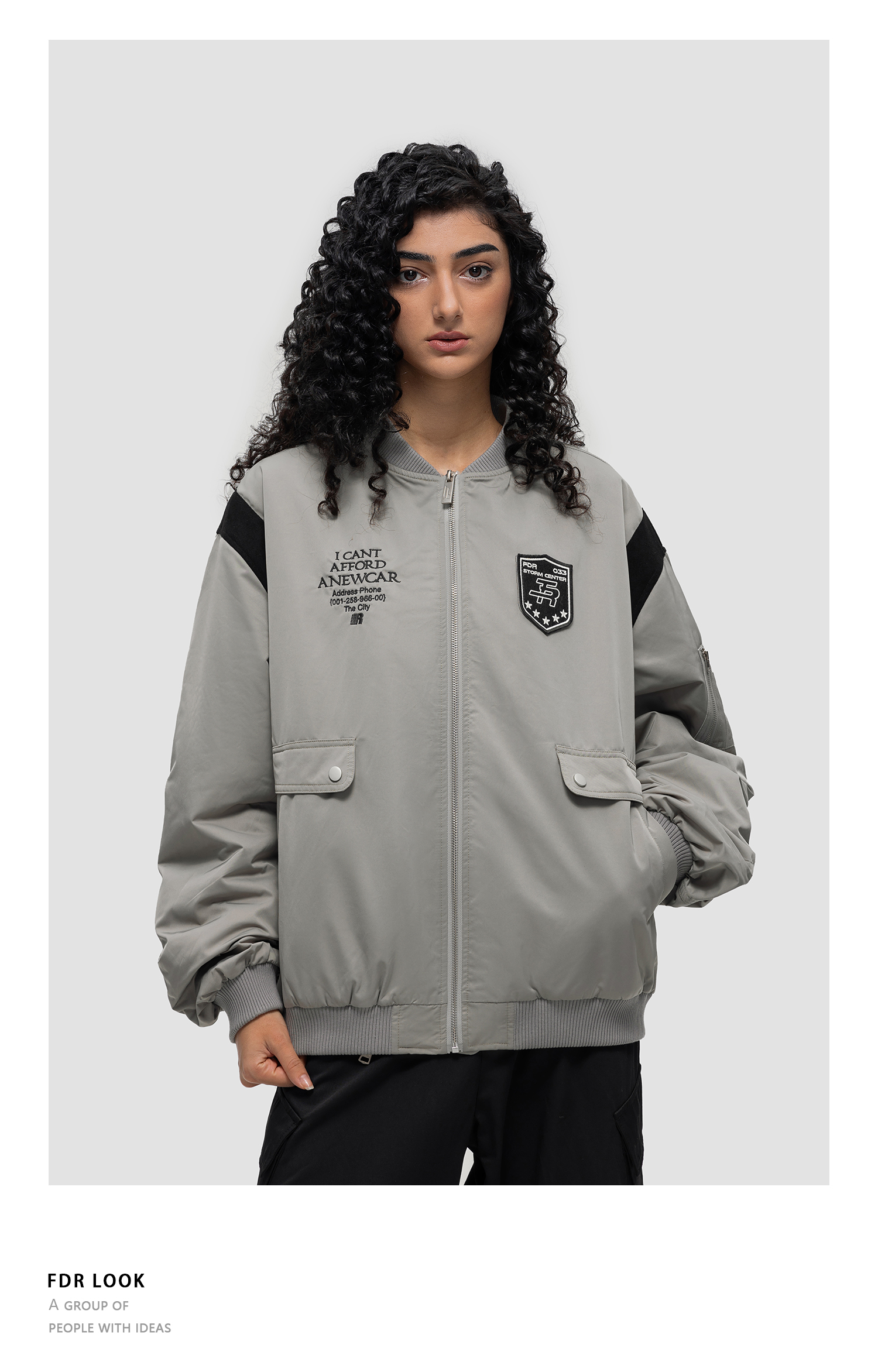 FDR 国潮美式复古飞行夹克外套男女春秋季加厚情侣宽松上衣棒球服