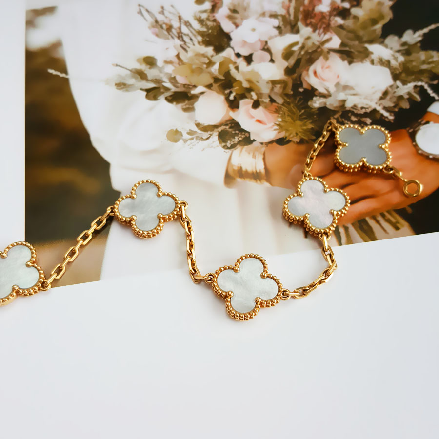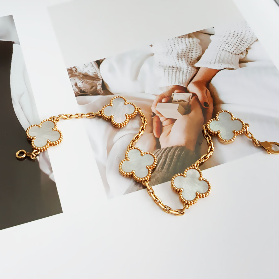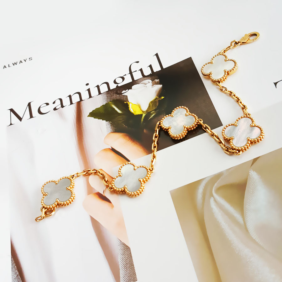 款式 | 18K黄金镶白贝母四叶草白五花手链 |