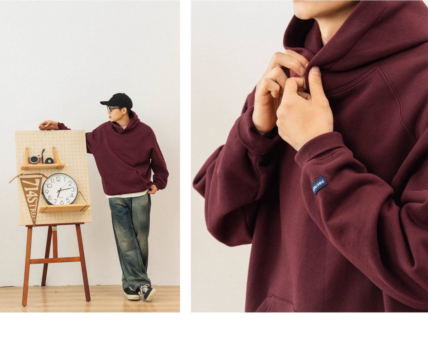 714street仿羊绒毛呢立领夹克男秋冬新款卫衣外套老钱风穿搭