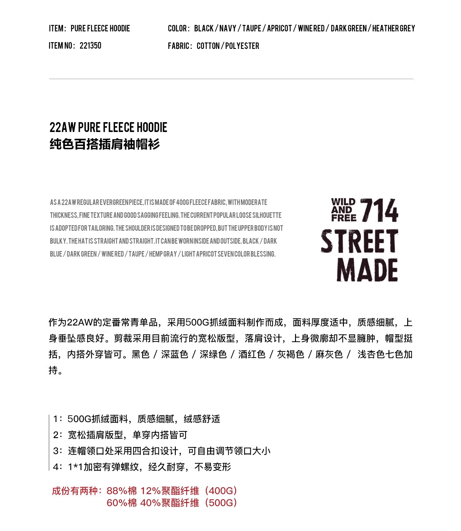 714street情侣卫衣男女2024春秋新款日系帽衫潮牌美式连帽外套