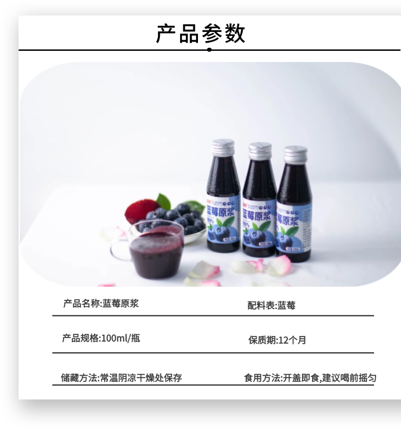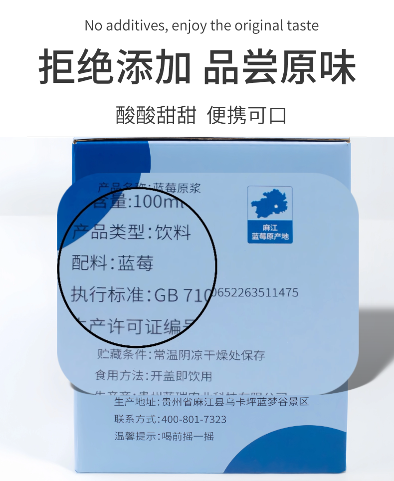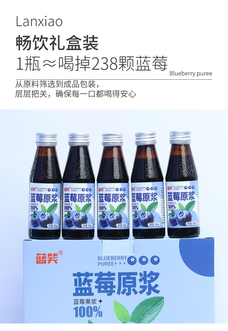 贵州黔东南蓝笑100%蓝莓原浆100ml*8瓶*1盒