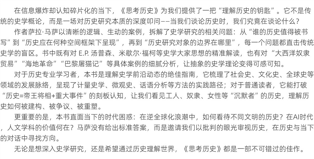 思考历史 (美)萨拉·马萨 著 曹鸿 译 思考,想想,制造,欧美史学,化退潮,AI,广西师范大学出版社