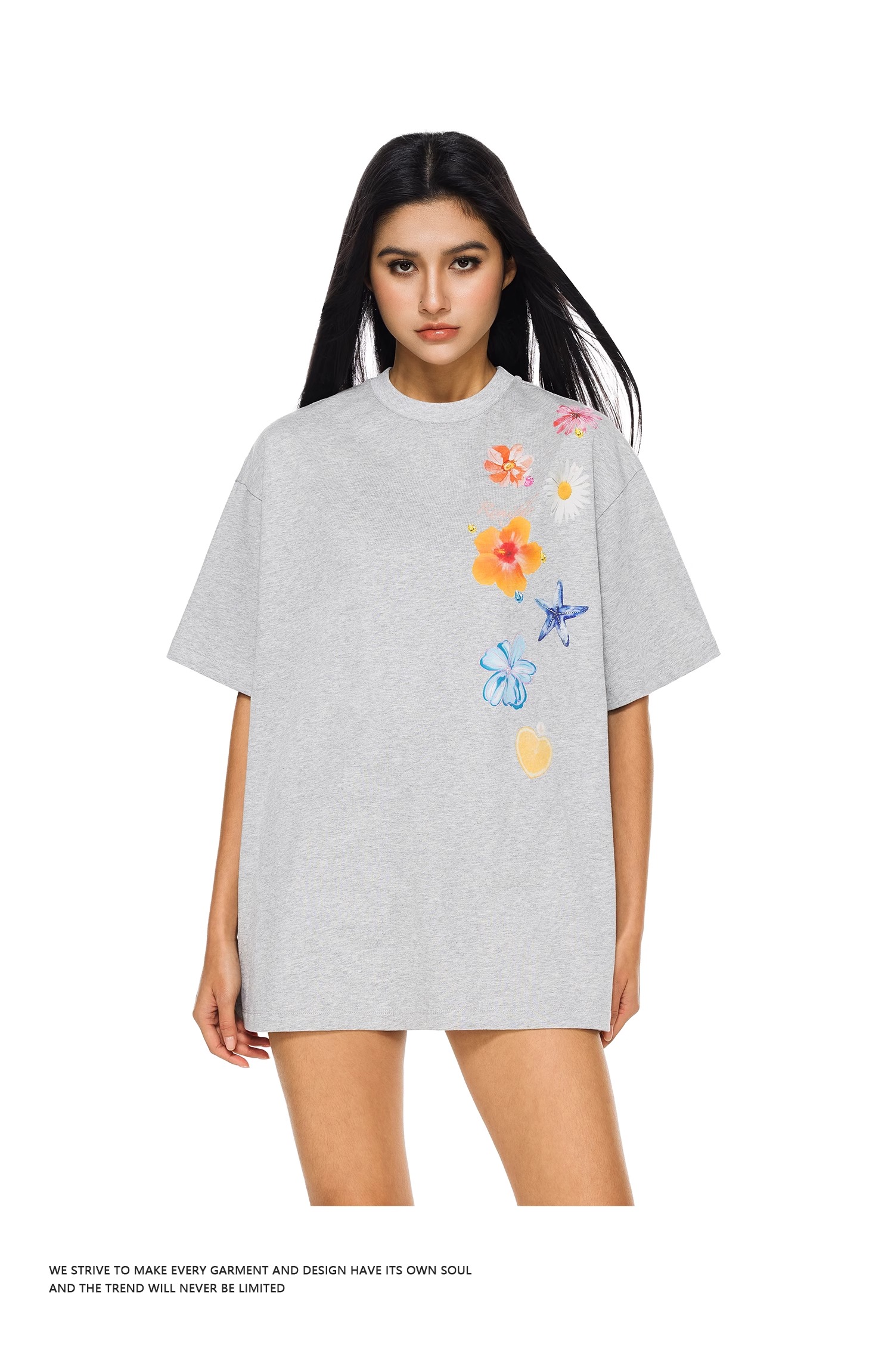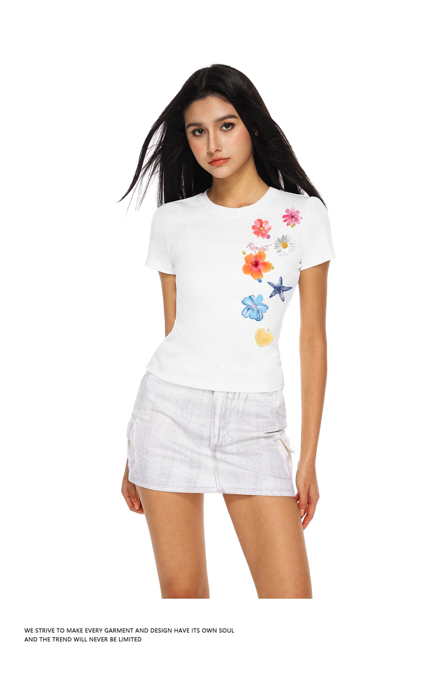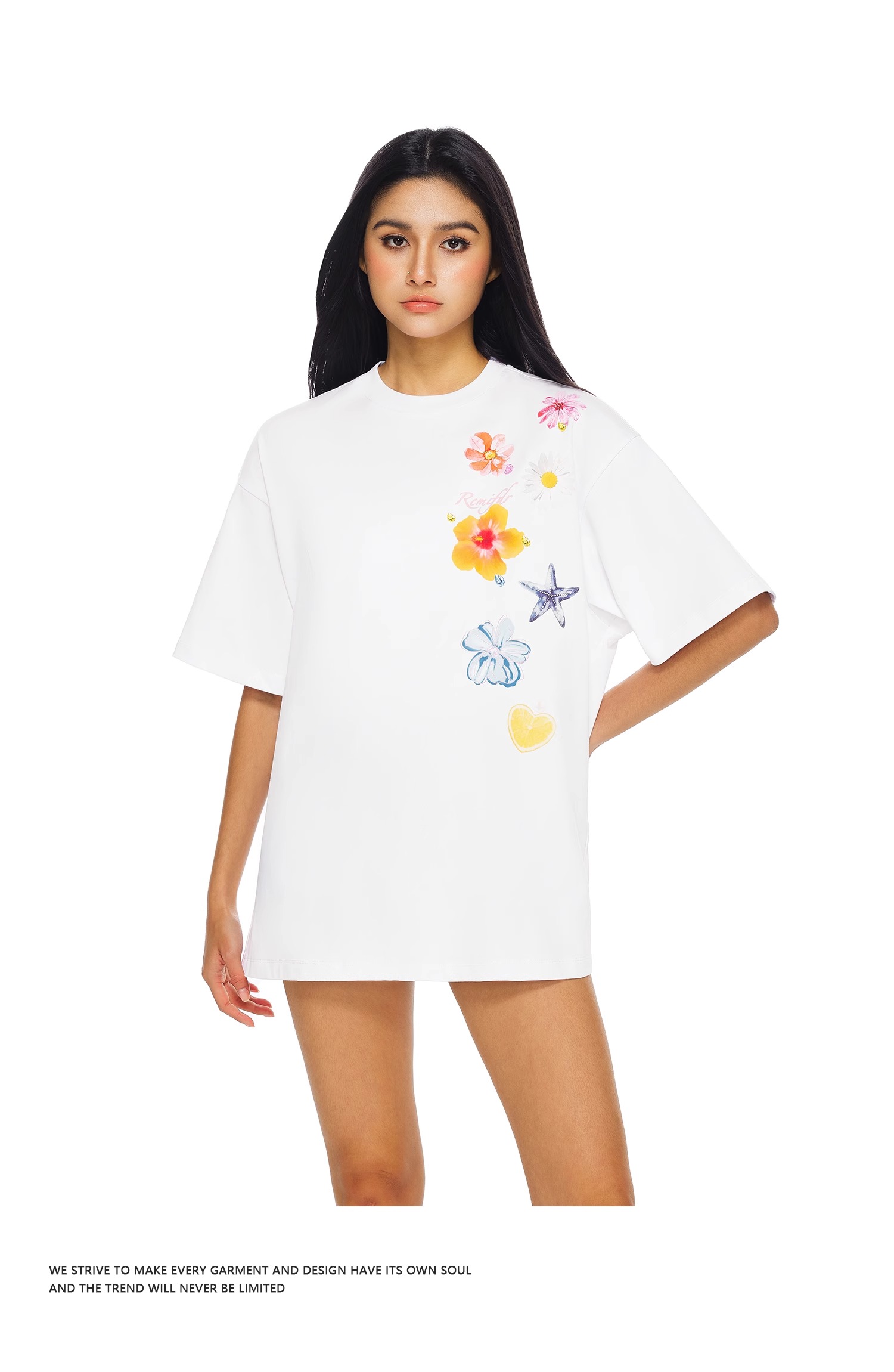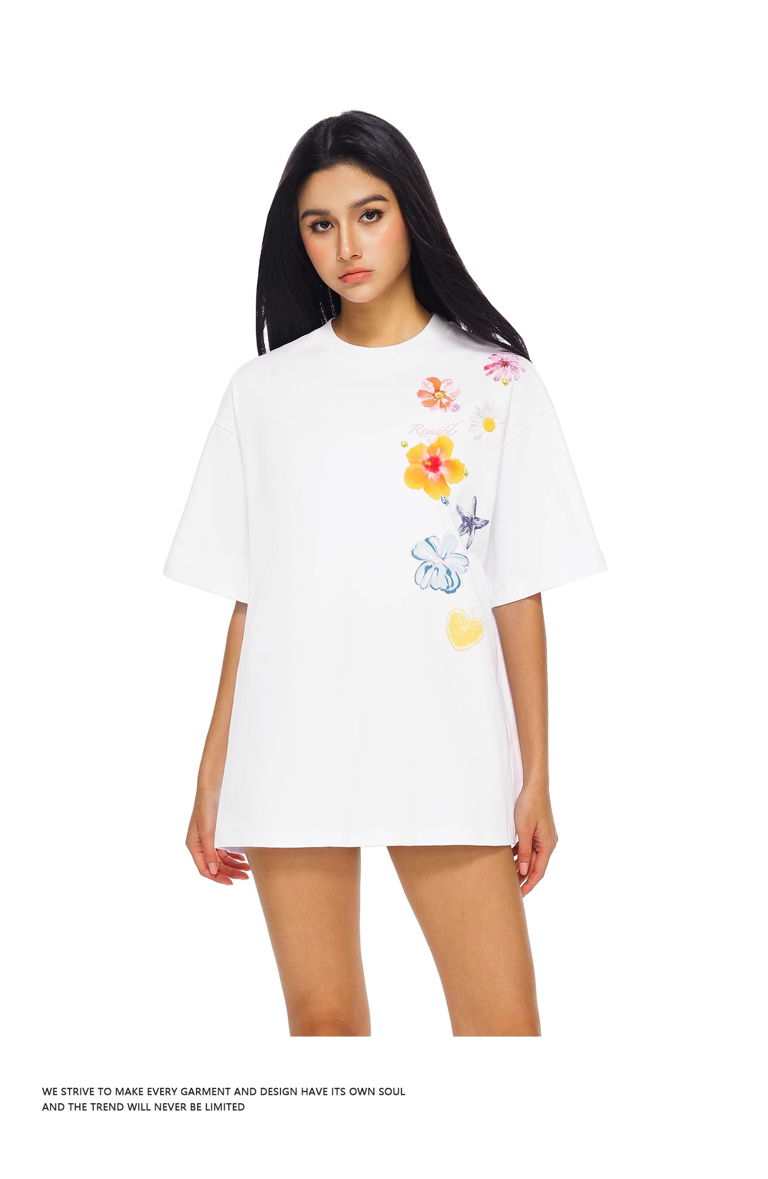 FDR官方店 辣妹花朵侧边印花短袖t恤男女夏季休闲情侣装体恤上衣