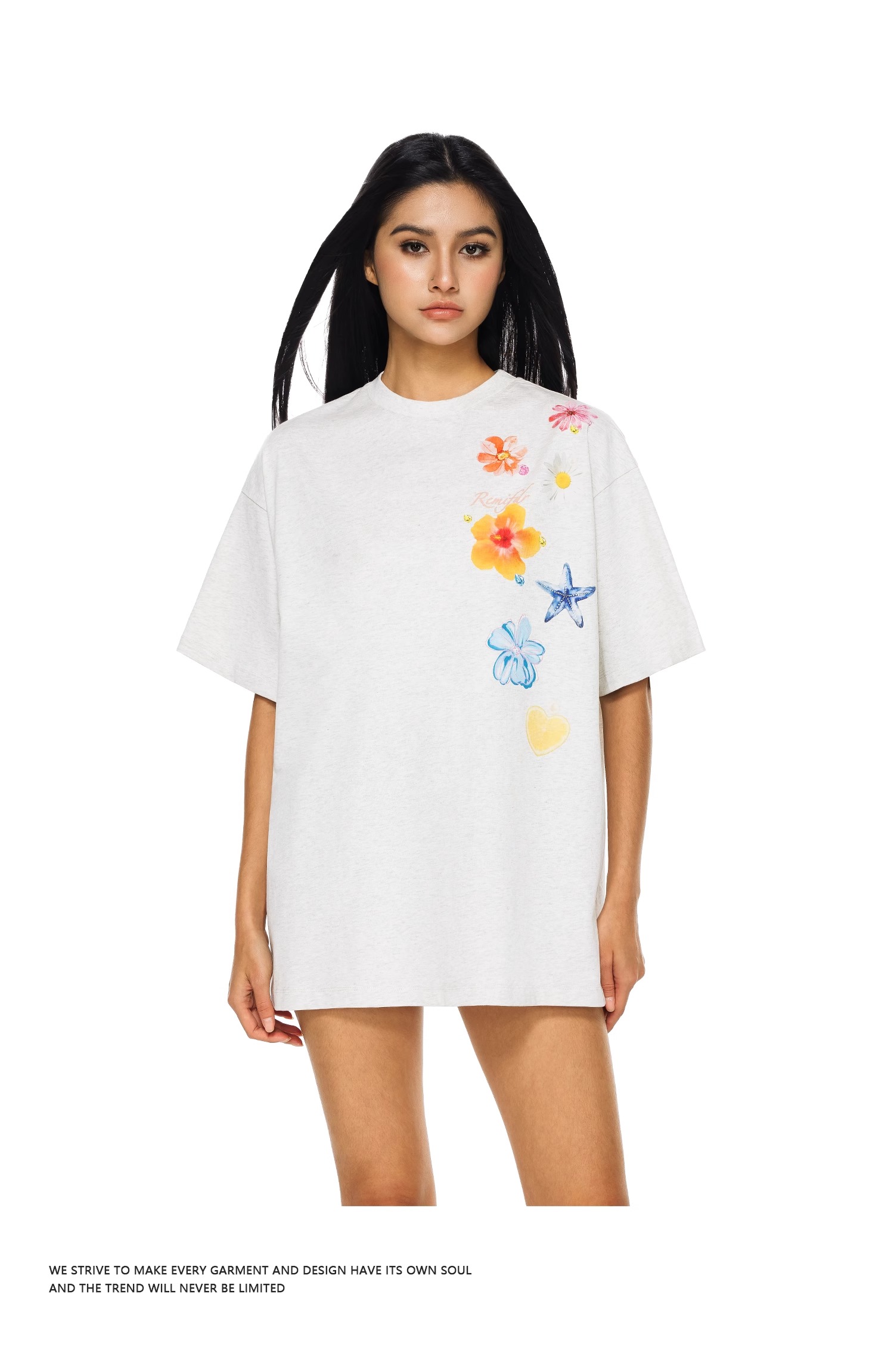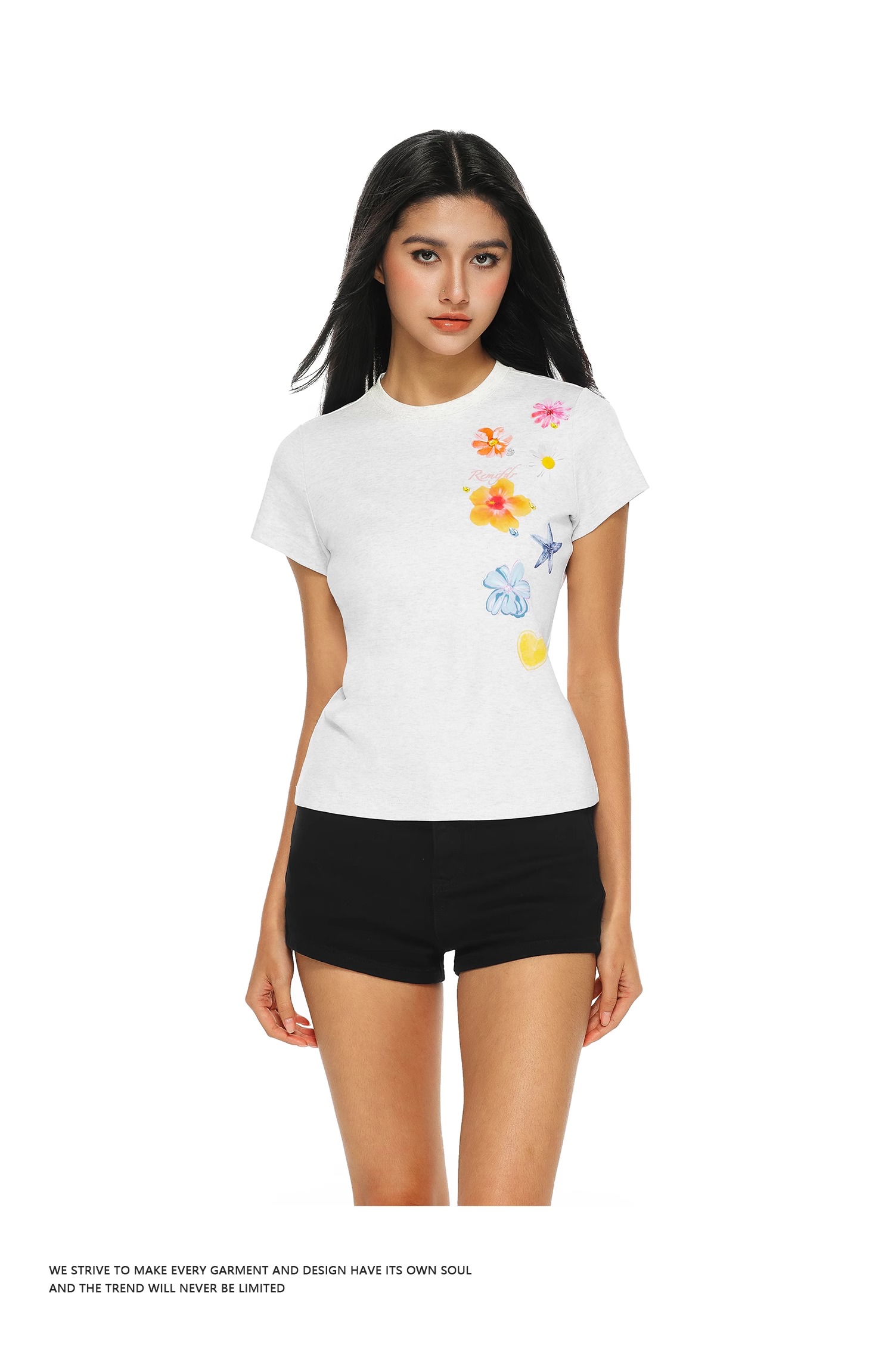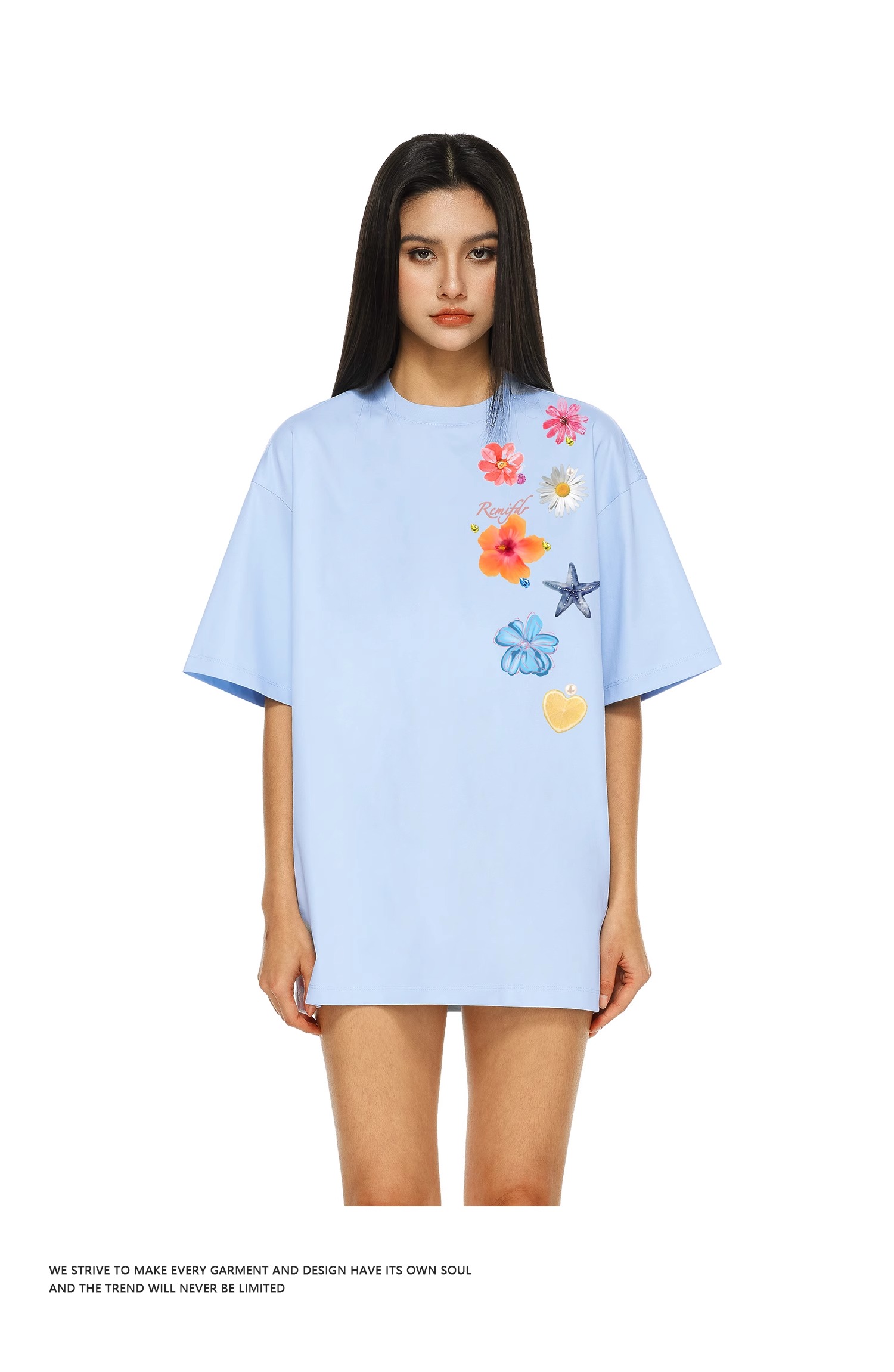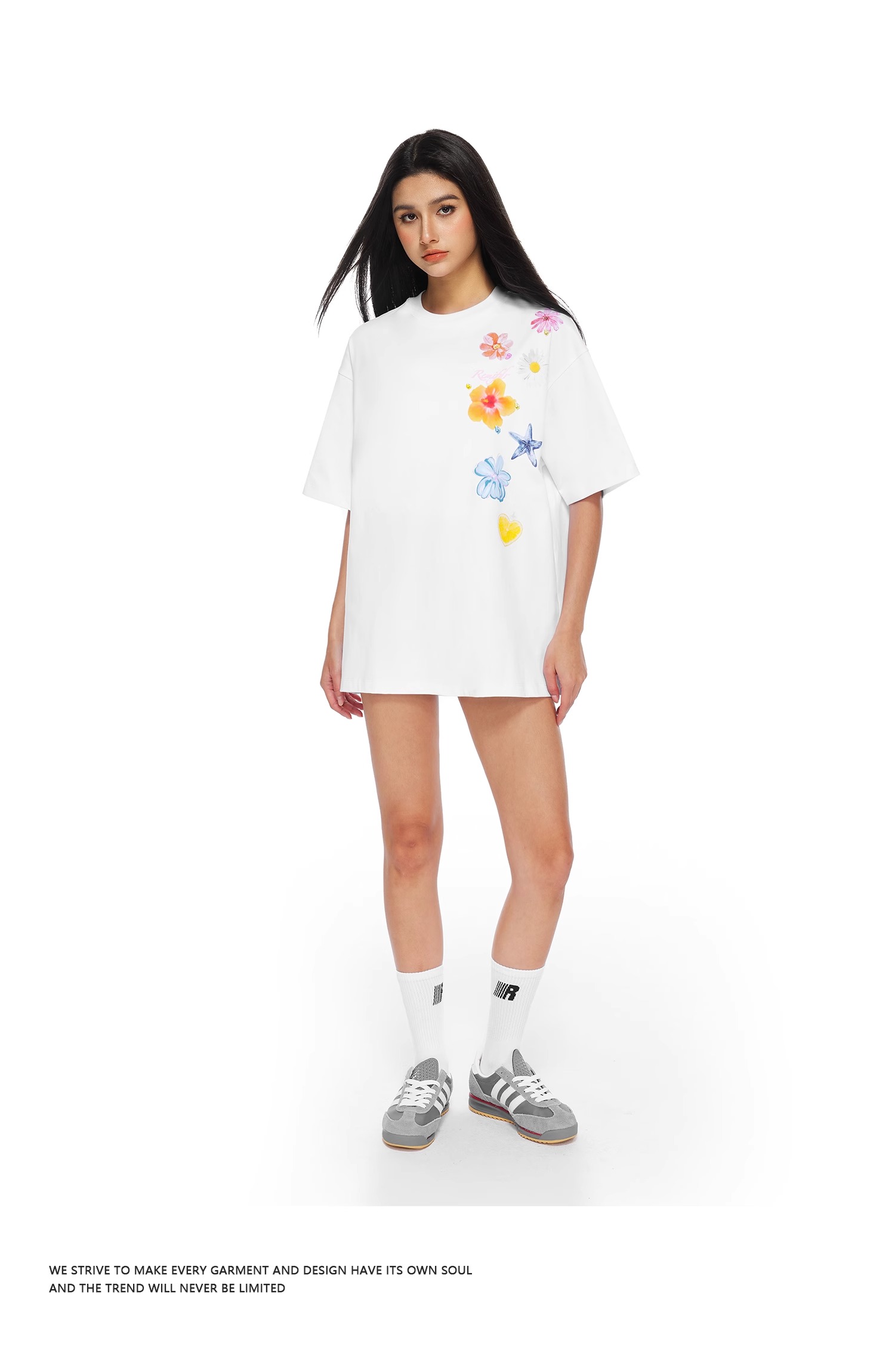 FDR官方店 辣妹花朵侧边印花短袖t恤男女夏季休闲情侣装体恤上衣