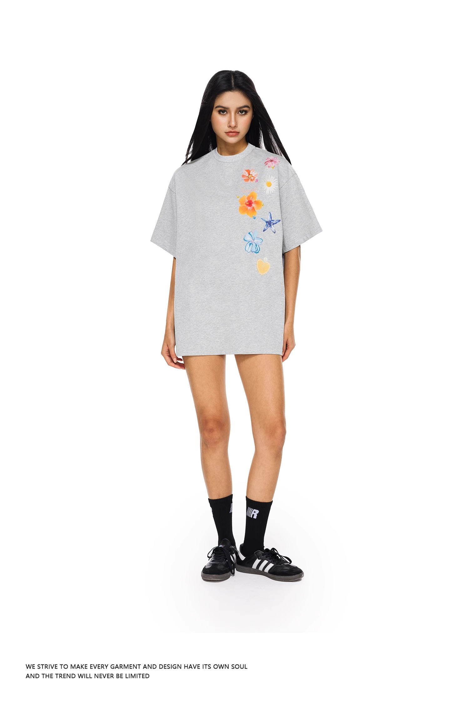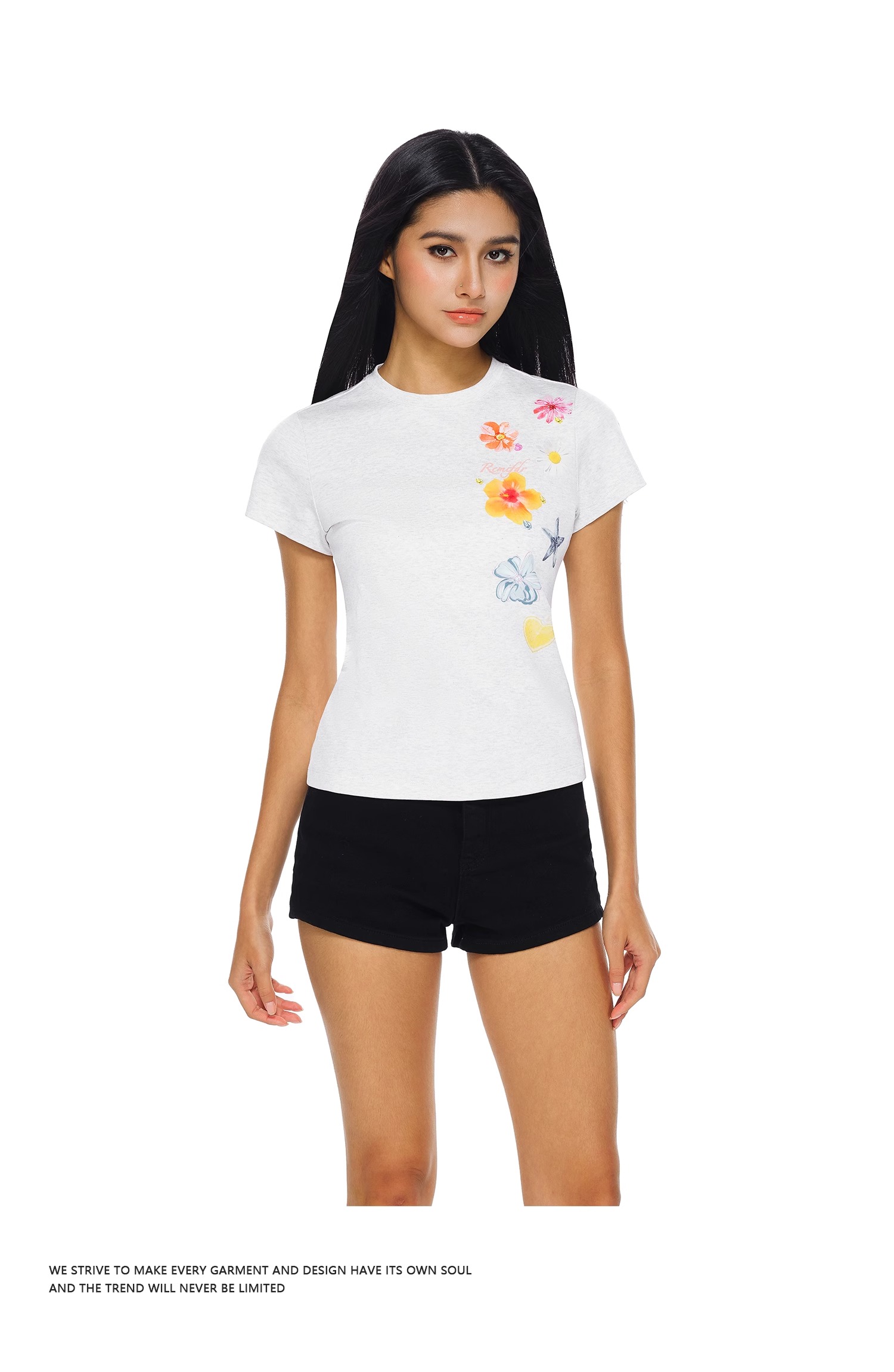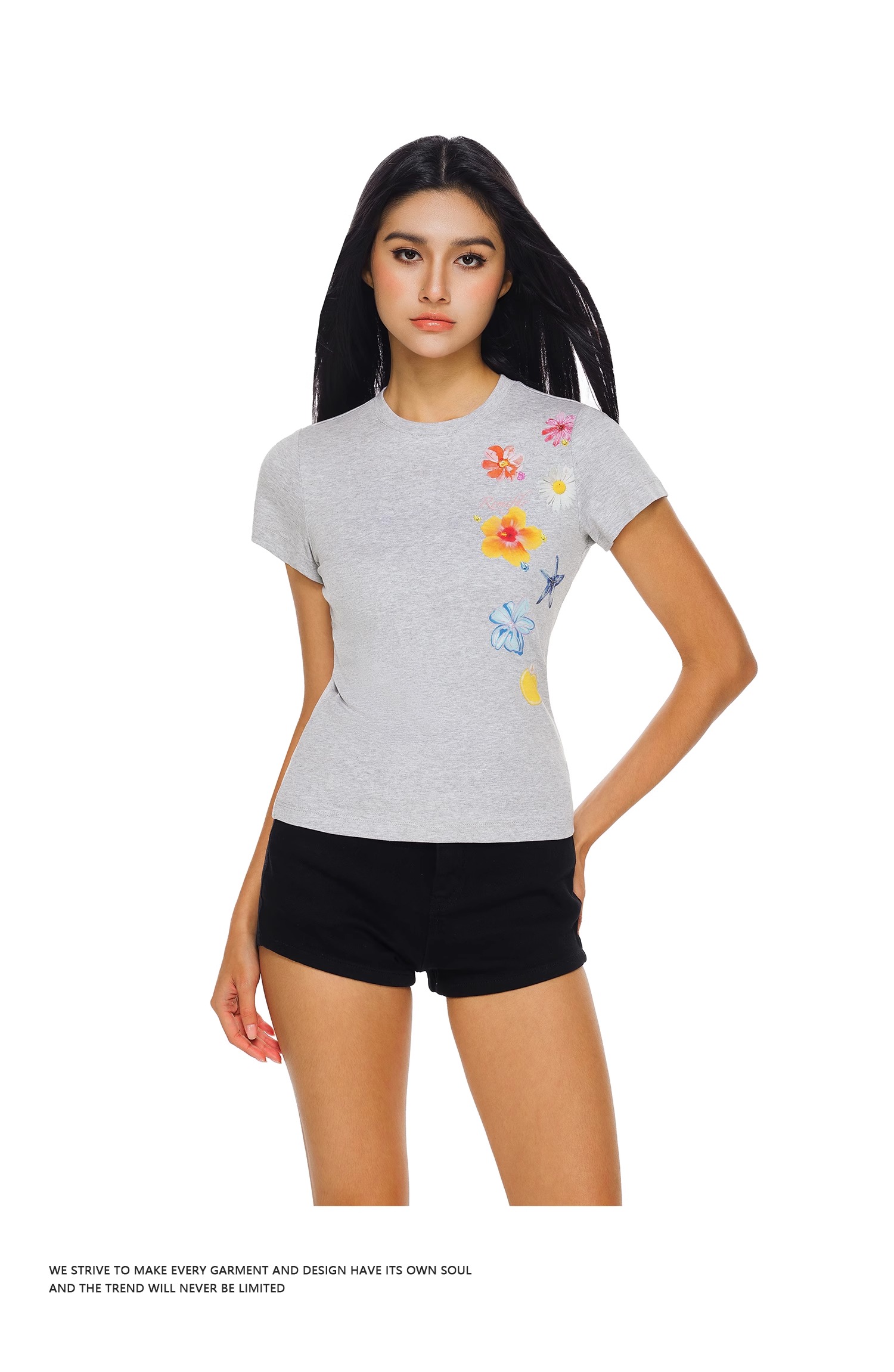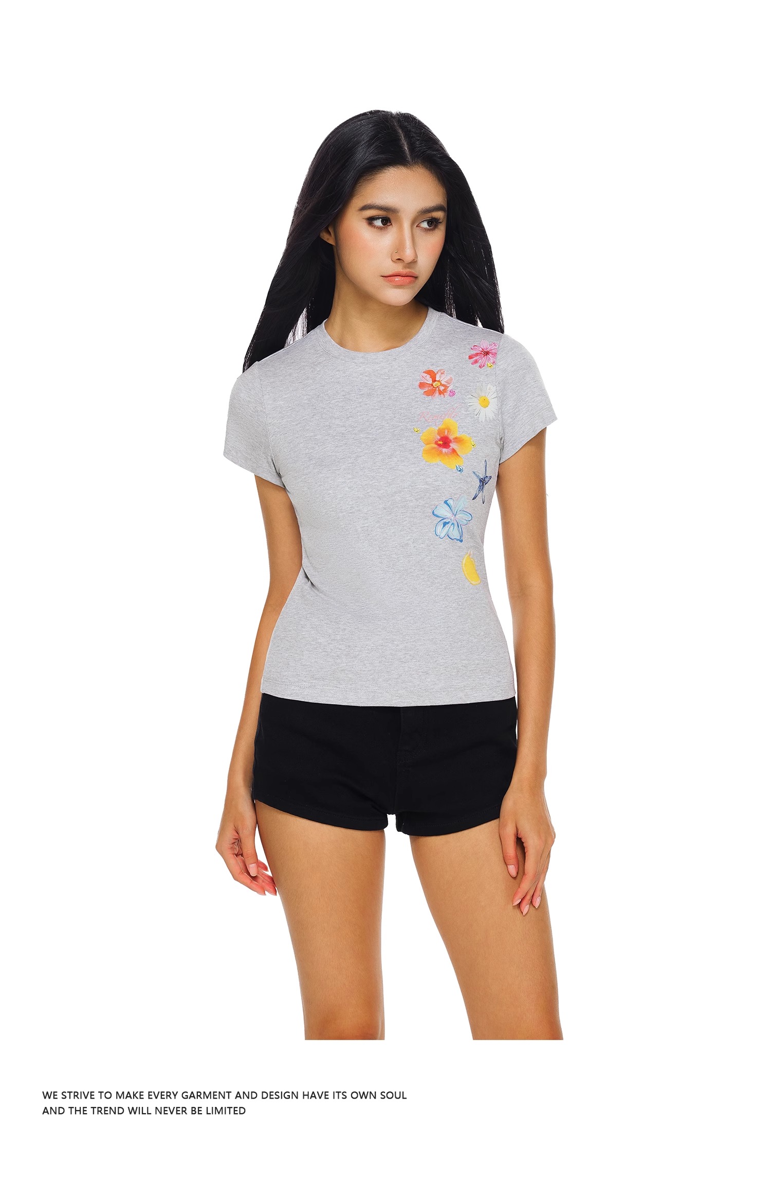 FDR官方店 辣妹花朵侧边印花短袖t恤男女夏季休闲情侣装体恤上衣