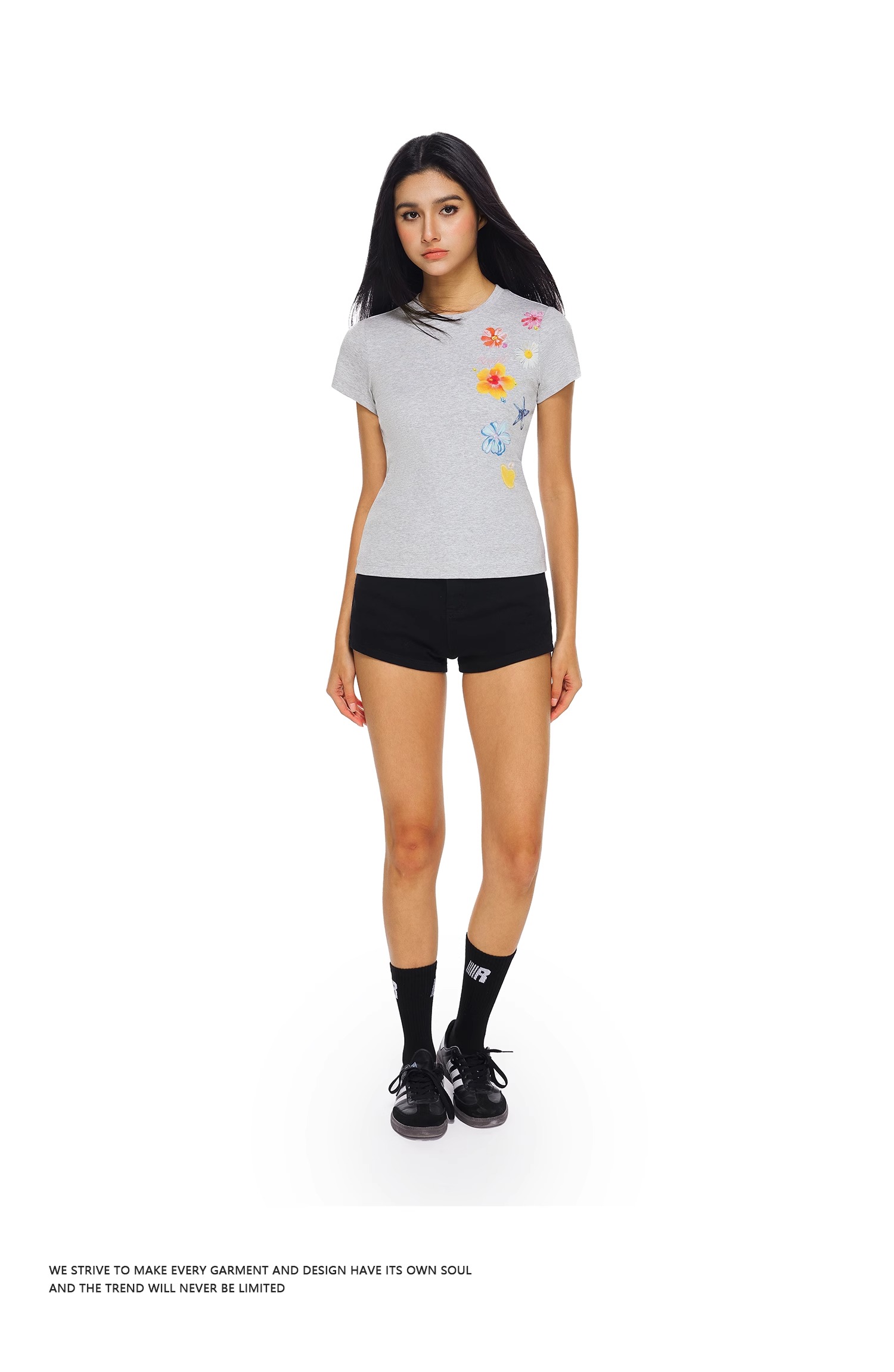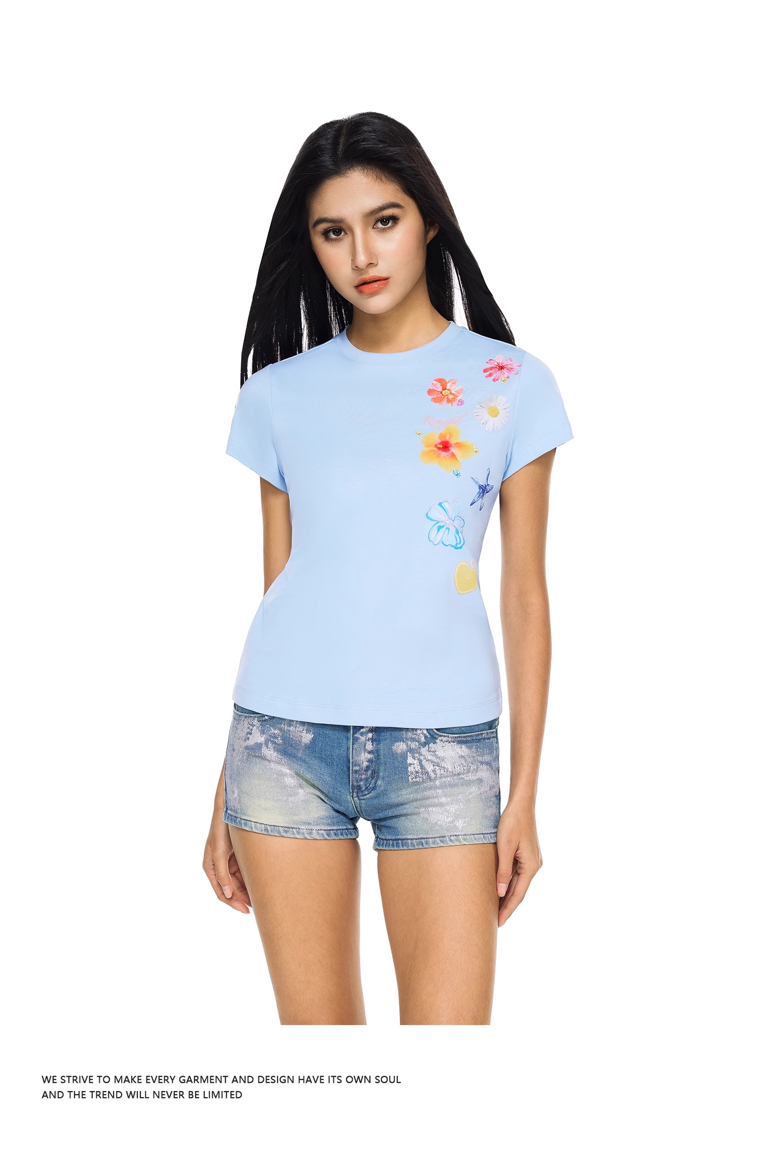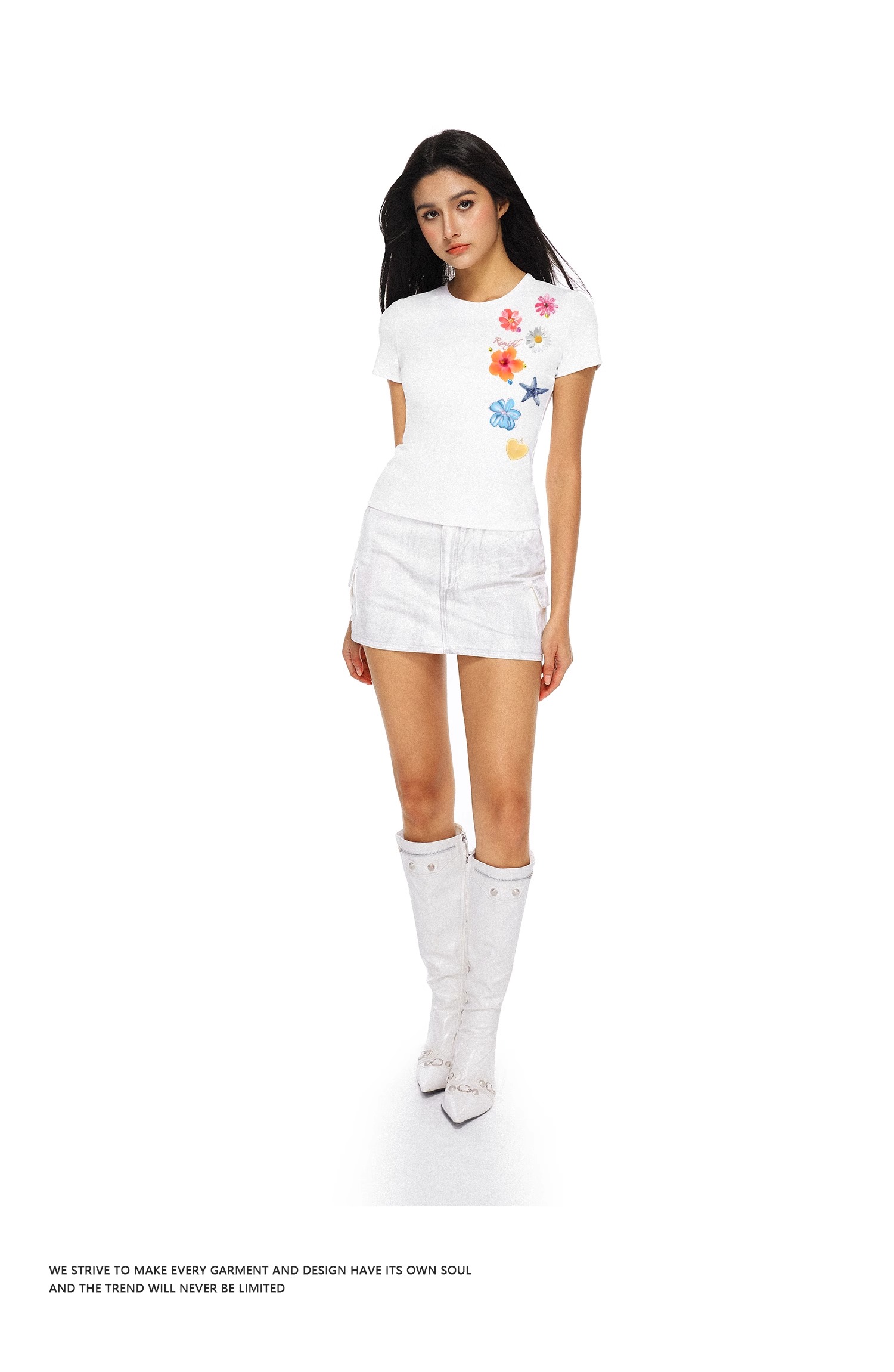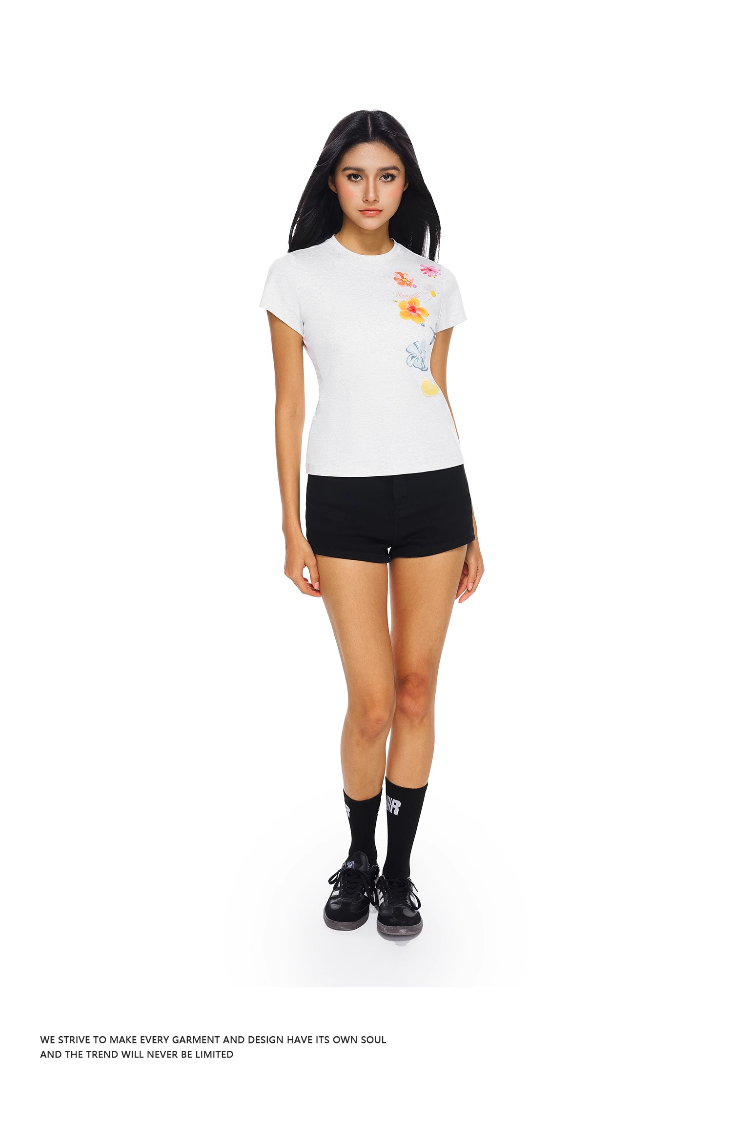 FDR官方店 辣妹花朵侧边印花短袖t恤男女夏季休闲情侣装体恤上衣