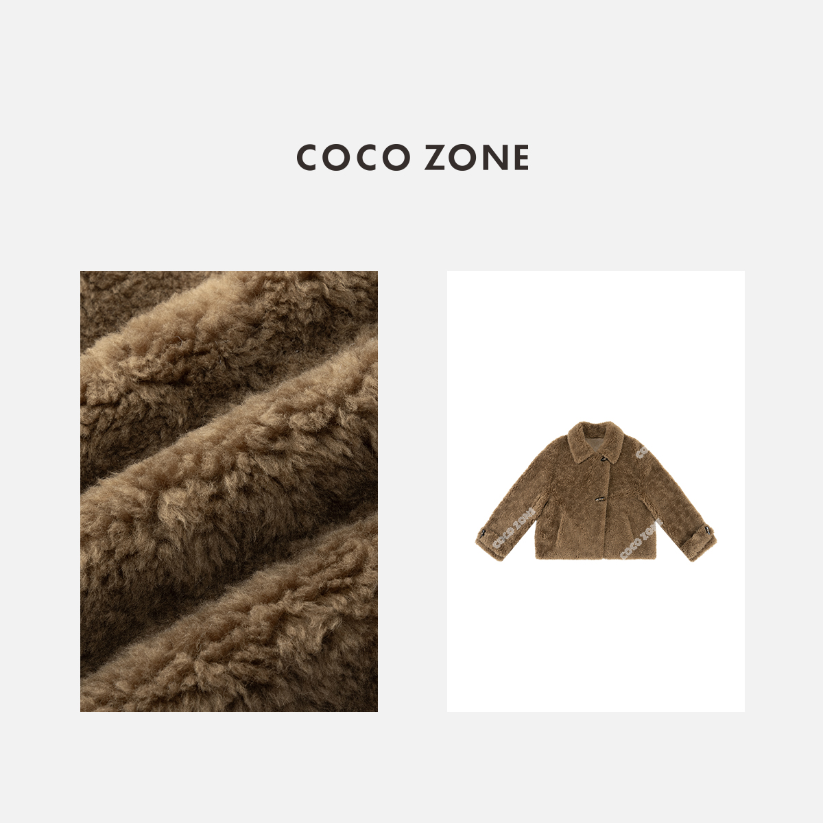 COCO ZONE 100绵羊毛polo领外套牛角扣上衣CC2C2221