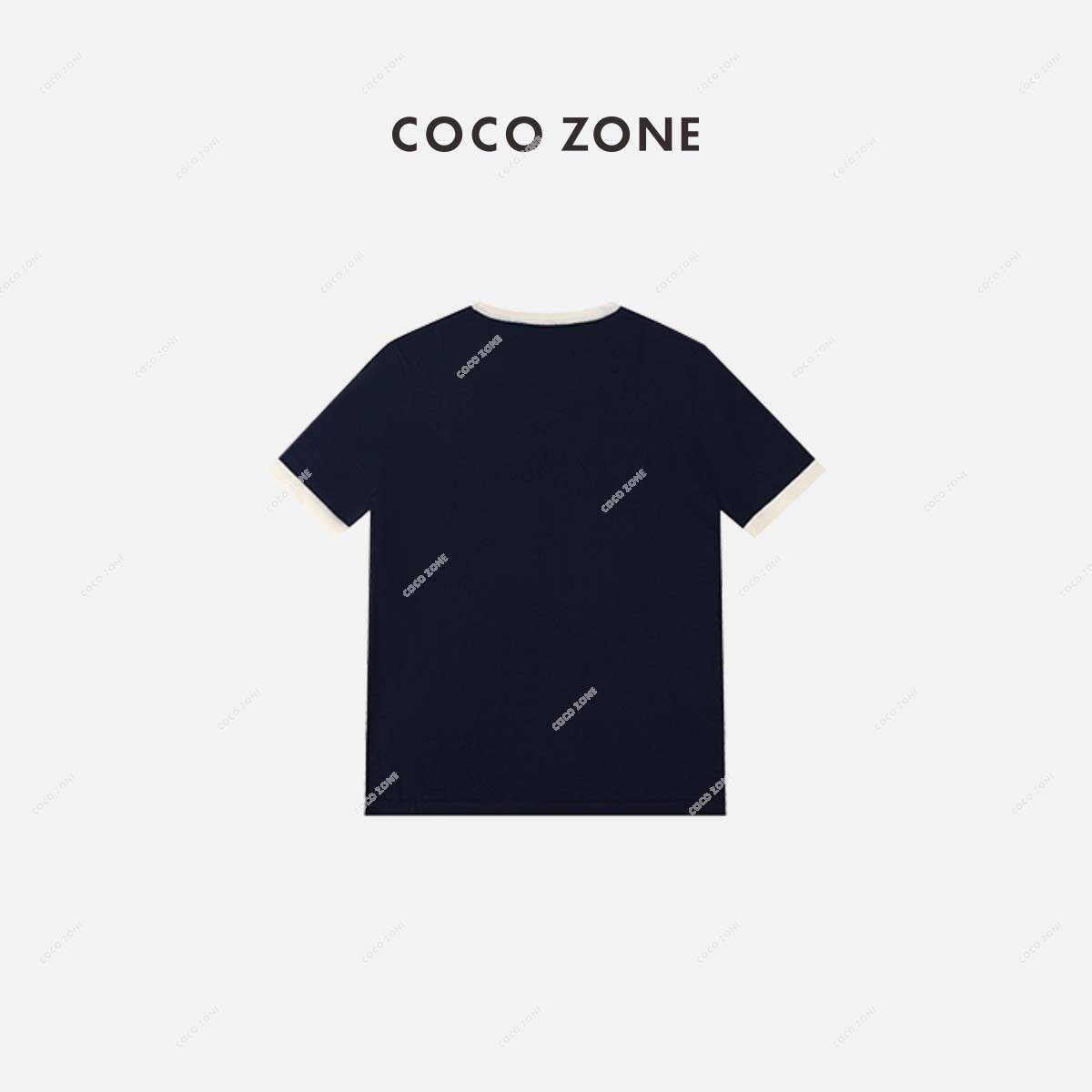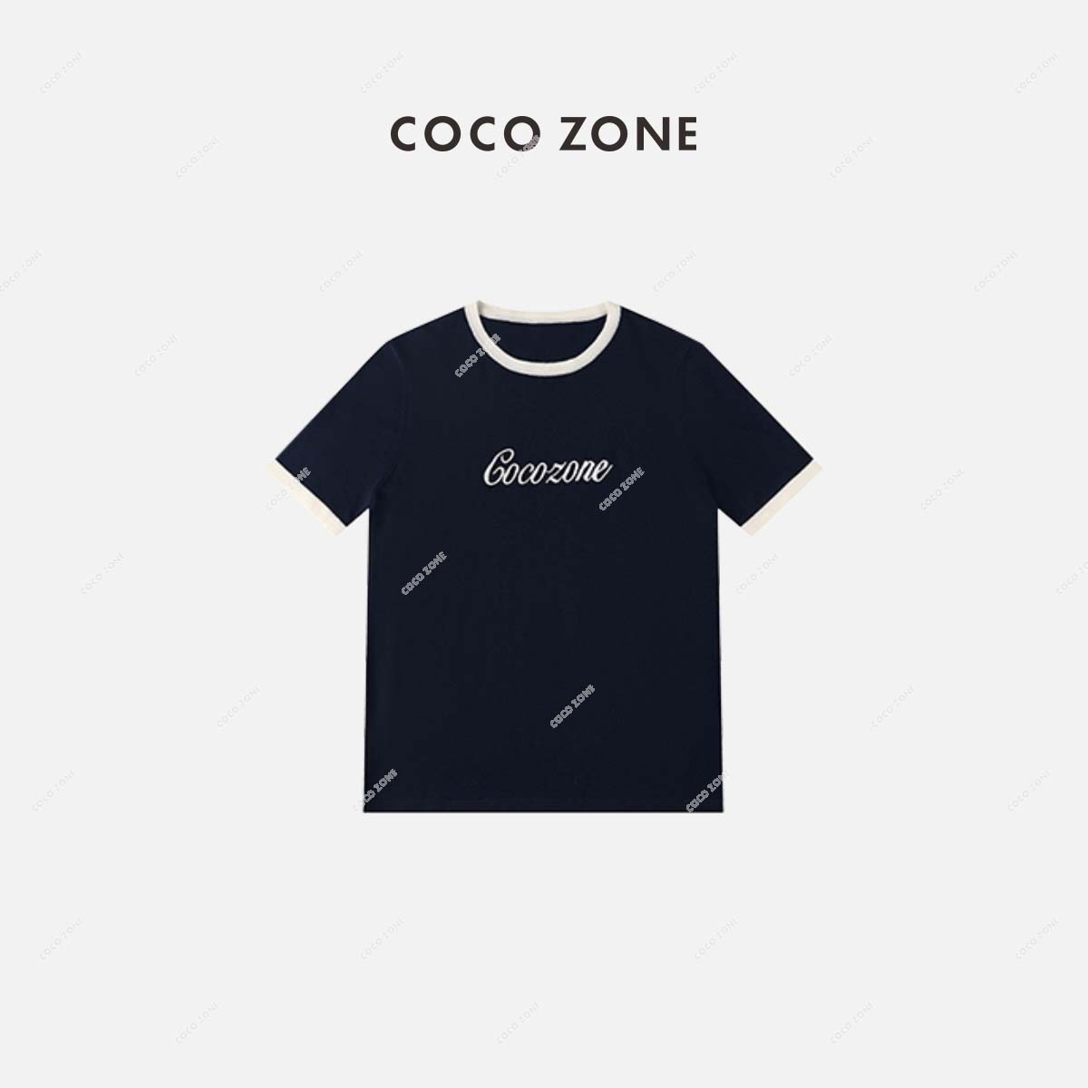 COCO ZONE 夏季字母短袖前幅绣花领子撞色T恤上衣 23C18467