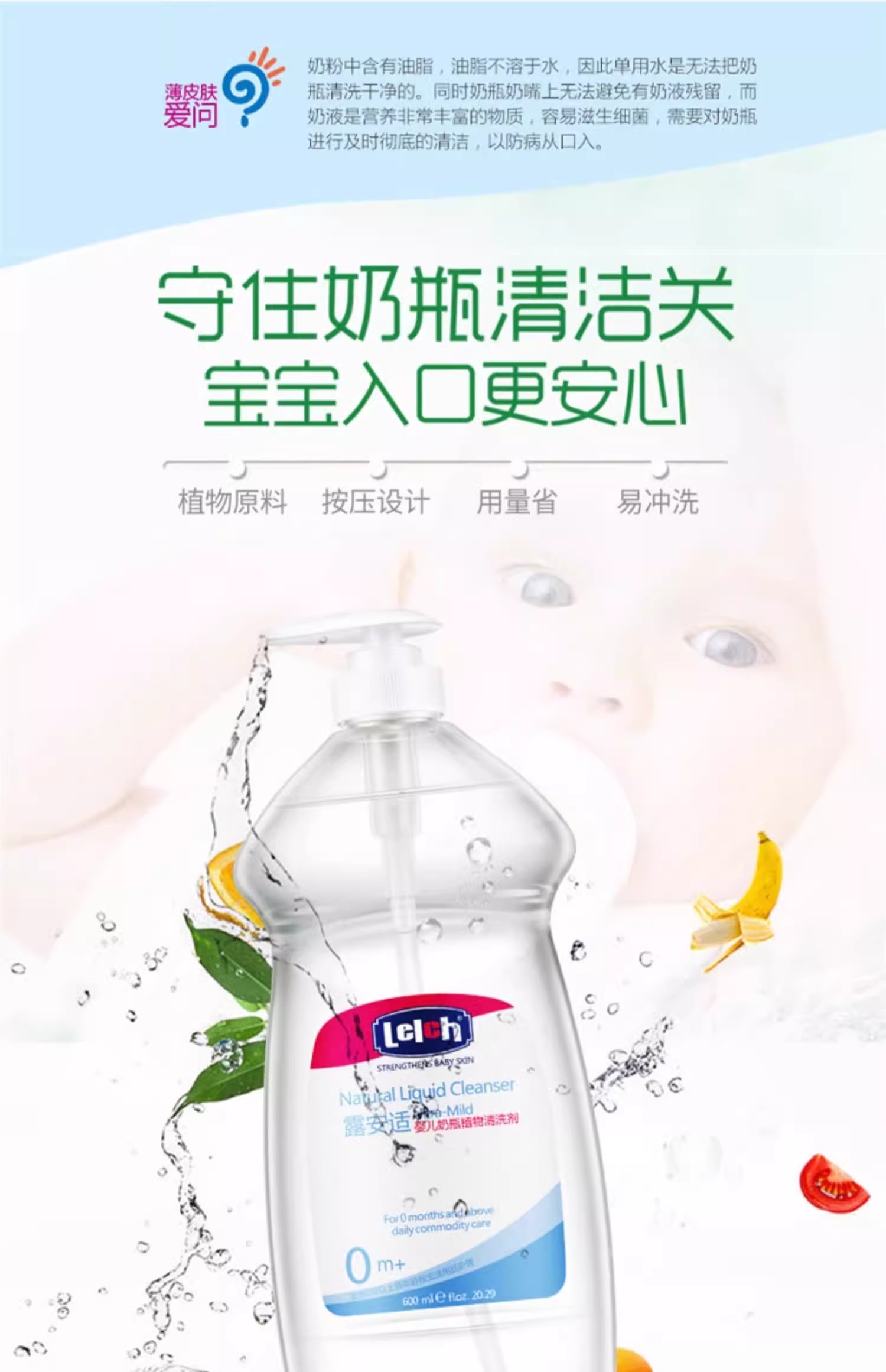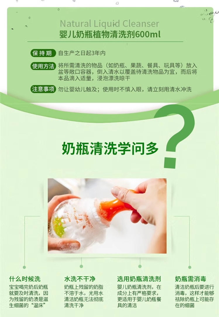 露安适婴儿奶瓶植物清洗剂新生儿宝宝果蔬餐具清洁液清洁剂600ml