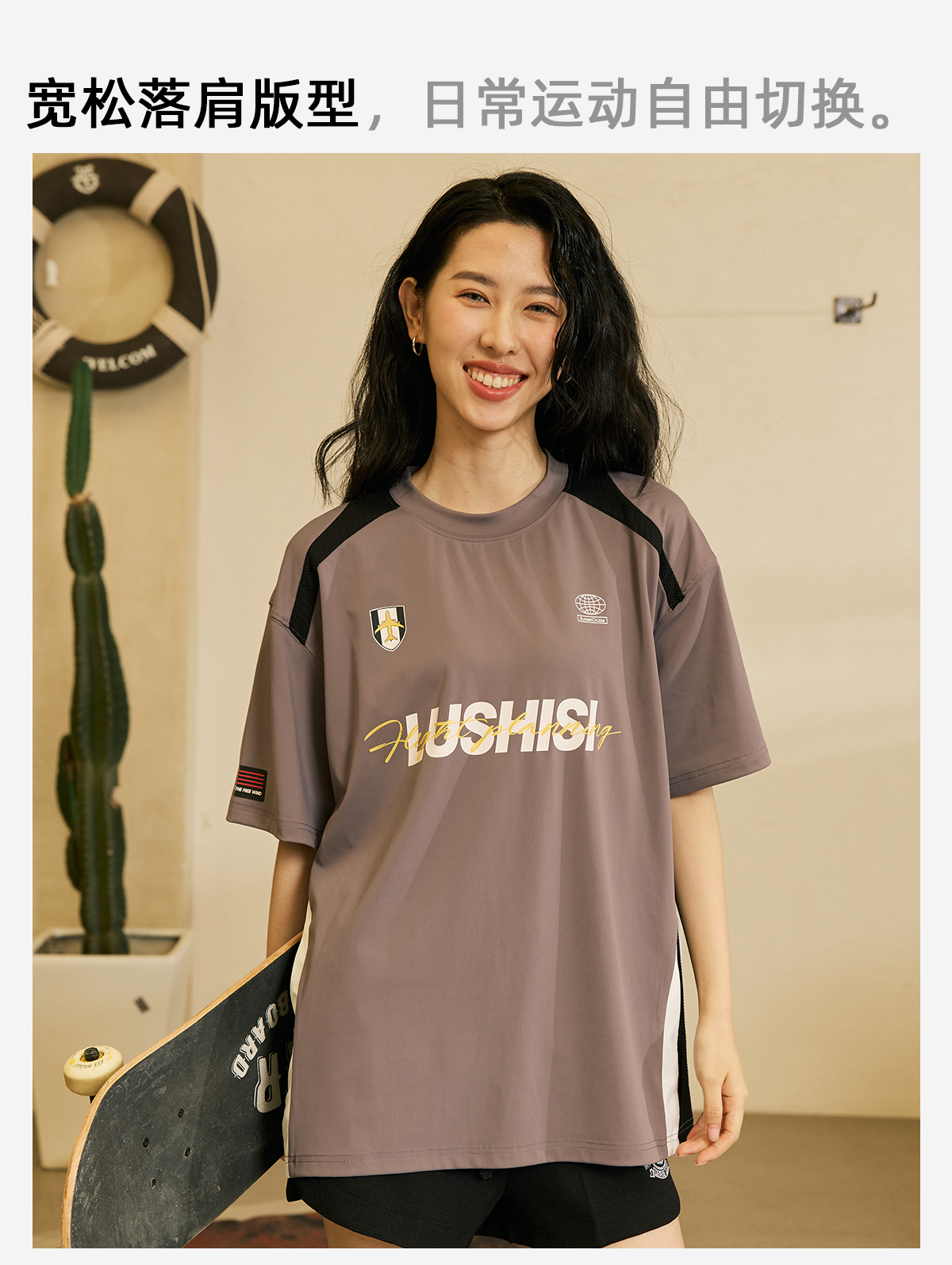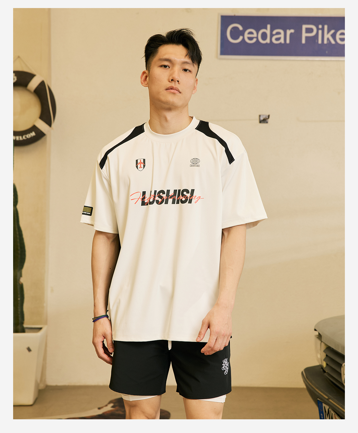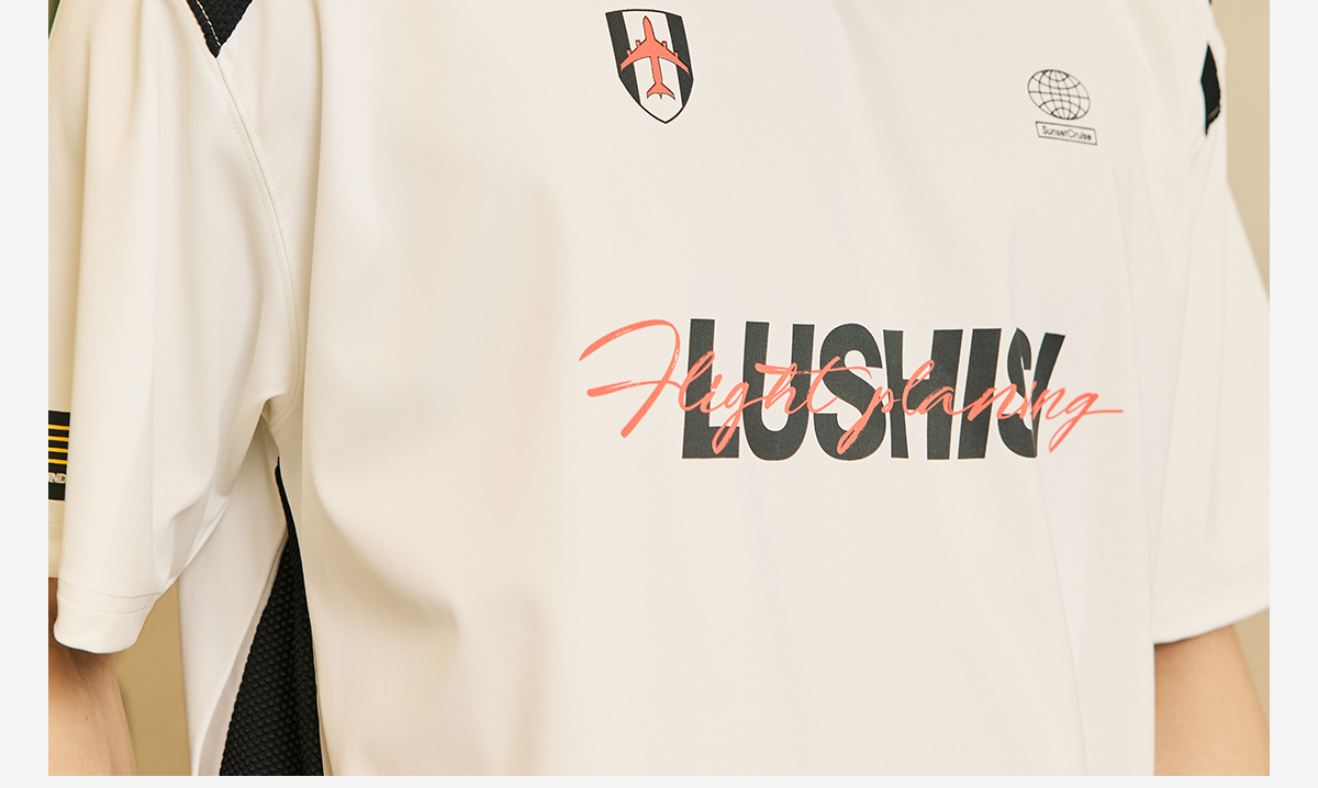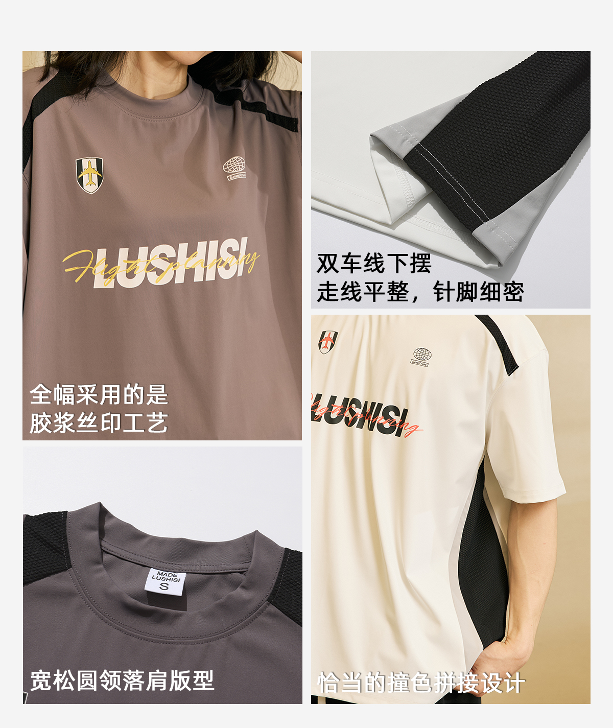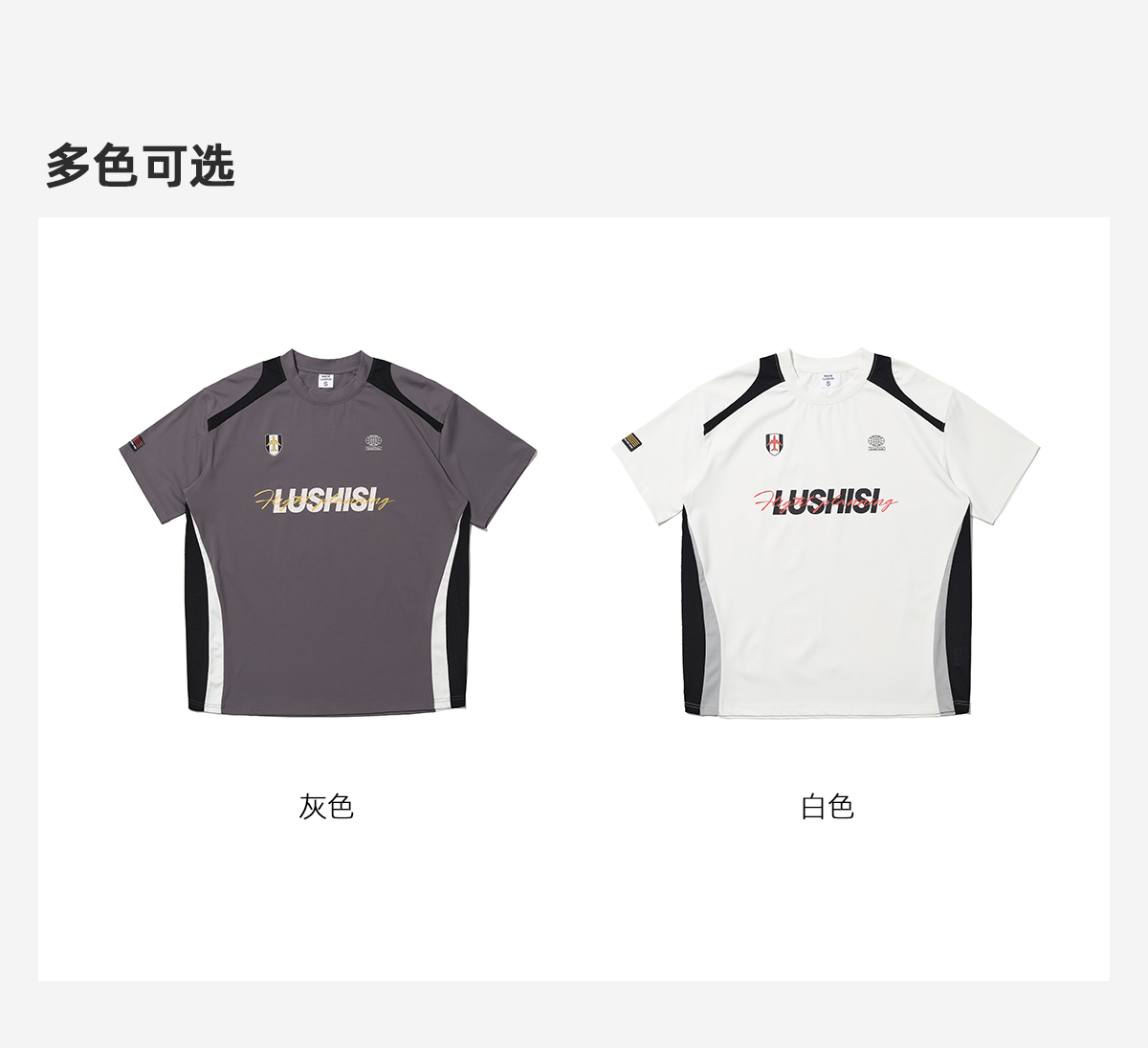 LUSHISI「速干吸湿」双色拼接主题拼色字母印花短袖运动风凉感t恤