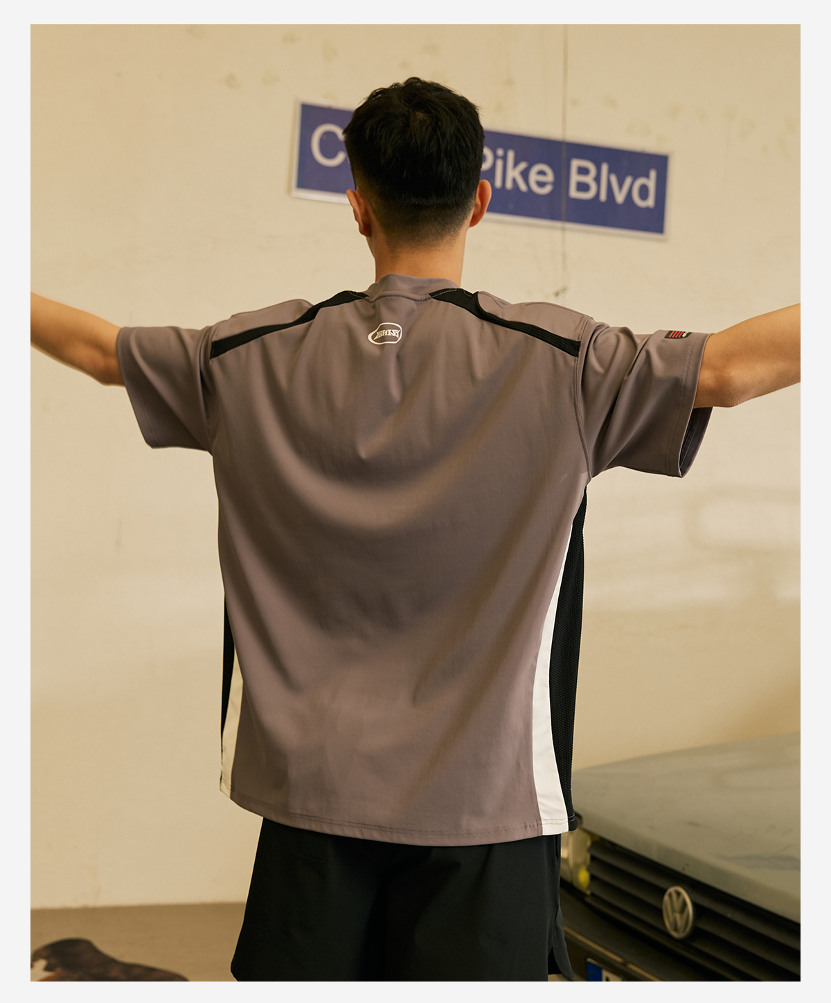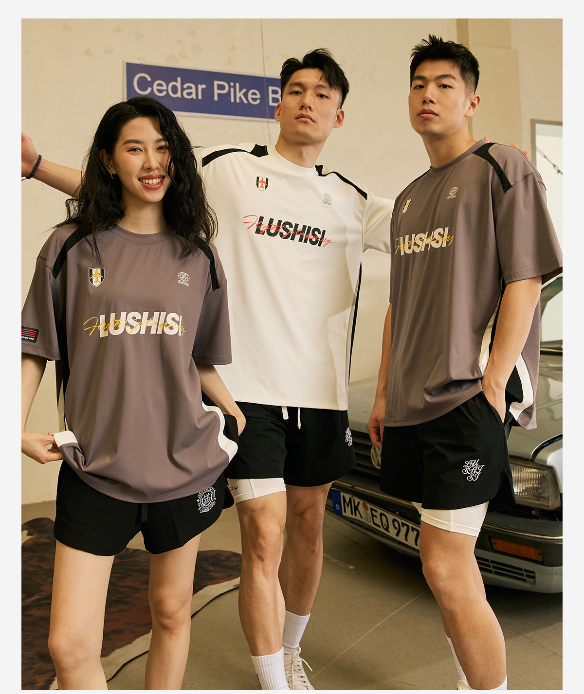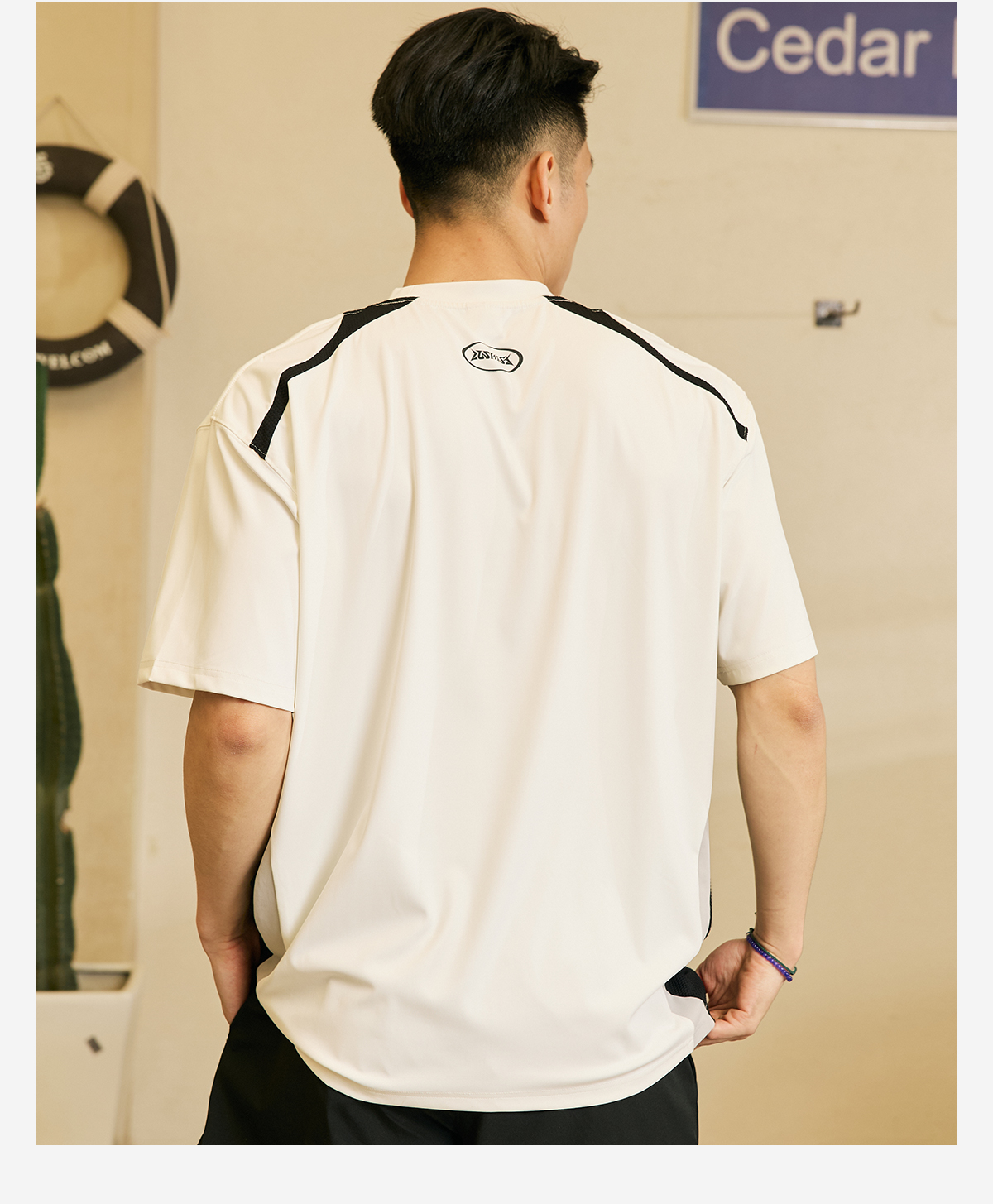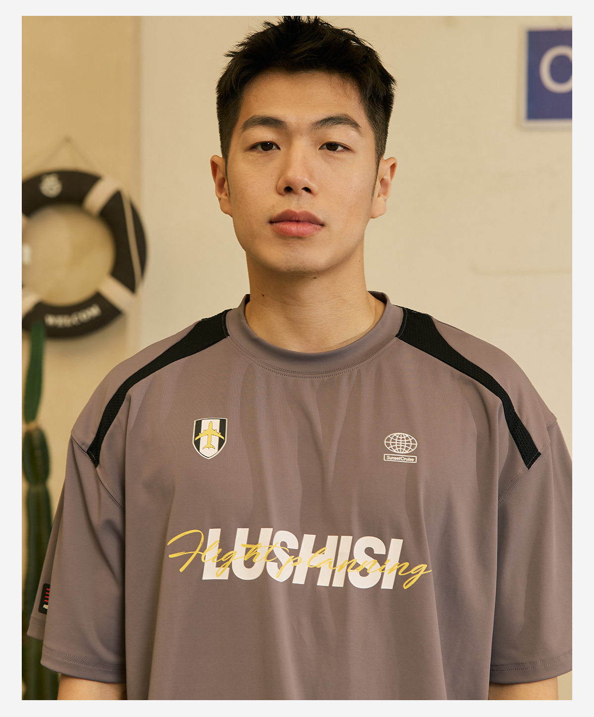 LUSHISI「速干吸湿」双色拼接主题拼色字母印花短袖运动风凉感t恤
