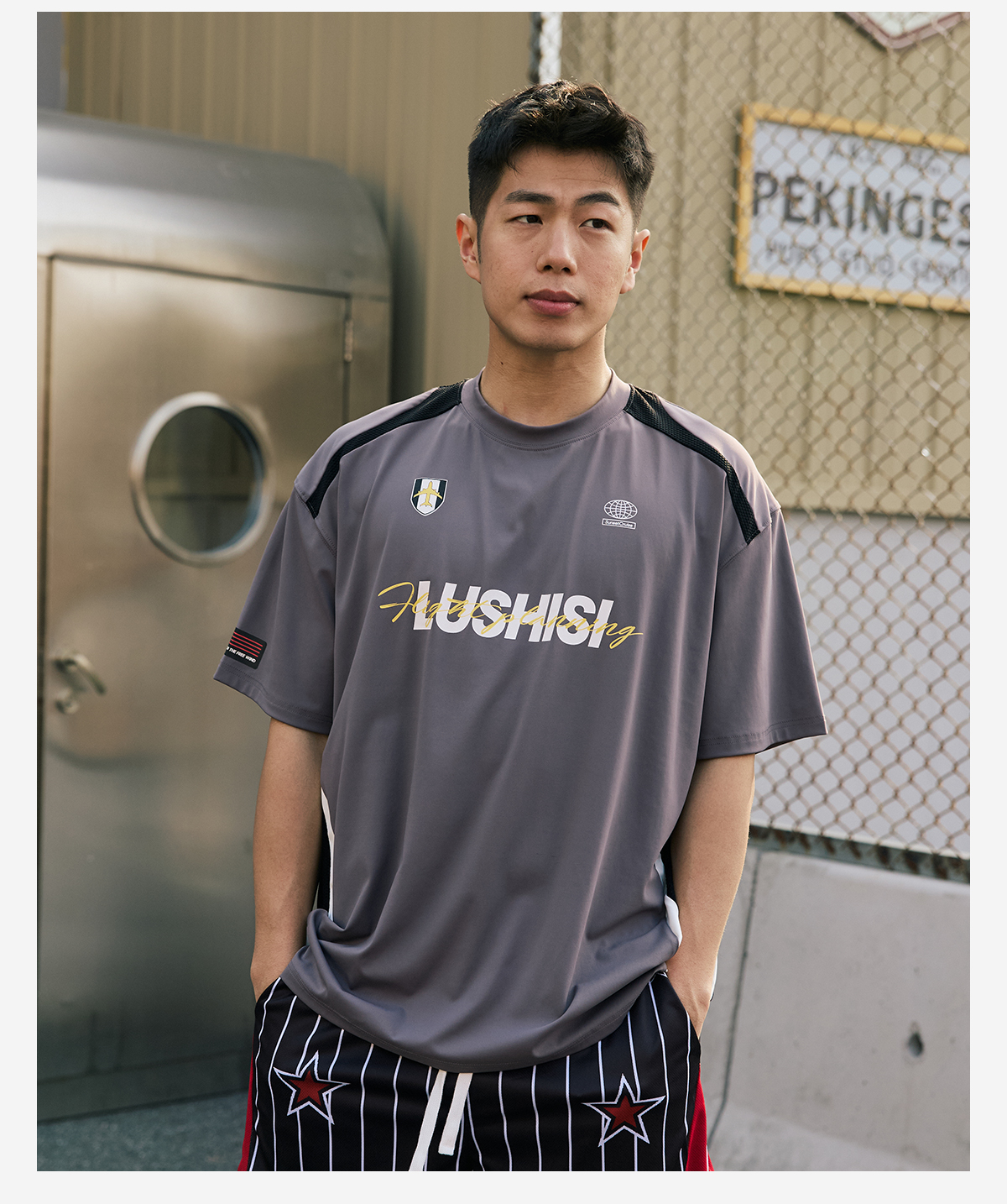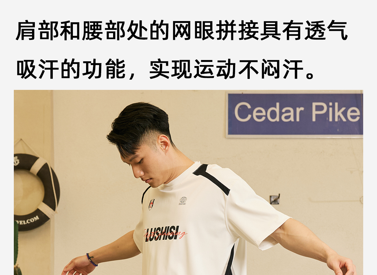 LUSHISI录白主题速干短袖篮球运动休闲美式街头t恤拼接复古足球衣