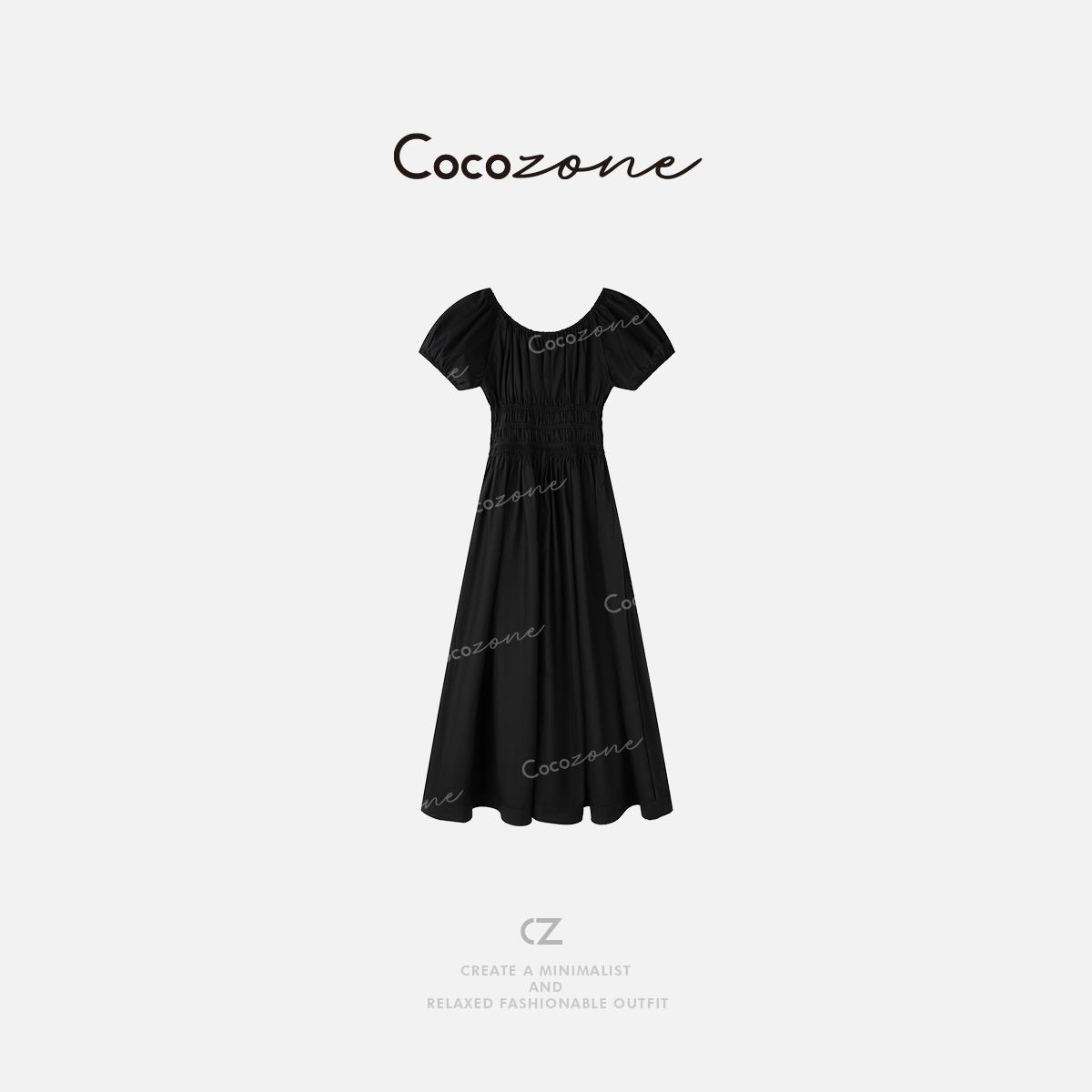 COCO ZONE刘一一 【100棉】优雅时尚抽绳圆领连衣裙 CD2A0345