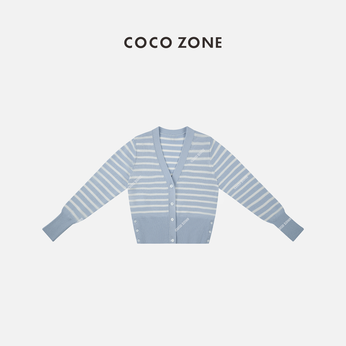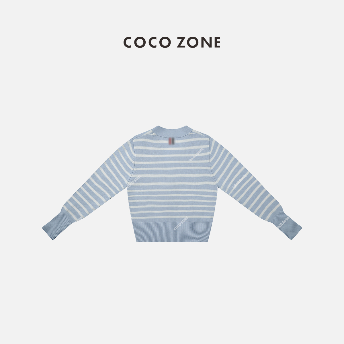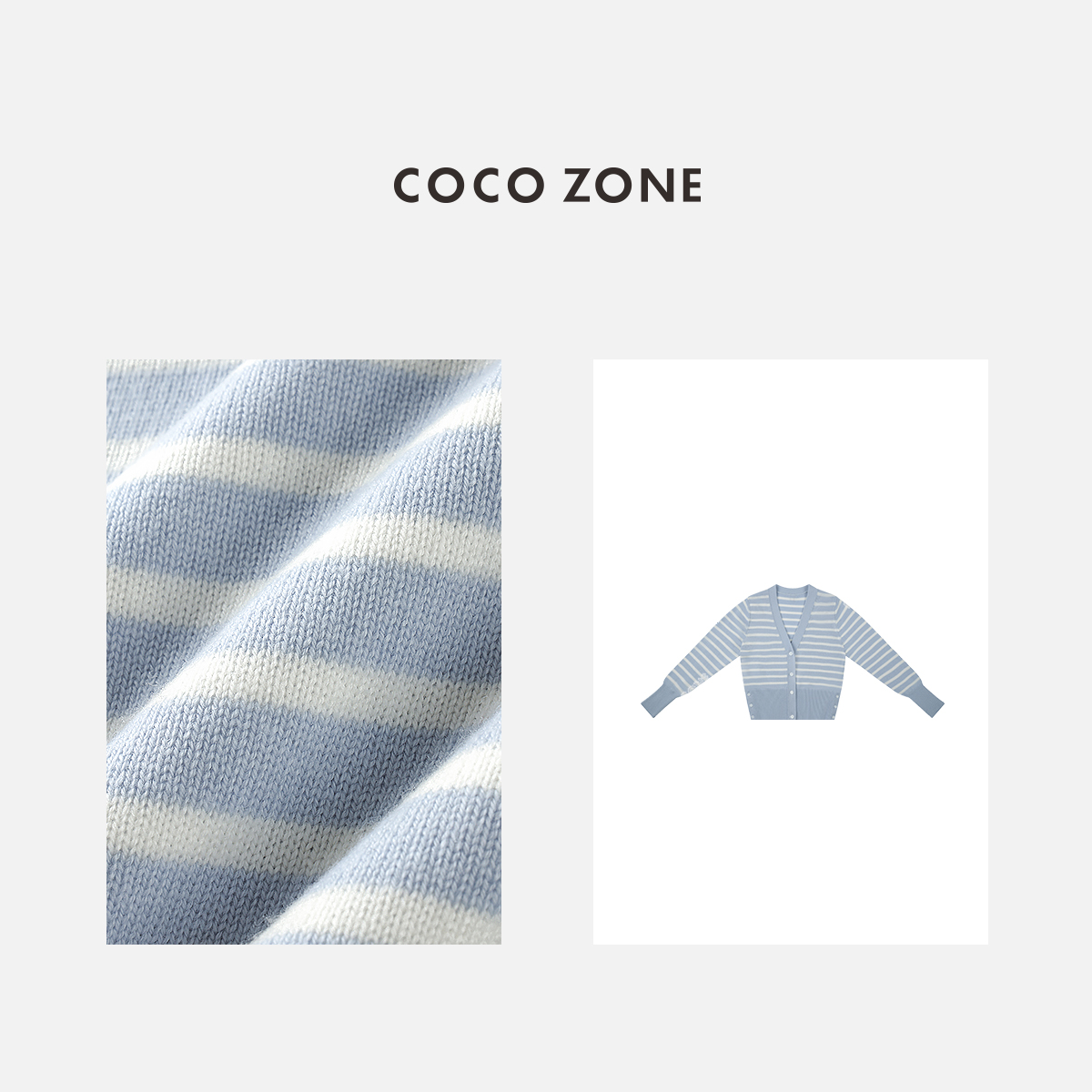 COCO ZONE100羊毛百搭条纹针织衫V领长袖单排扣上衣24C60090