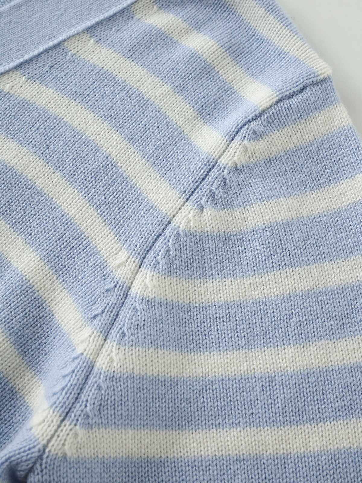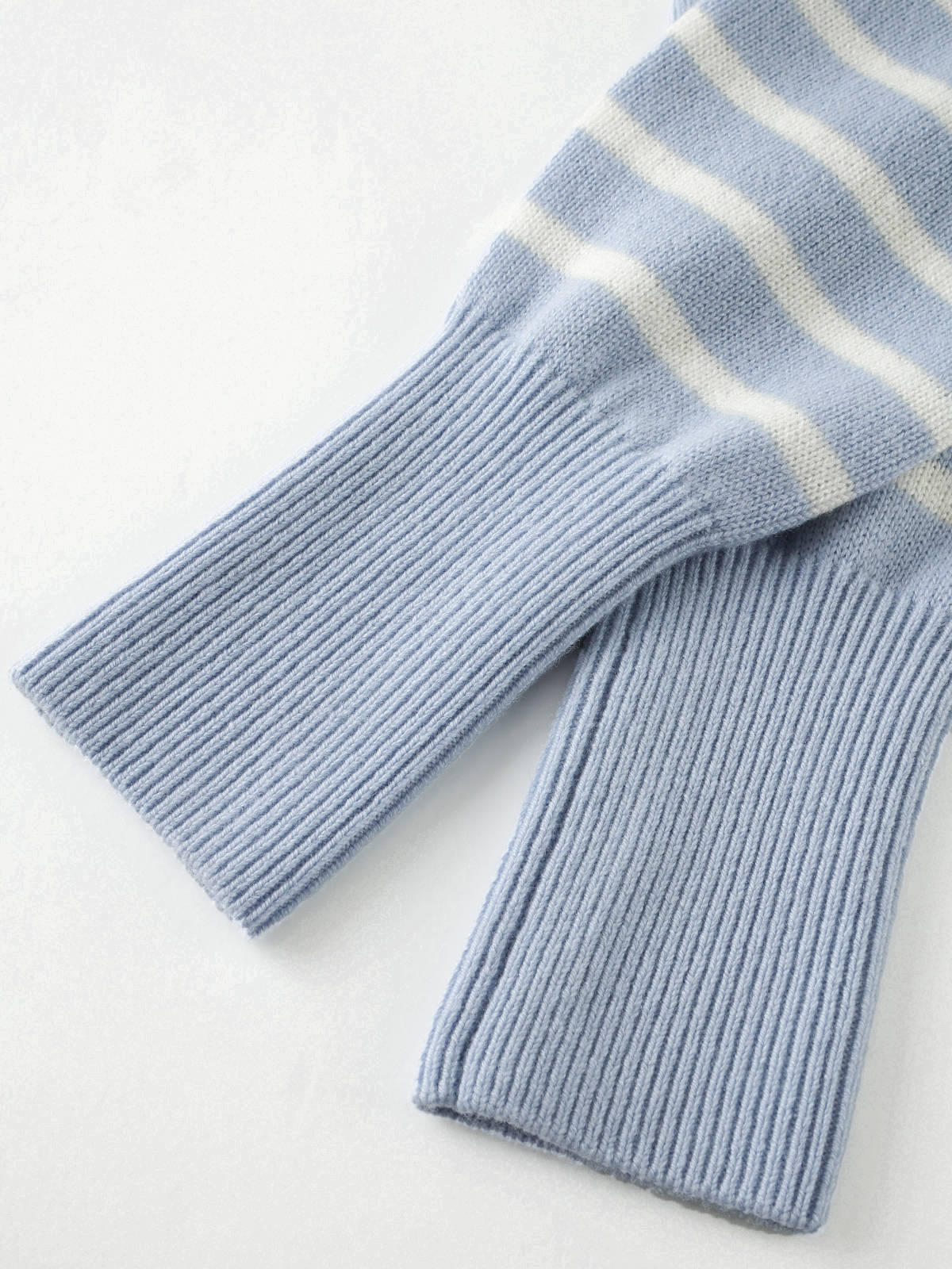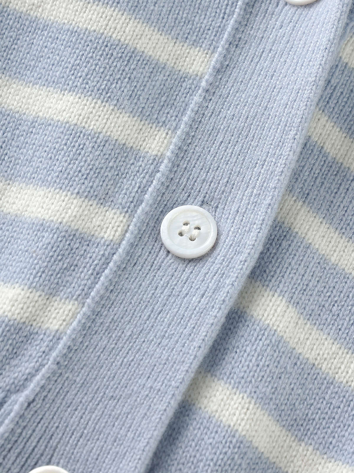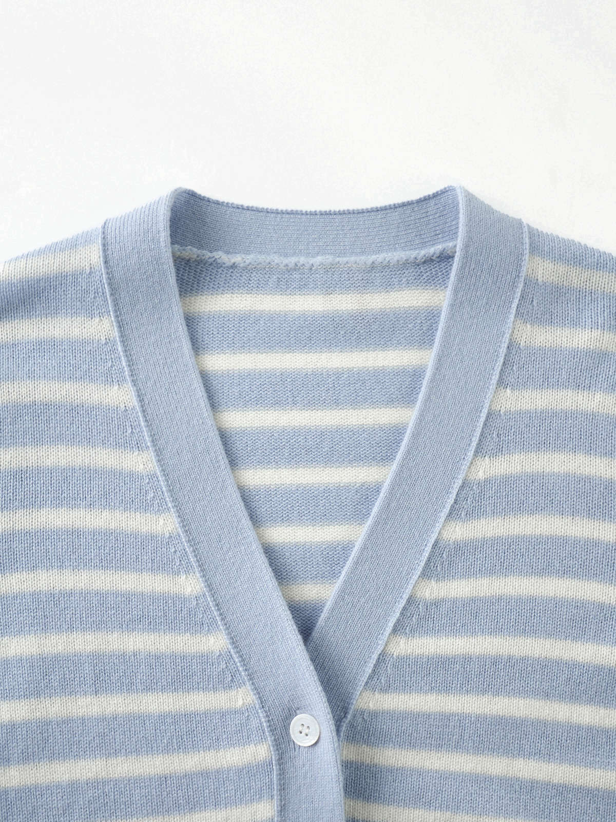 COCO ZONE100羊毛百搭条纹针织衫V领长袖单排扣上衣24C60090