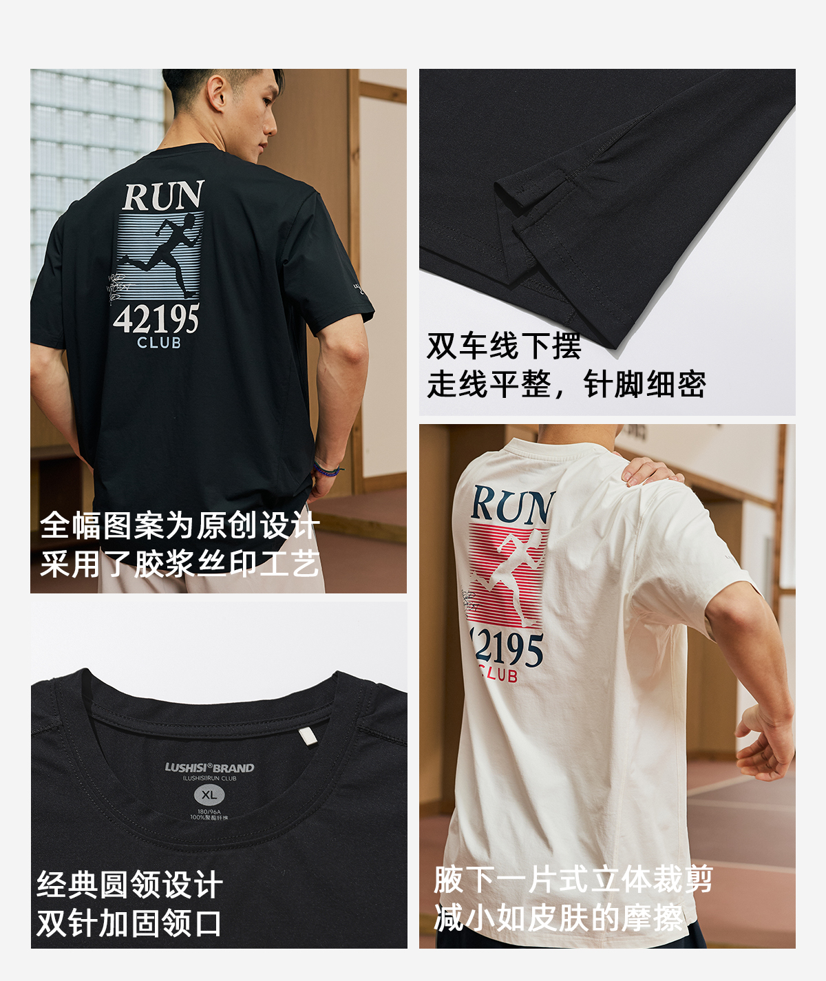 LUSHISI42195马拉松俱乐部主题美式t恤棉感速干透气运动短袖男女