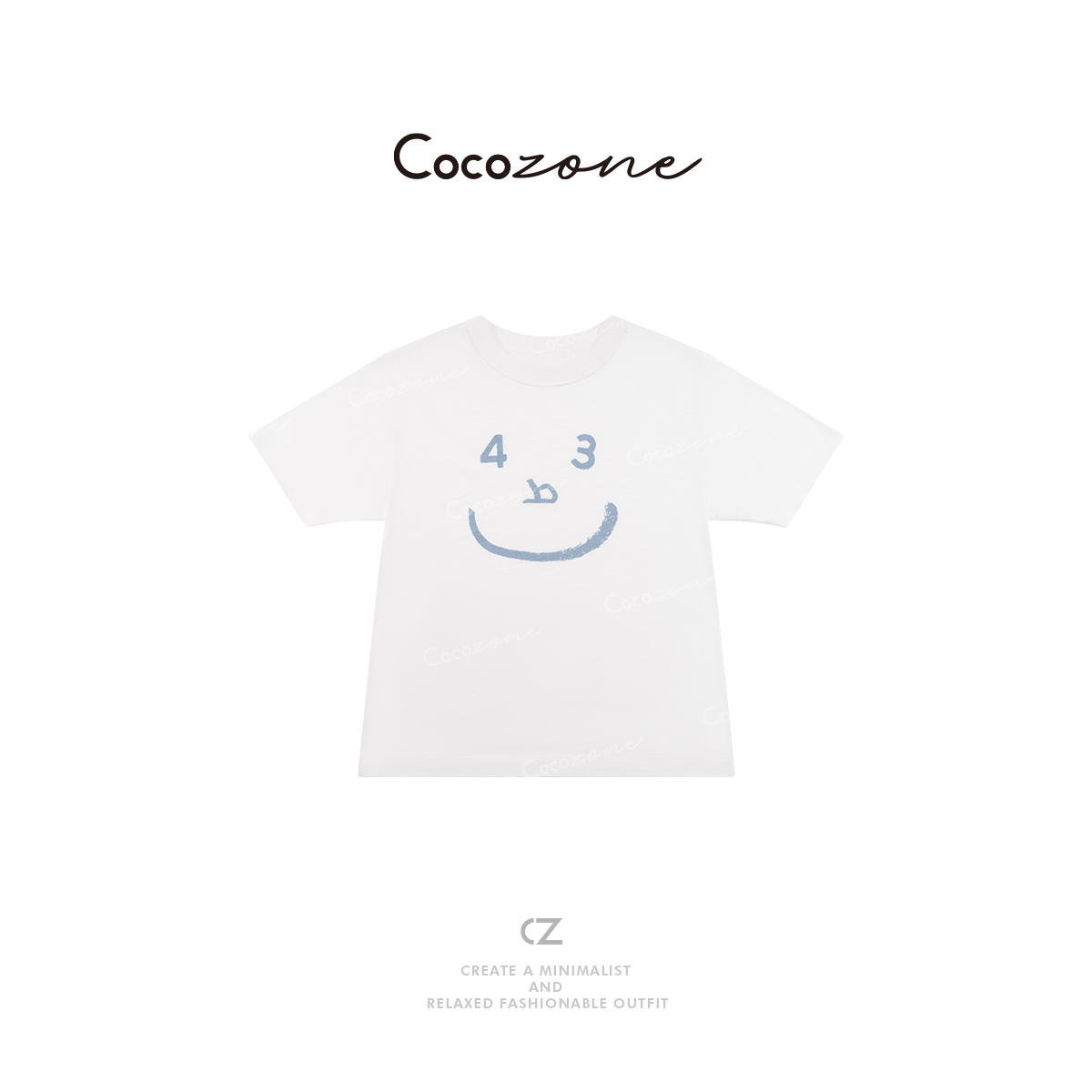 COCO ZONE 刘一一【100棉】笑脸印花宽松圆领短袖T恤CD2A0647