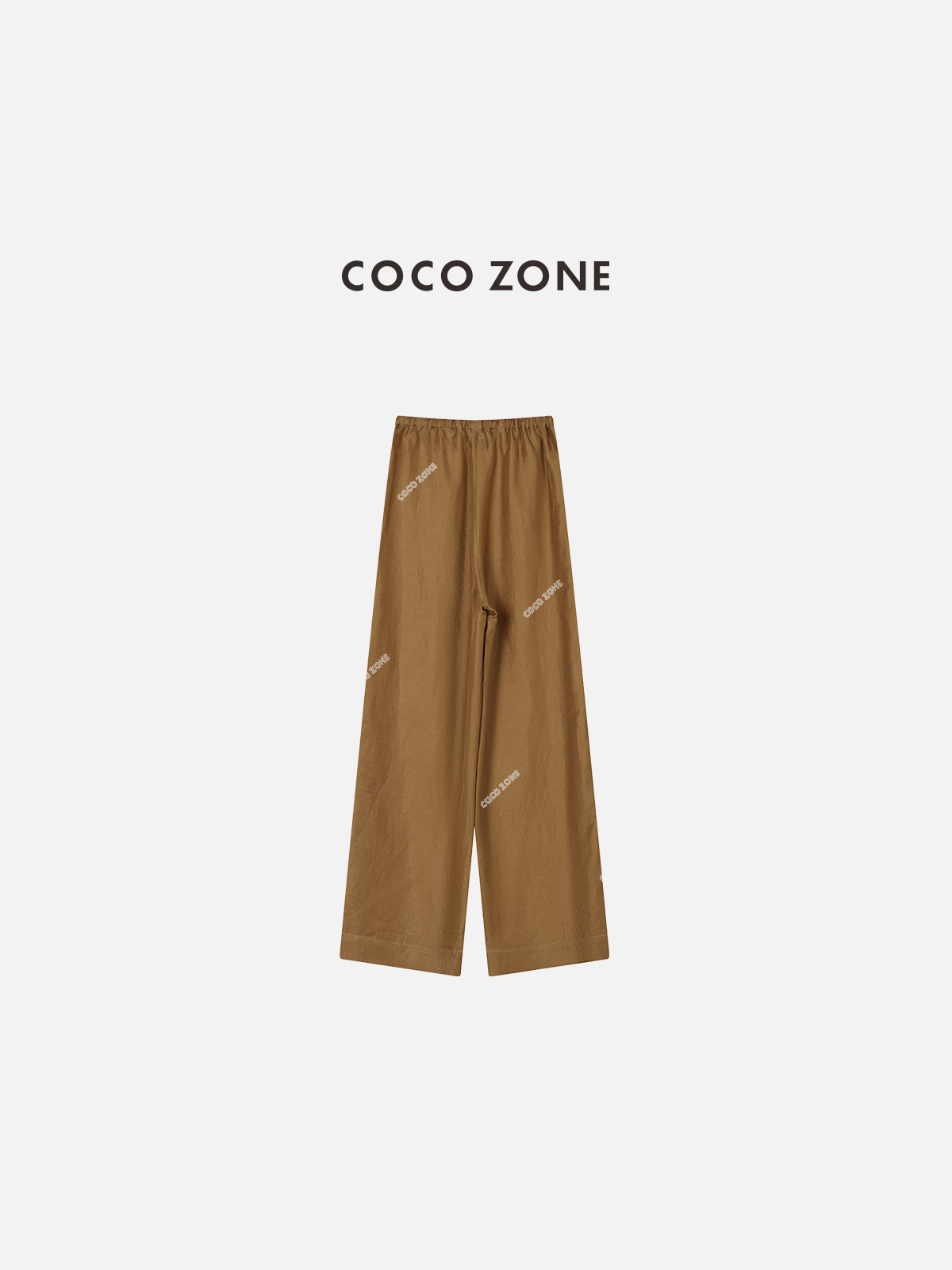 COCO ZONE 夏日纯色通勤风休闲阔腿长裤松紧腰系绳 23C18941