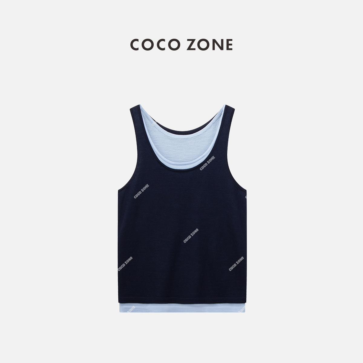 COCO ZONE ”卢比“100绵羊毛拼色无袖毛针织衫百搭休闲上衣CC2B0531