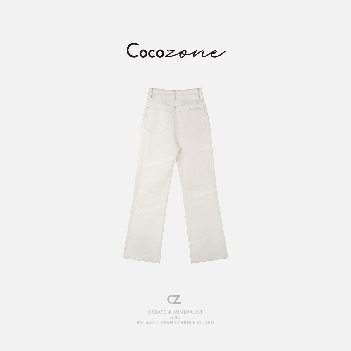 COCO ZONE 刘一一直筒复古美式简约撞色纽扣女式牛仔裤 CD1A0551