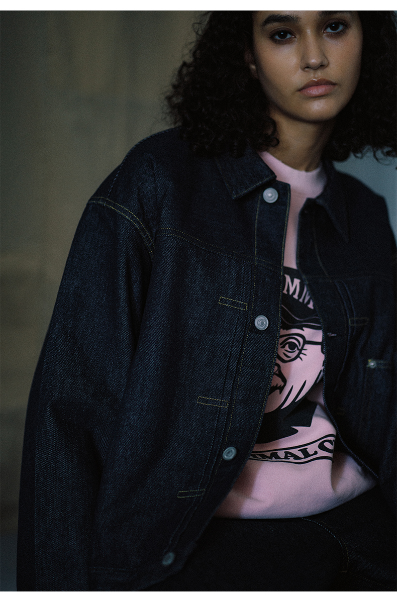 a minimal club复古重磅【原牛】撞色字母印花牛仔夹克街头AM59DC01