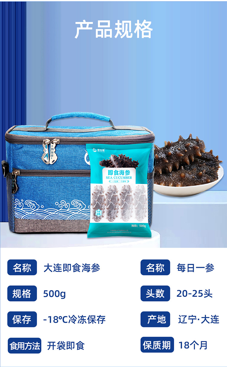 星龙港大连即食海参 每日一参500g(20-25头)(注:冷冻生鲜类商品不退,质量问题只换)