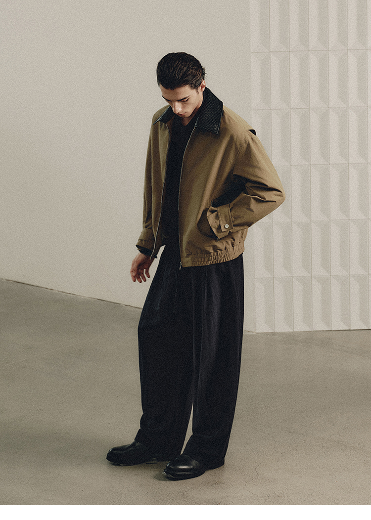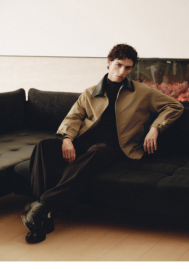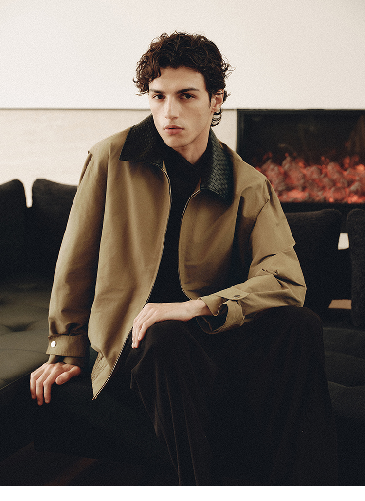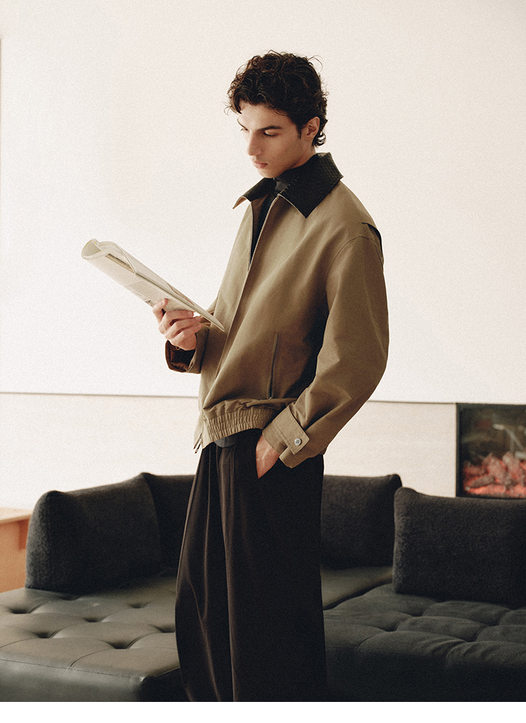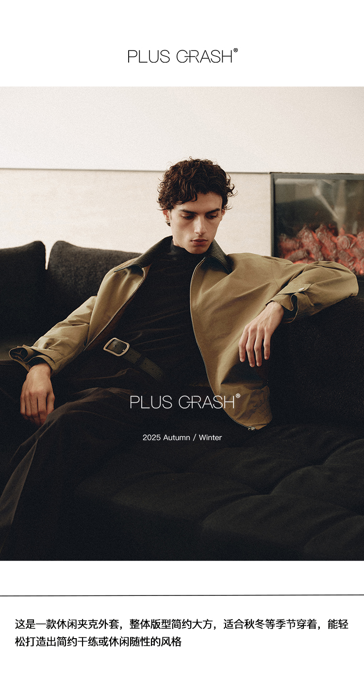PLUS CRASH2025秋冬新款巴恩风哈灵顿翻领pu拼接男女百搭夹克外套