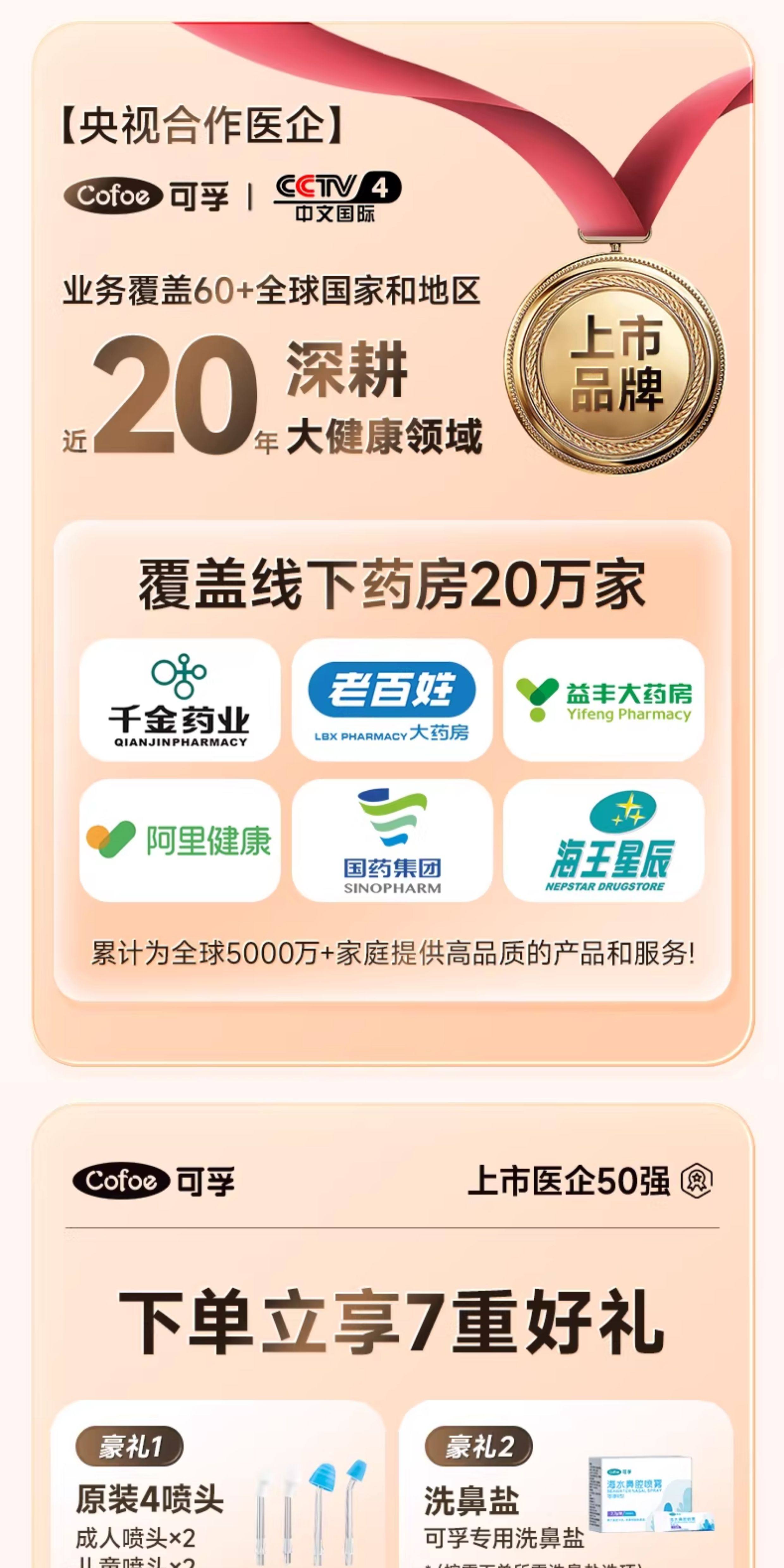 可孚电动洗鼻器家用成人儿童鼻腔喷雾过敏性鼻炎冲鼻器洗鼻子医用